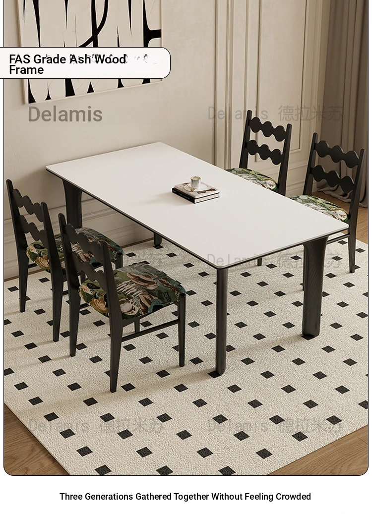 59.06in*31.50in [Classy Delifeng Rock Plate] + Solid Wood Dining Chair * 6