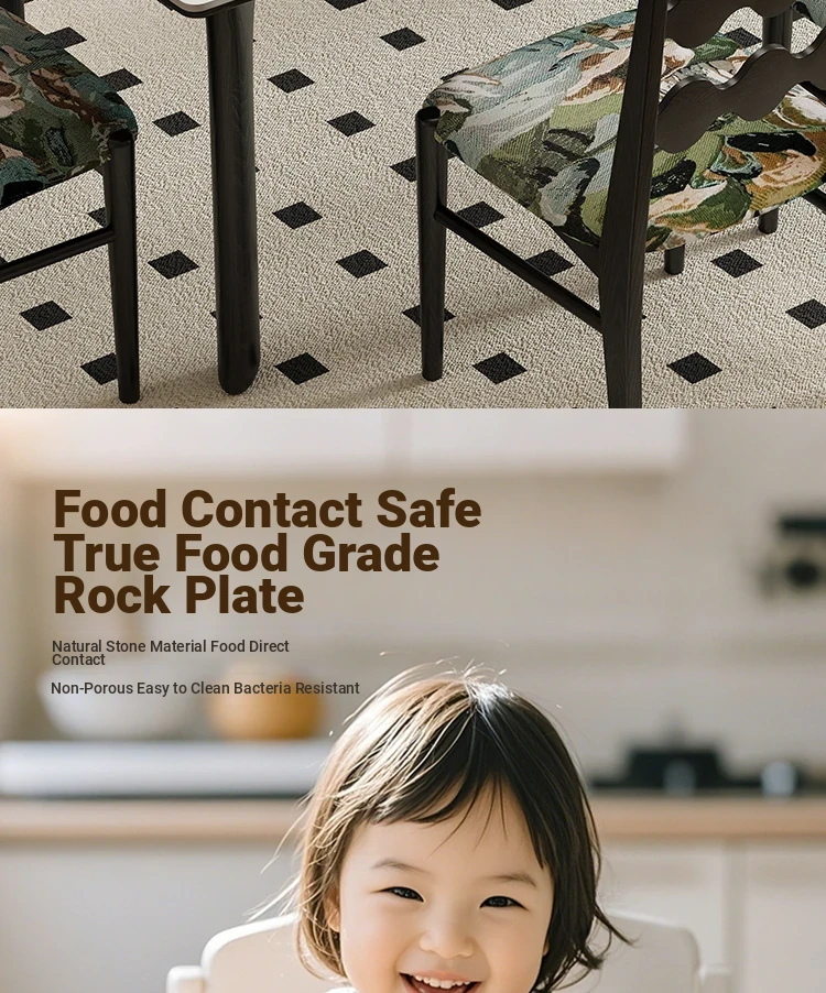 59.06in*31.50in [Classy Delifeng Rock Plate] + Solid Wood Dining Chair * 4