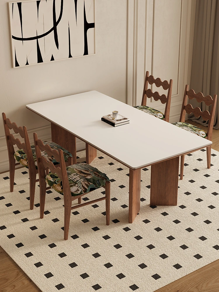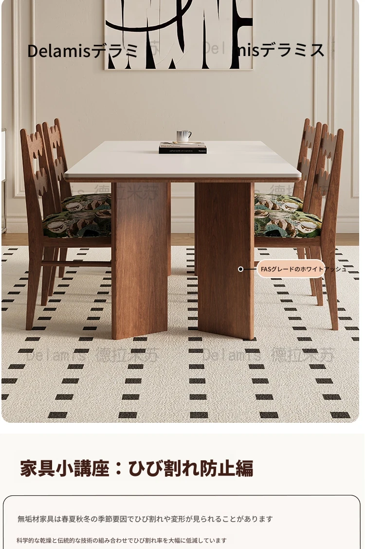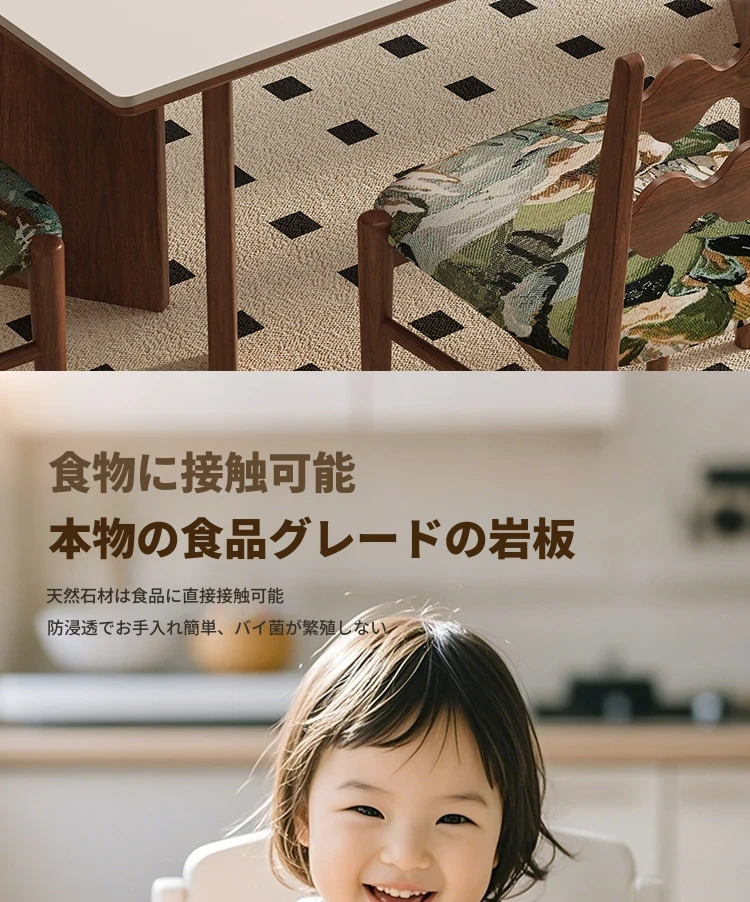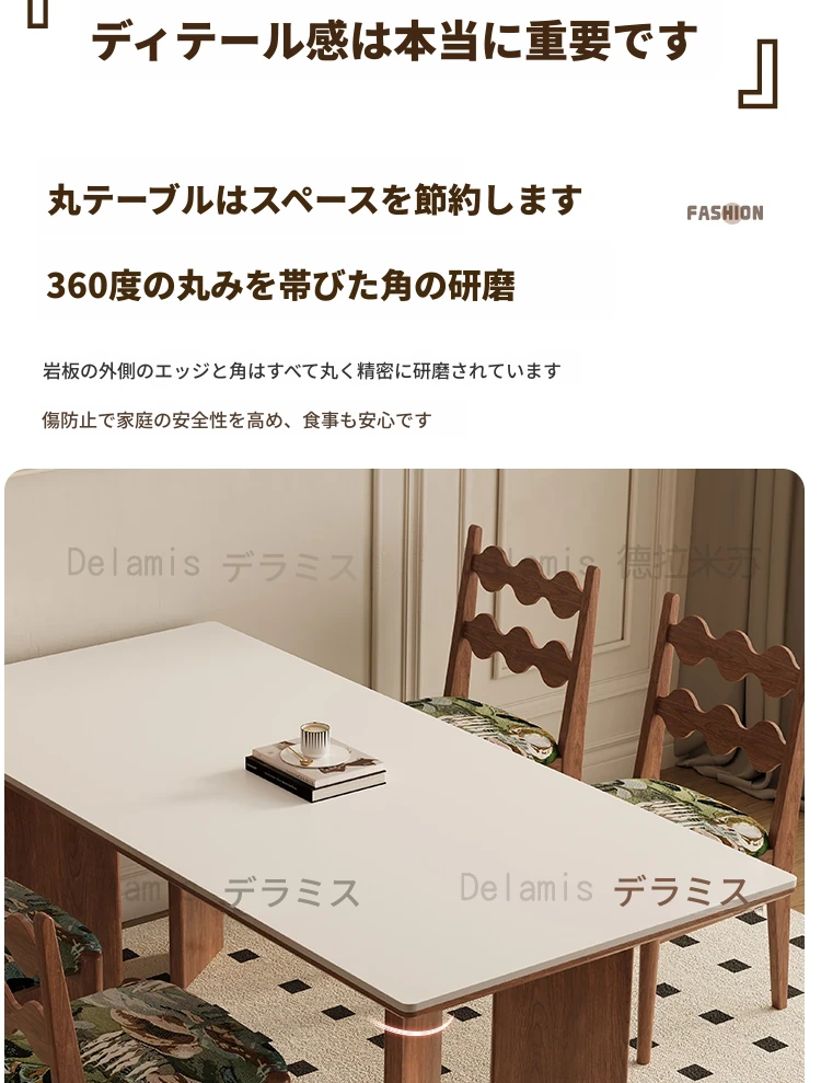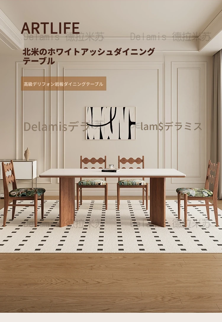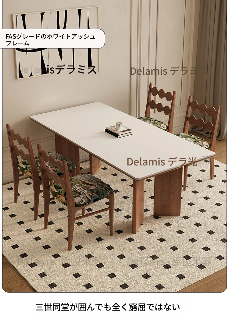デリフォン無垢材ロックボードダイニングテーブル 小型家庭用 長方形 フレンチクリーム風 ヴィンテージスタイル 食卓 どんなインテリアにもマッチ!おしゃれで機能的な空間を演出します。
