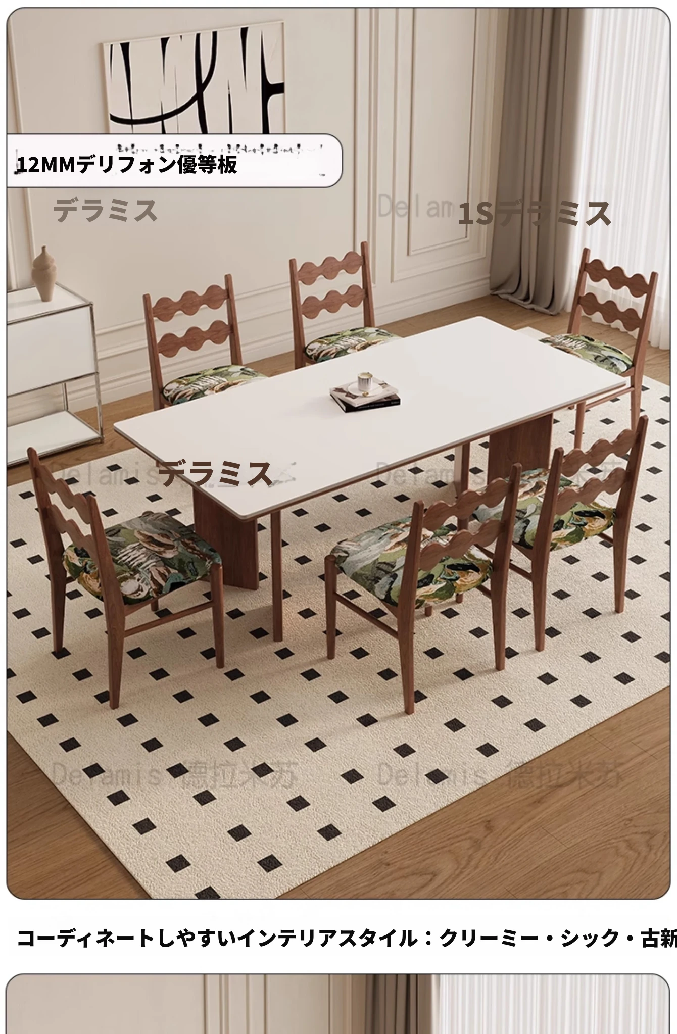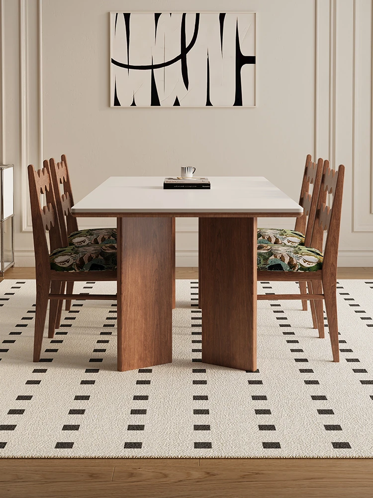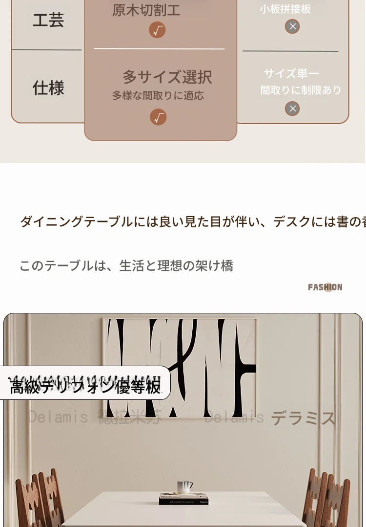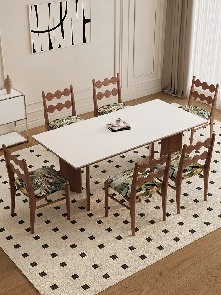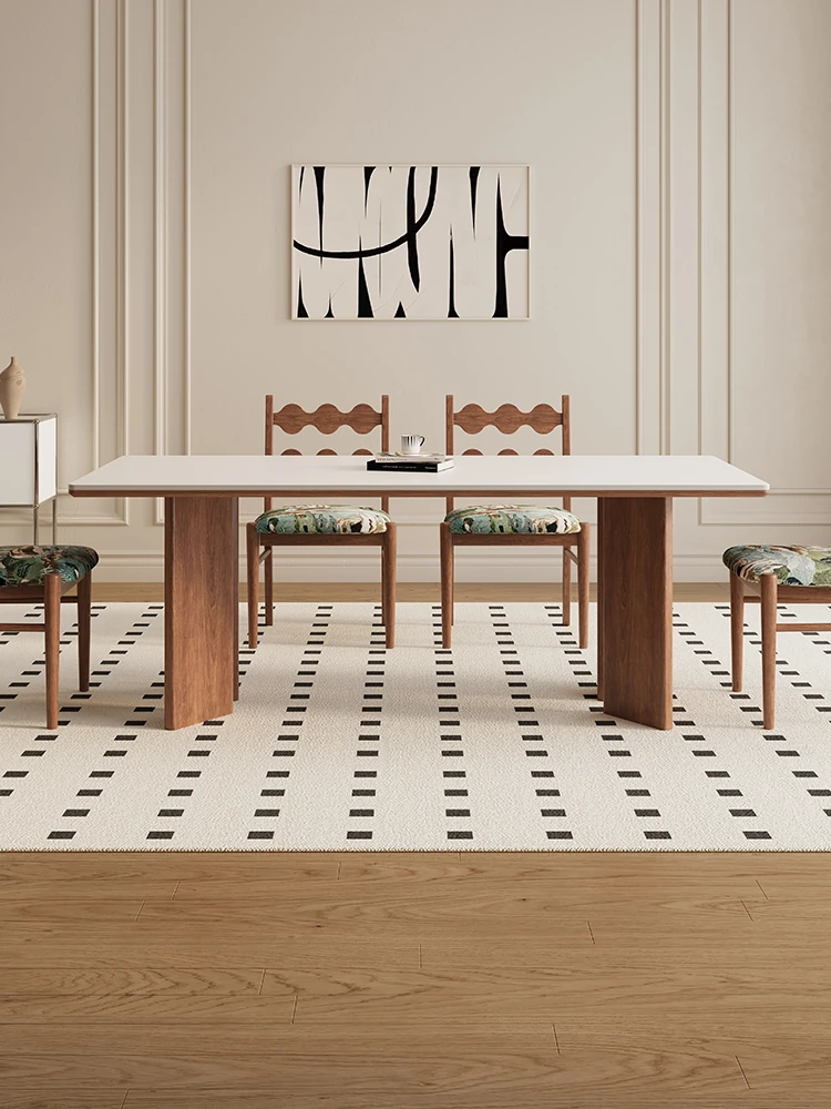 デリフォン無垢材ロックボードダイニングテーブル 小型家庭用 長方形 フレンチクリーム風 ヴィンテージスタイル 食卓 どんなインテリアにもマッチ!おしゃれで機能的な空間を演出します。