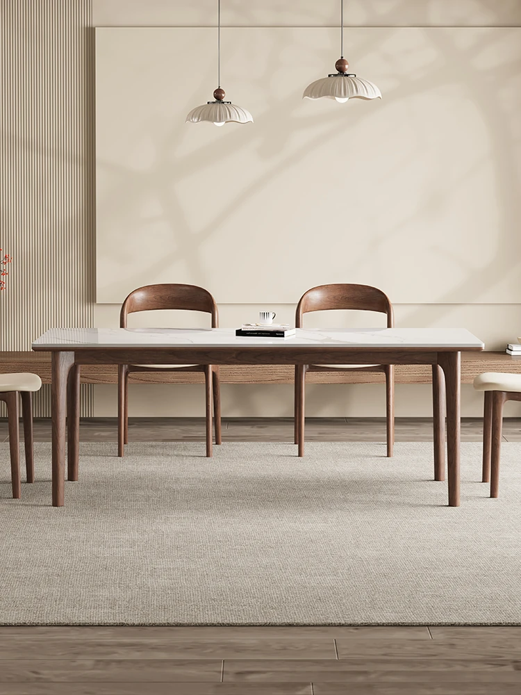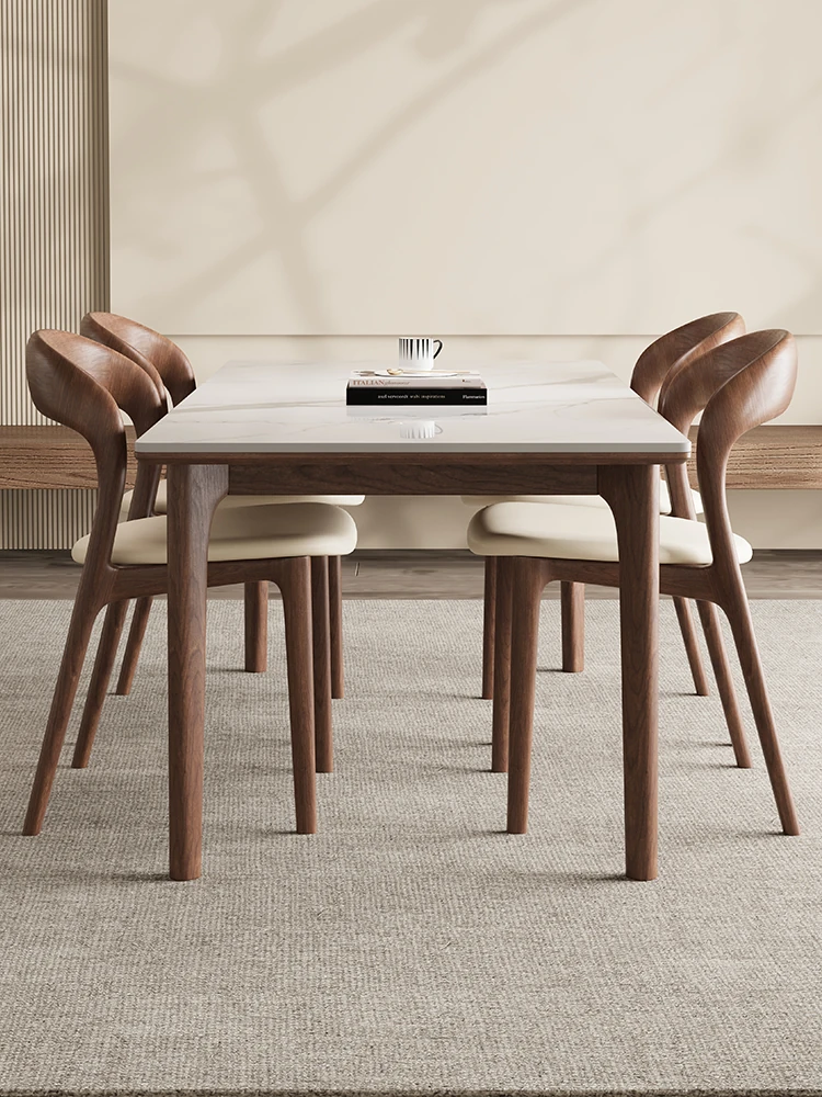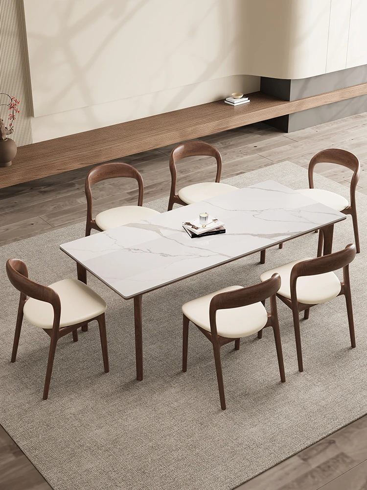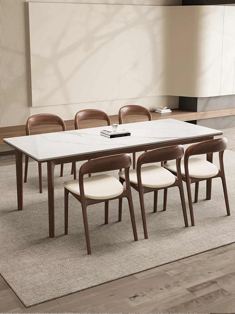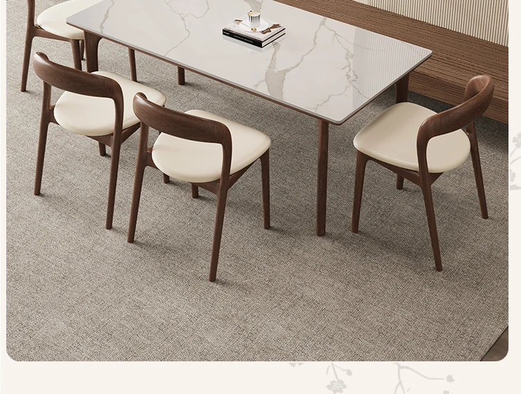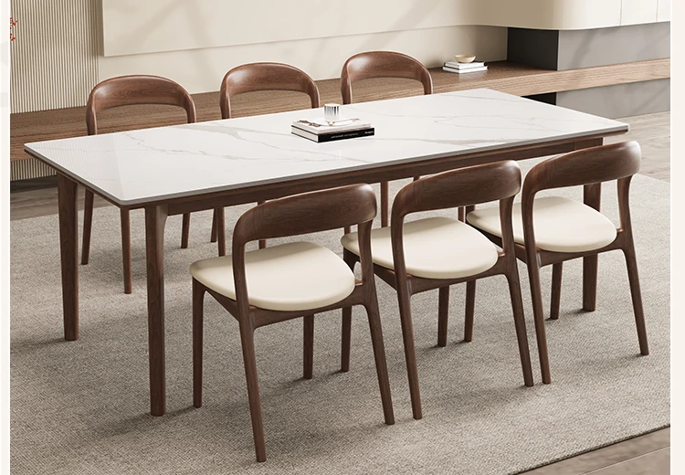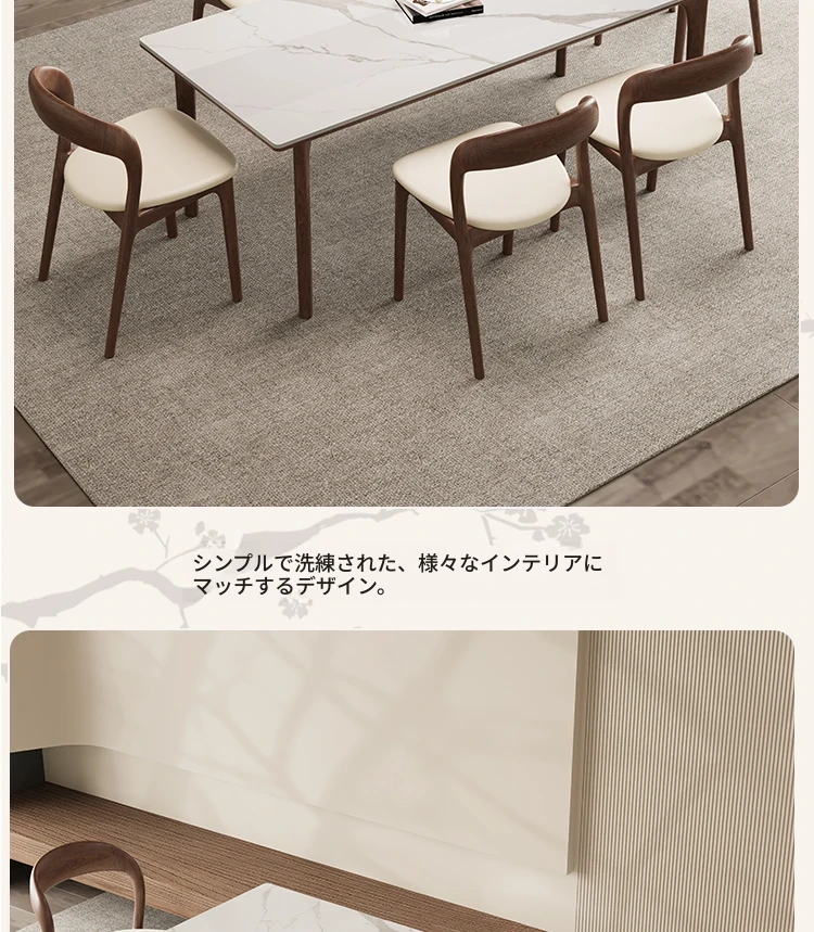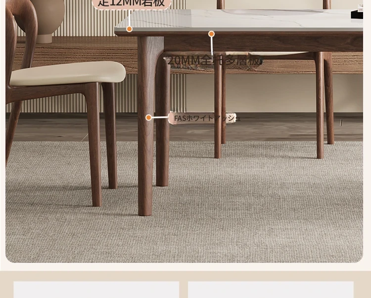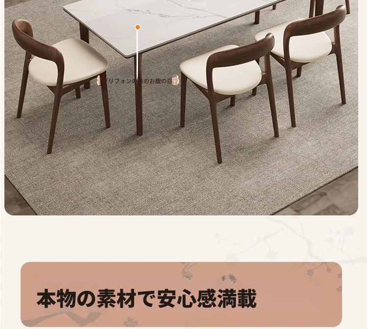 1.5*0.8メートル【高級デリフォン岩板】+無垢材ダイニングチェア*6