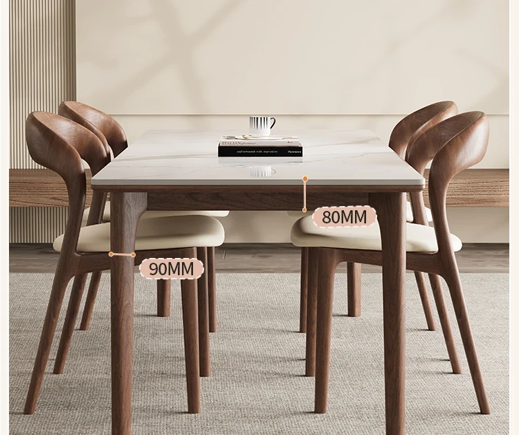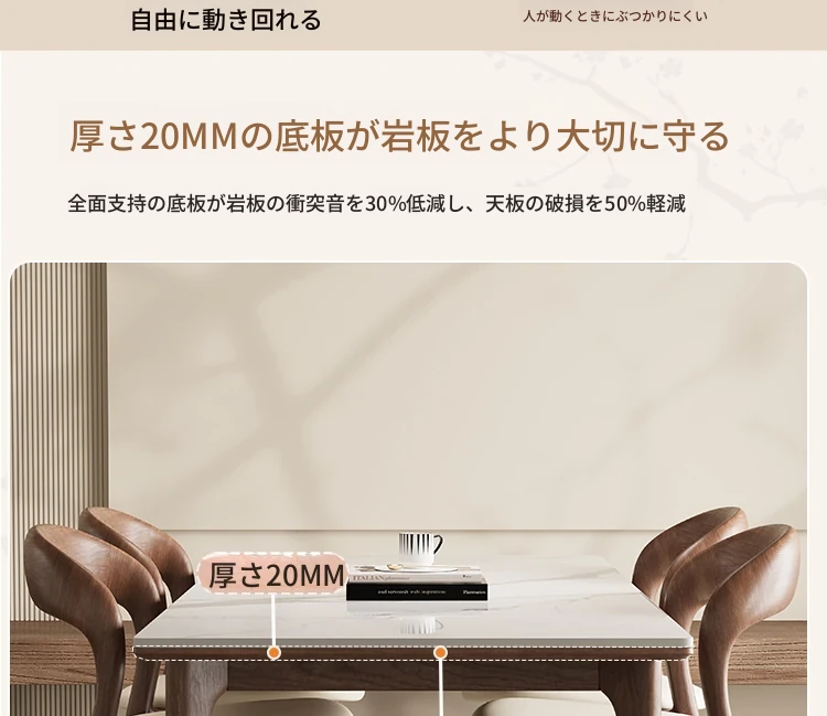 1.8*0.8メートル【高級デリフォン岩板】+無垢材ダイニングチェア*6