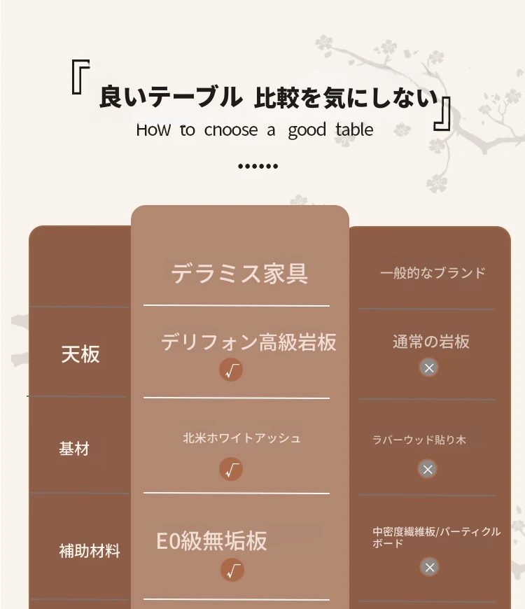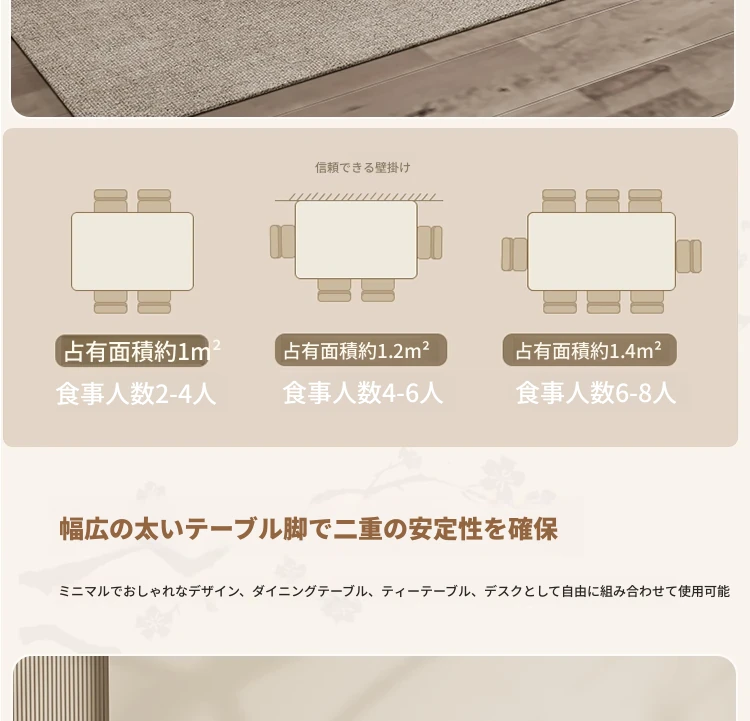 デリフォン無垢材ロックプレートダイニングテーブル - コンパクトな家庭向け、クリーム色のアンティーク風で高級感溢れる長方形テーブル。おしゃれな空間を演出し、食卓を特別なひとときに変えます!