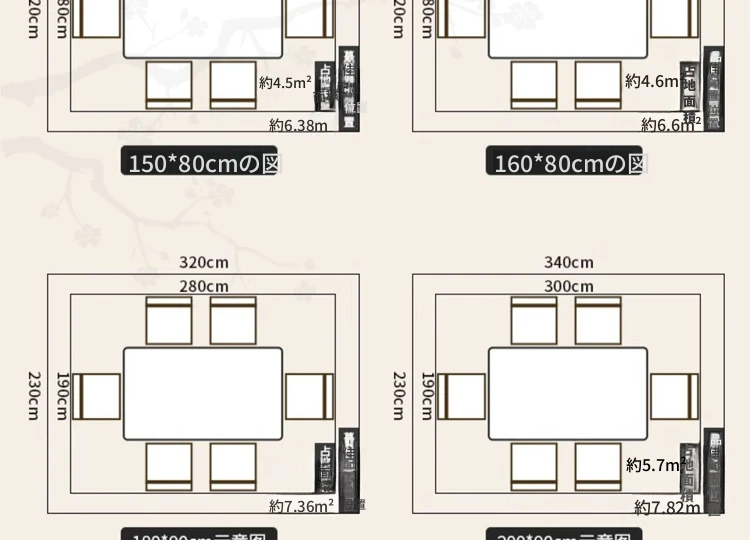 1.5*0.8メートル【高級デリフォン岩板】+無垢材ダイニングチェア*4