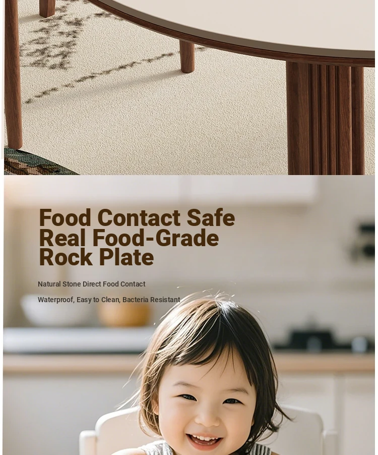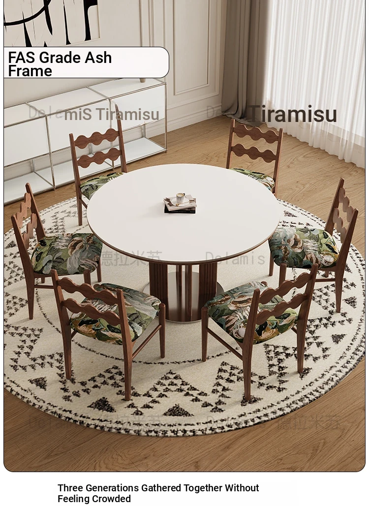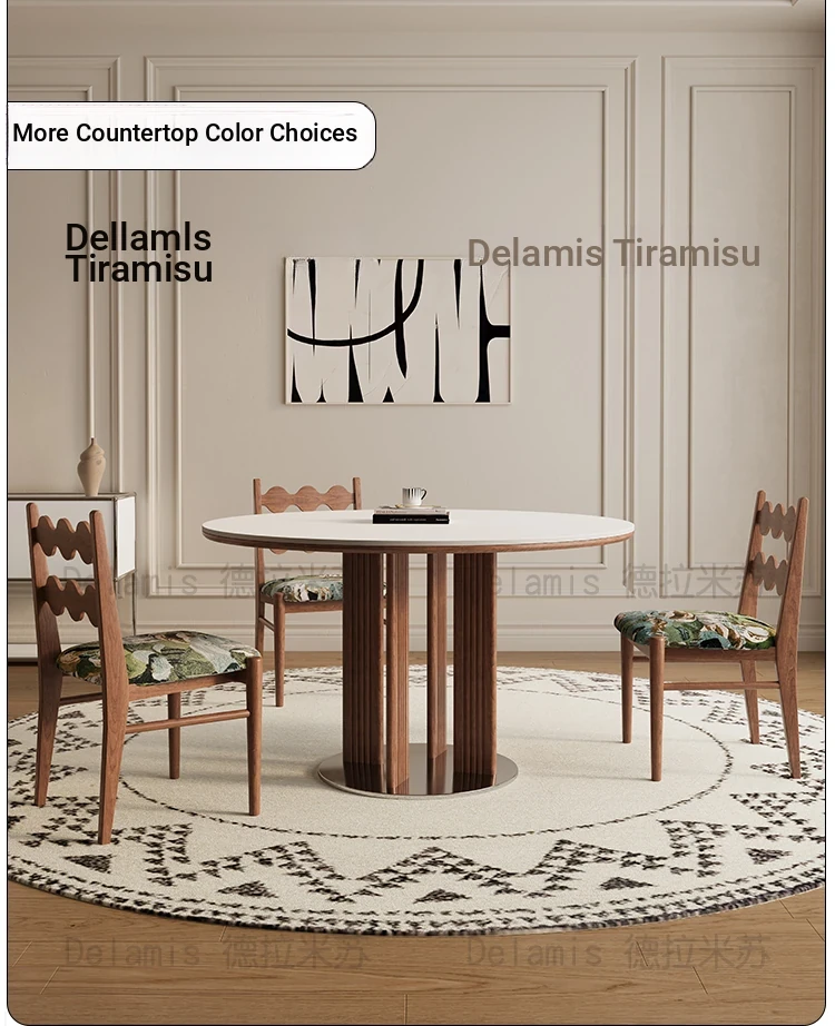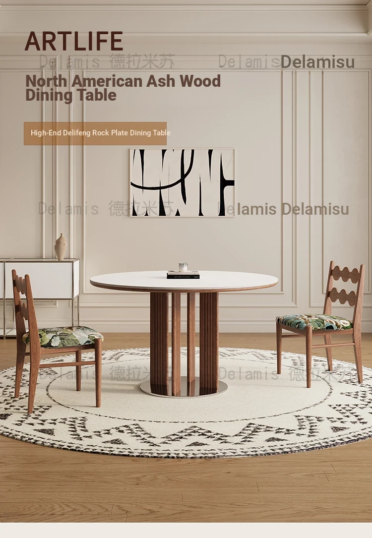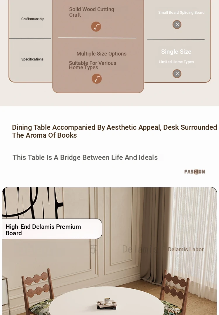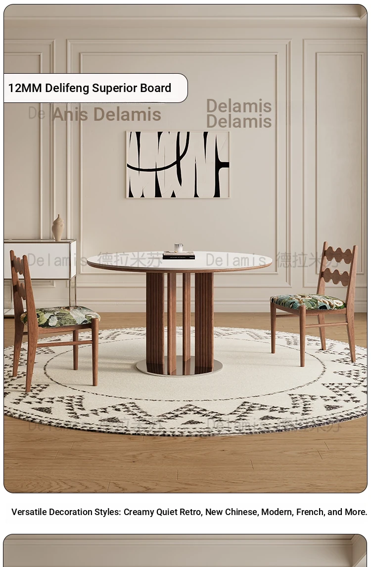 Delifeng Solid Wood Rock Plate Dining Table for Small Spaces - Bauhaus French Cream Vintage Style, Perfect for Home Dining and Entertaining