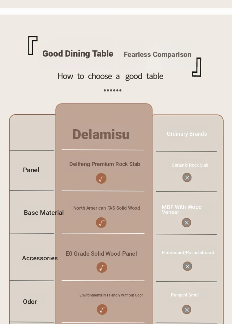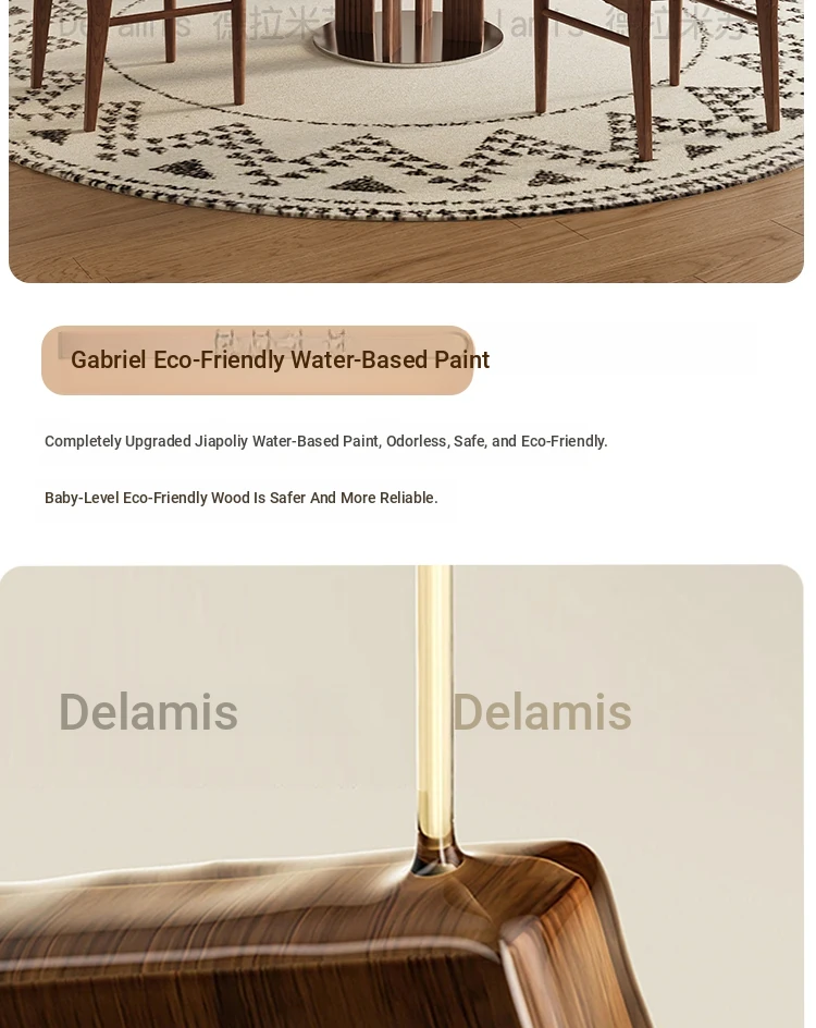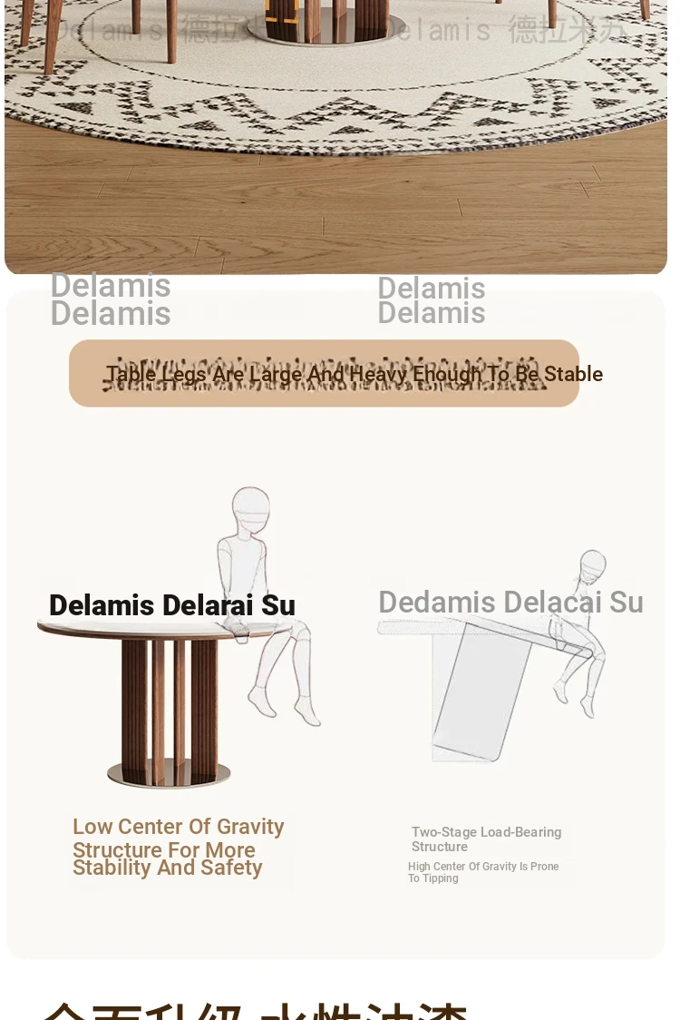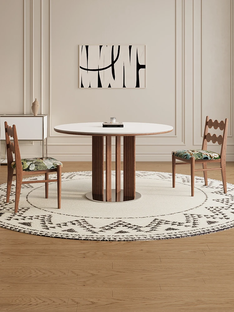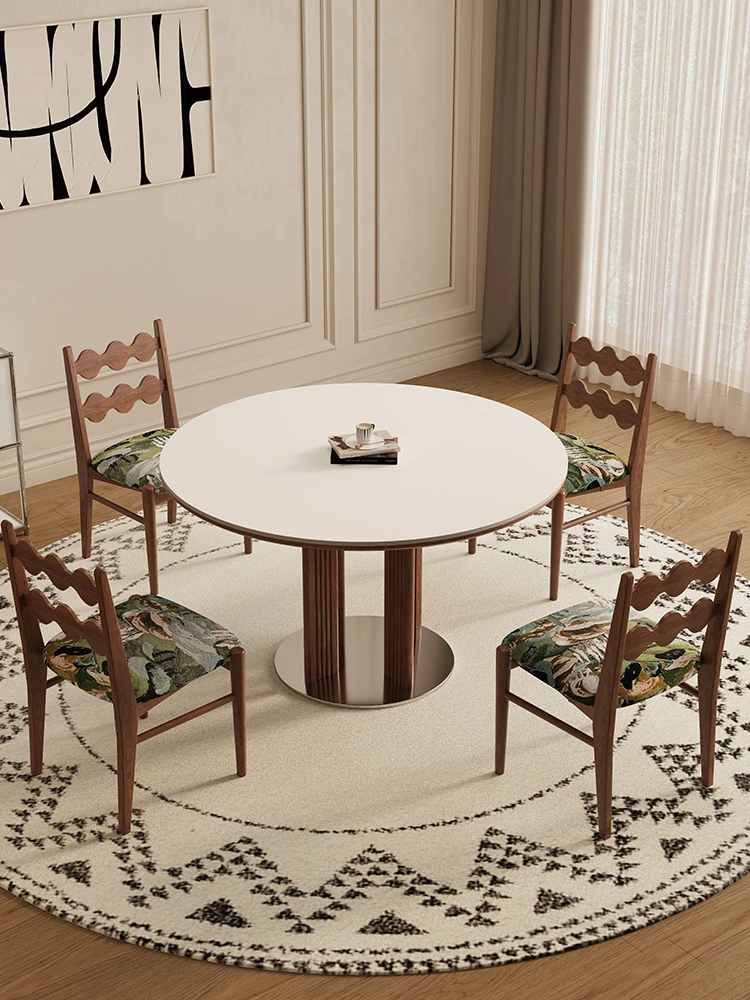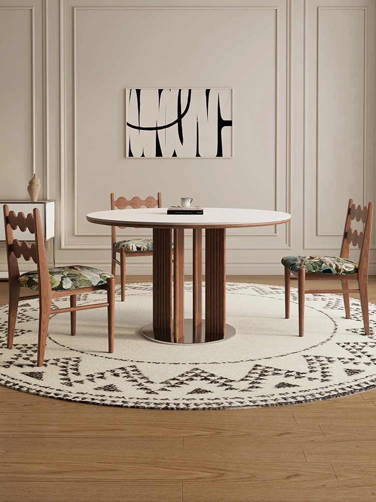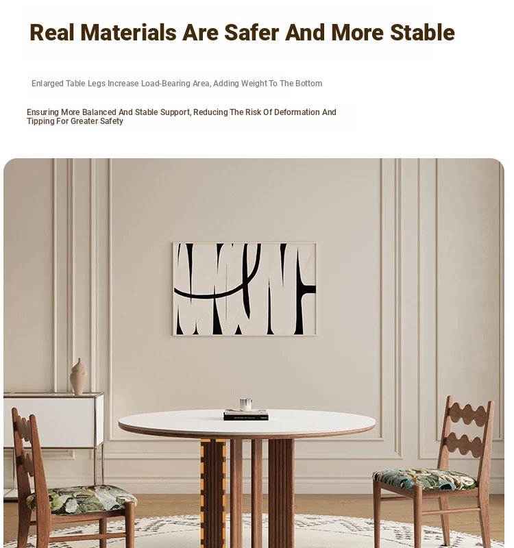 Delifeng Solid Wood Rock Plate Dining Table for Small Spaces - Bauhaus French Cream Vintage Style, Perfect for Home Dining and Entertaining
