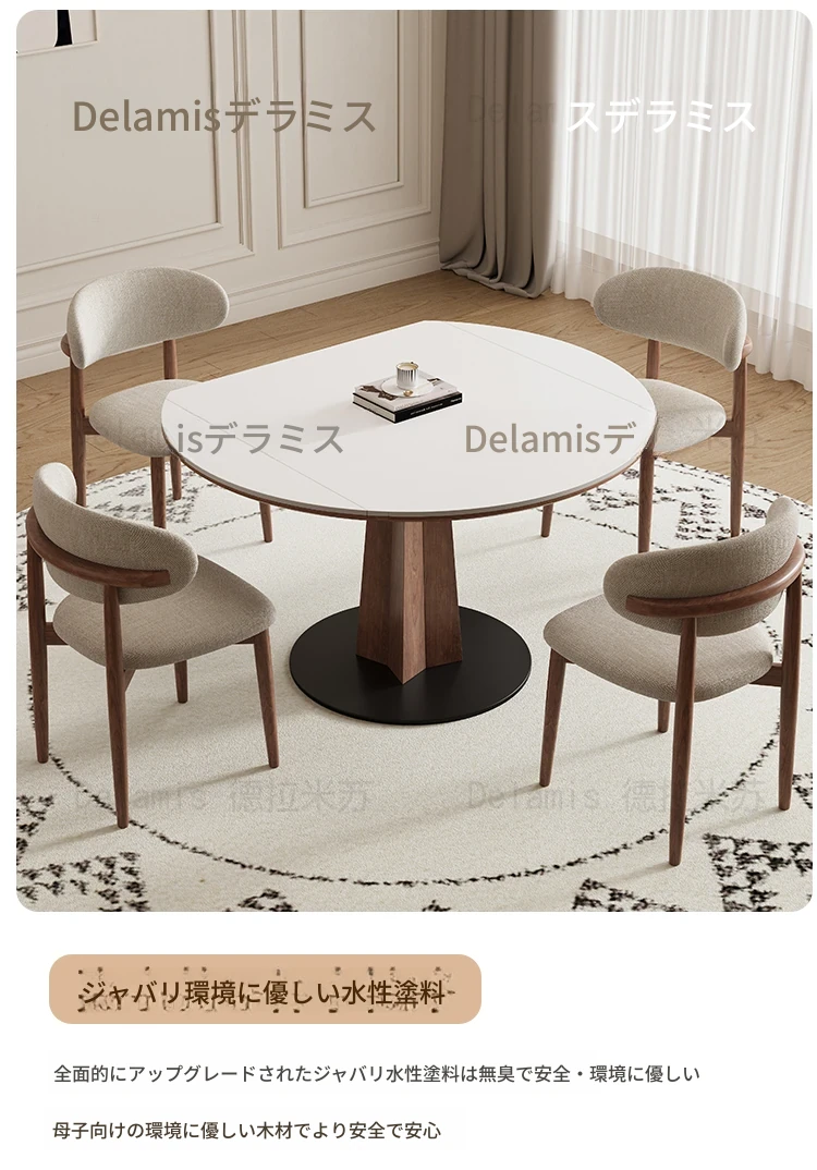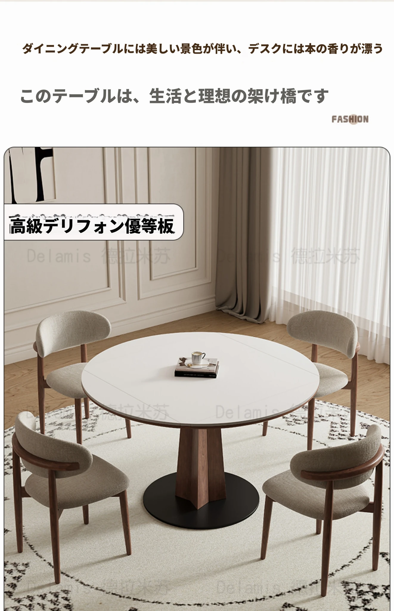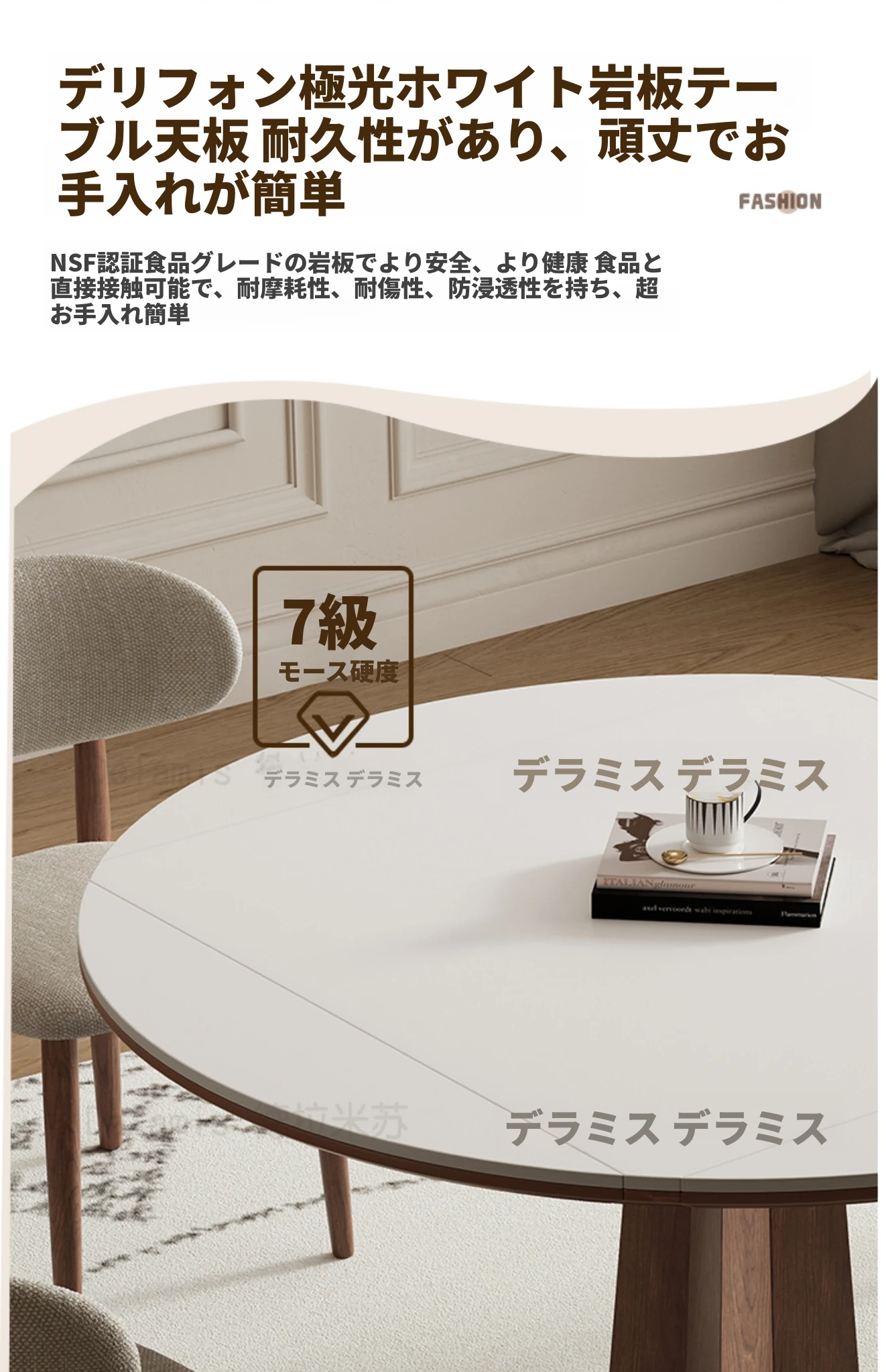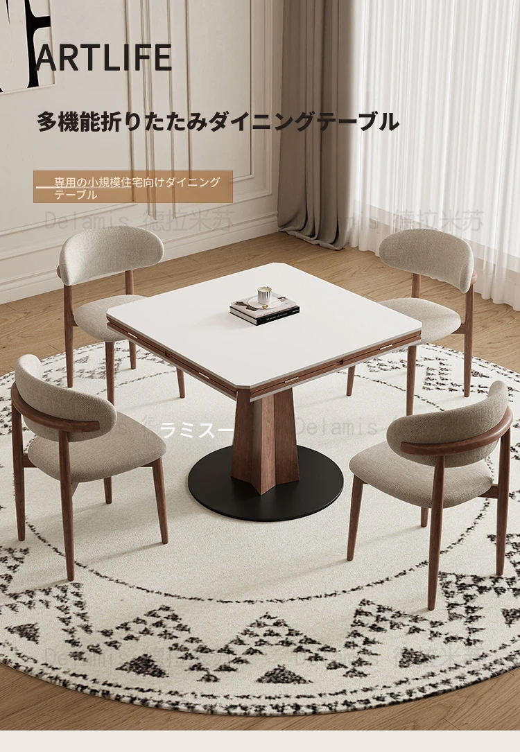 デリフォン無垢材ロックボードダイニングテーブル 小型住宅向け フランス風クリーム色 中古スタイル 伸縮可能な正方形・全托円卓で、スタイリッシュな食卓を演出!