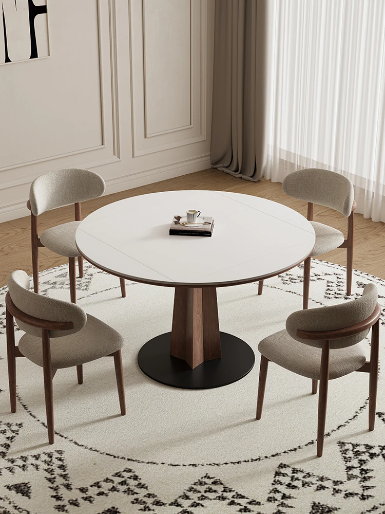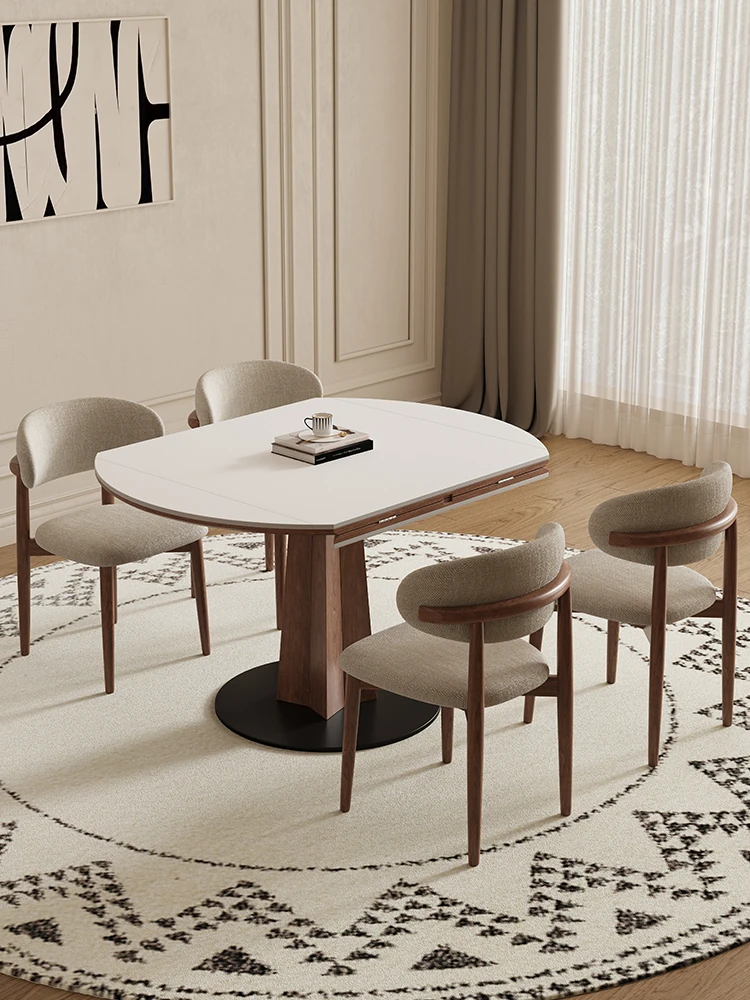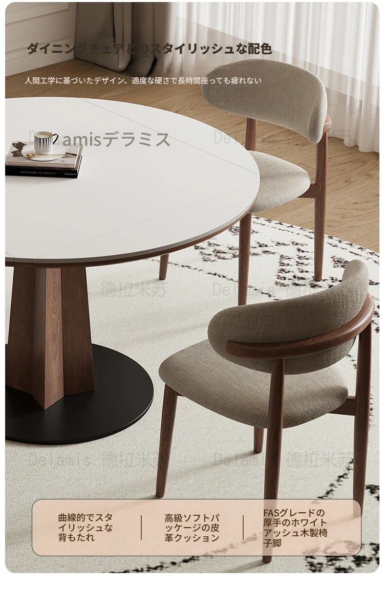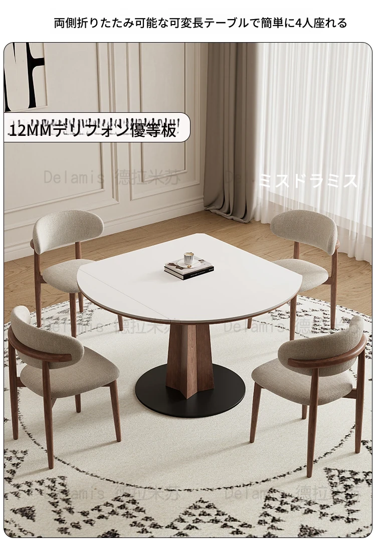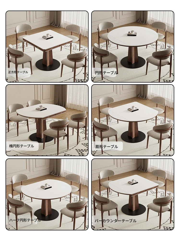 デリフォン無垢材ロックボードダイニングテーブル 小型住宅向け フランス風クリーム色 中古スタイル 伸縮可能な正方形・全托円卓で、スタイリッシュな食卓を演出!