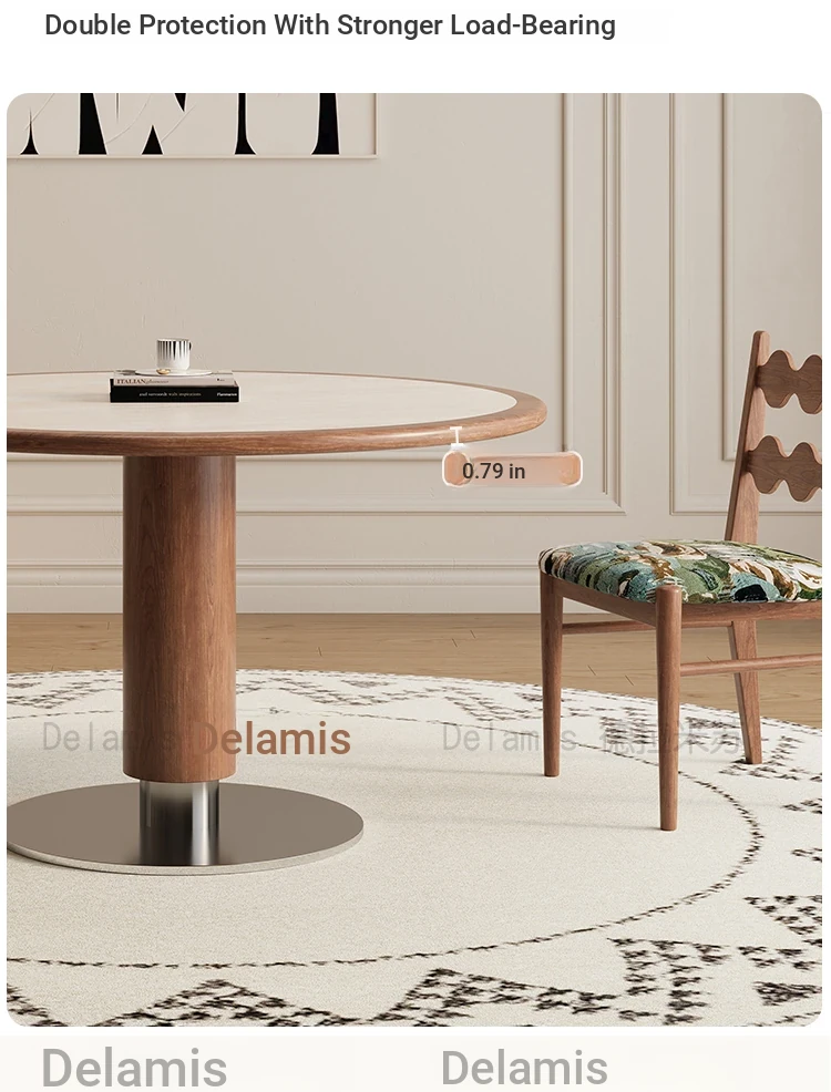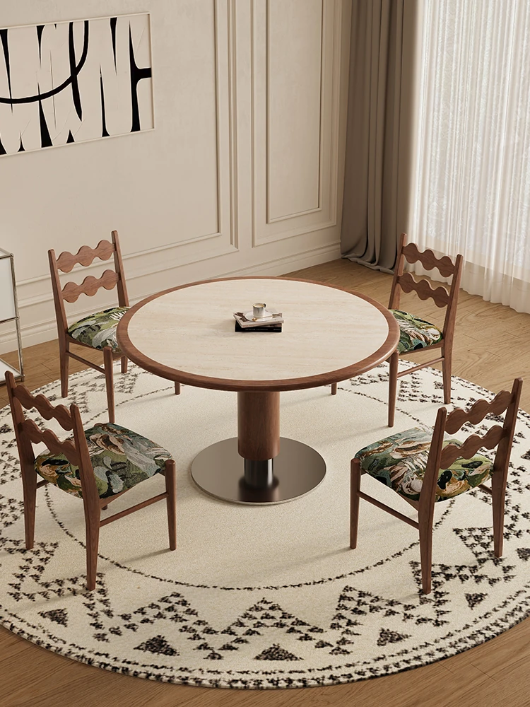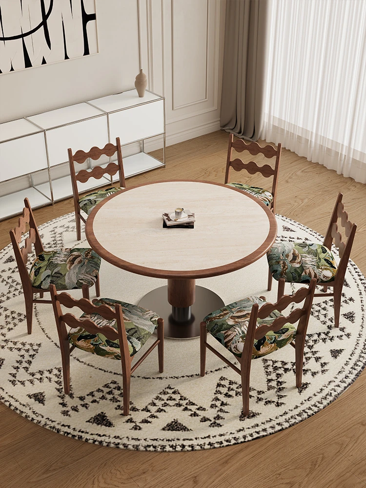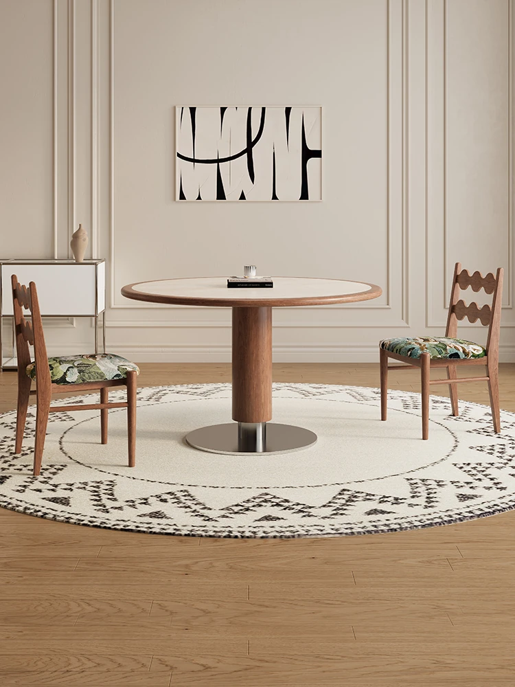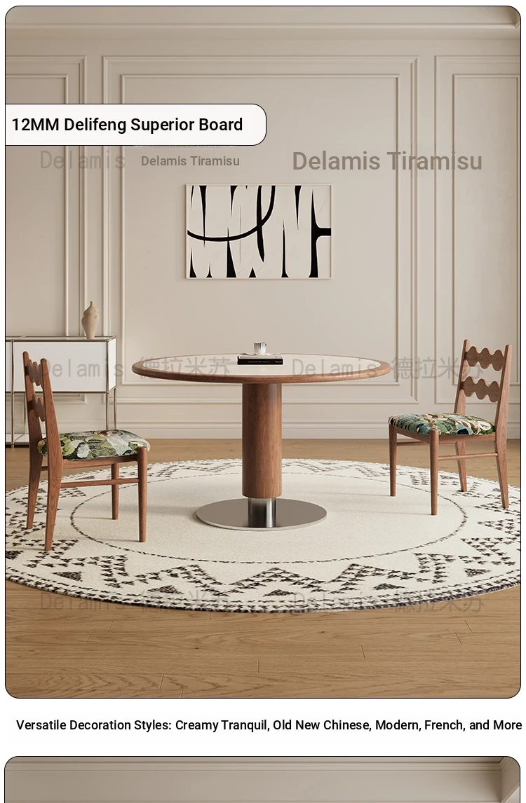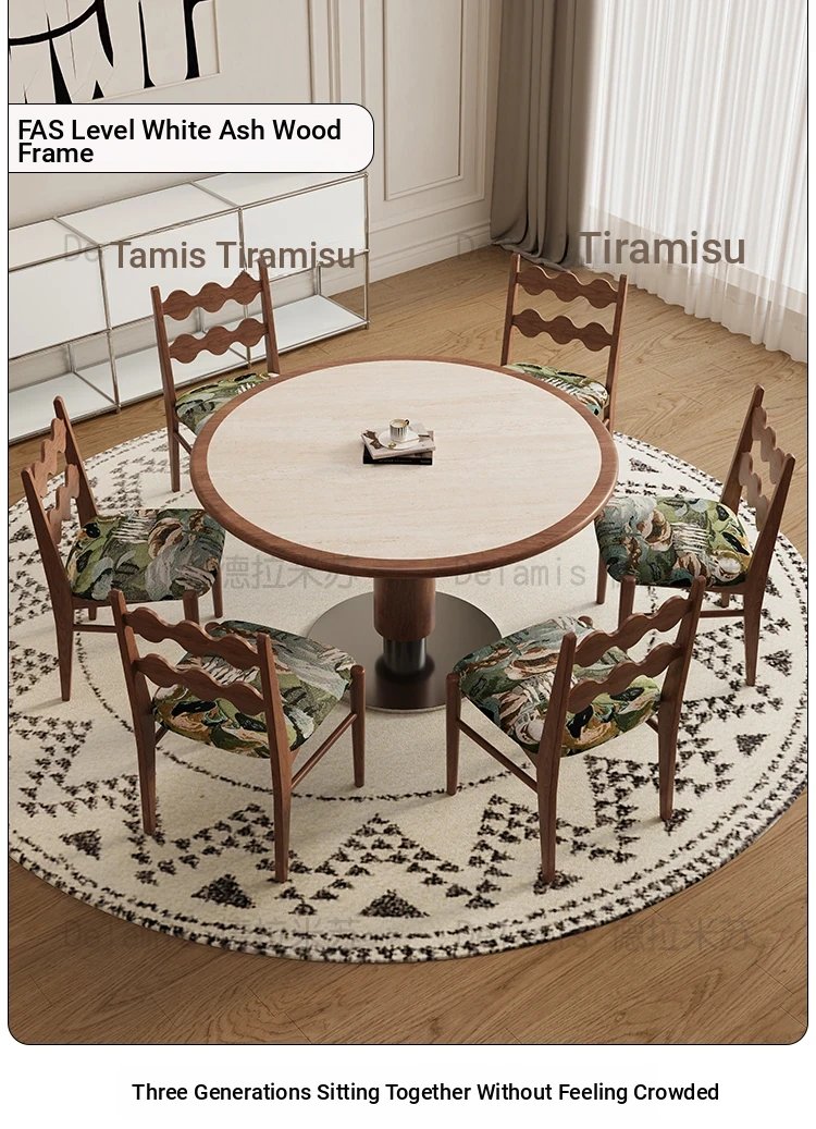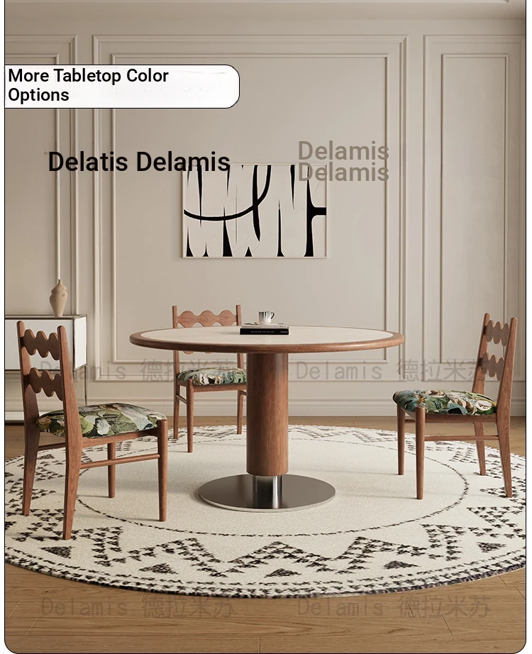 Delifeng Solid Wood Rock Plate Dining Table - French Cream Vintage Style, Space-Saving Round Table for Small Homes, Perfect for Cozy Family Gatherings