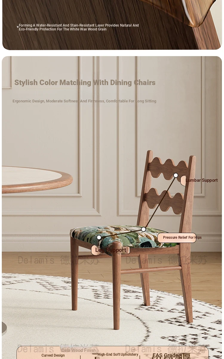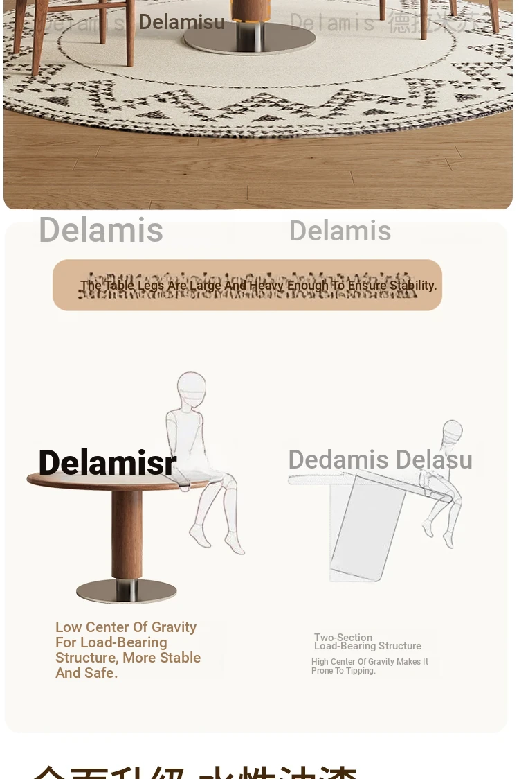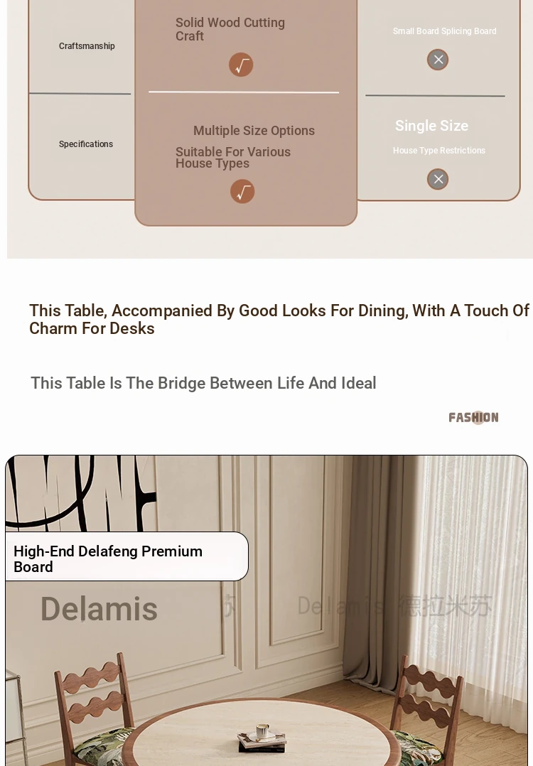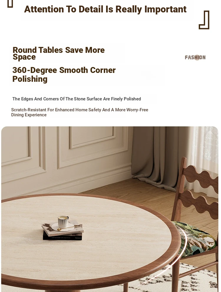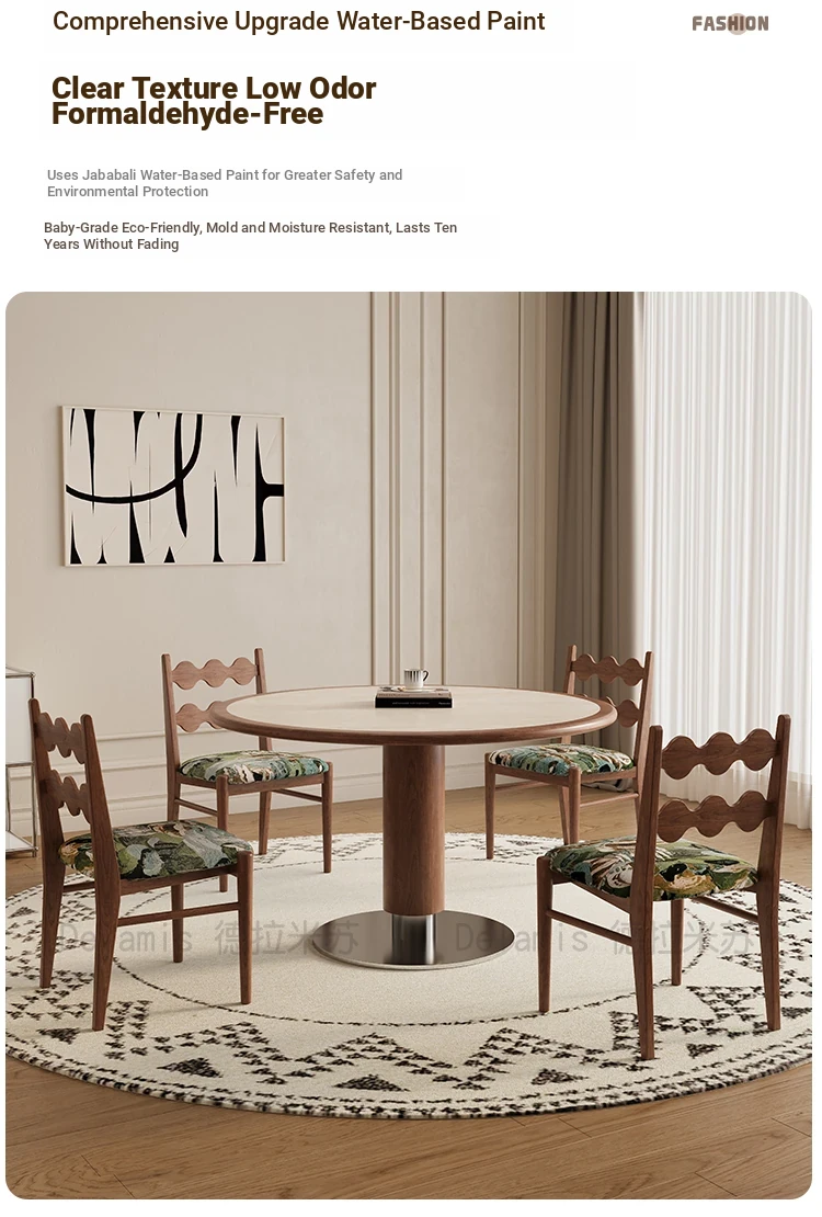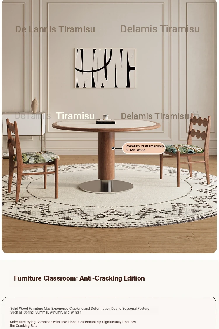 Delifeng Solid Wood Rock Plate Dining Table - French Cream Vintage Style, Space-Saving Round Table for Small Homes, Perfect for Cozy Family Gatherings
