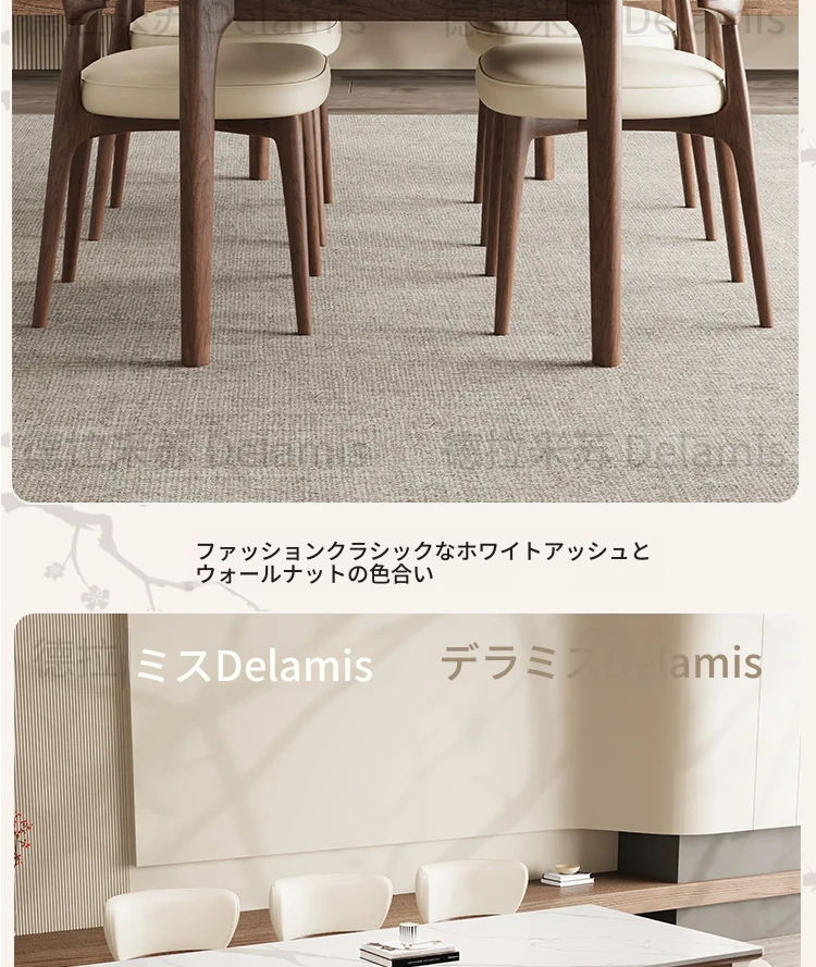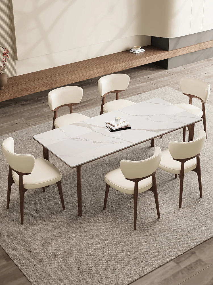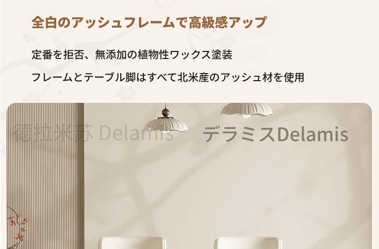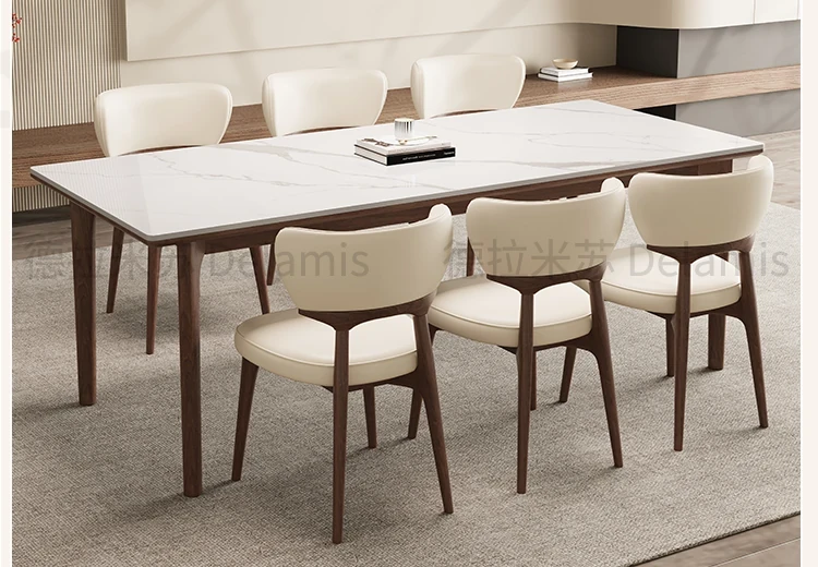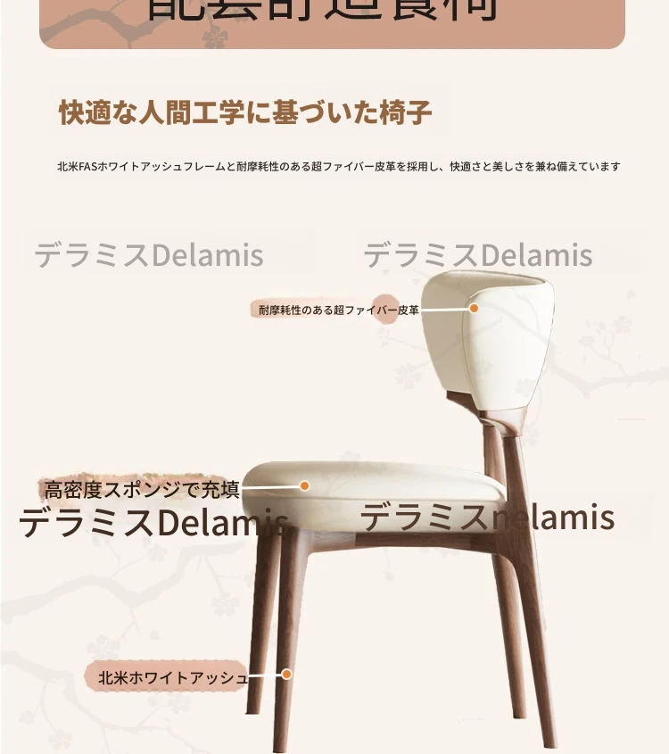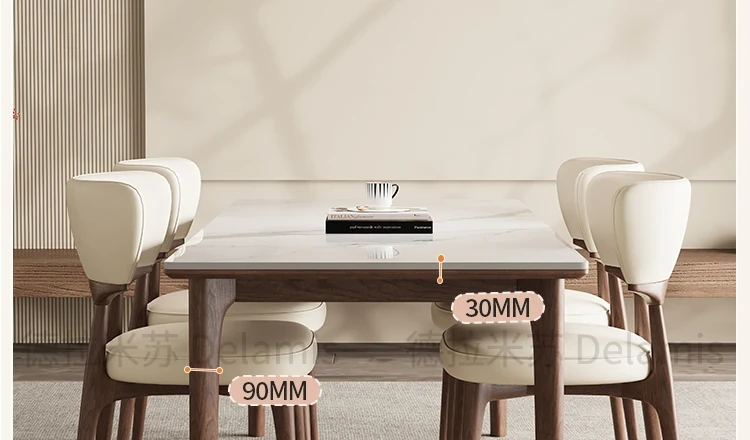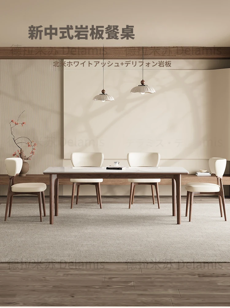 デリフォン無垢材ロックボードダイニングテーブル - 小型住宅向けの新中式高級ホワイトアッシュ木製デザイナー食卓。洗練されたデザインで、食事のひとときを特別に演出します!