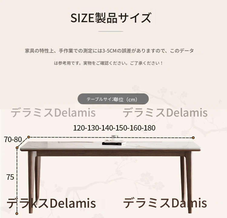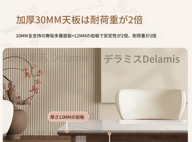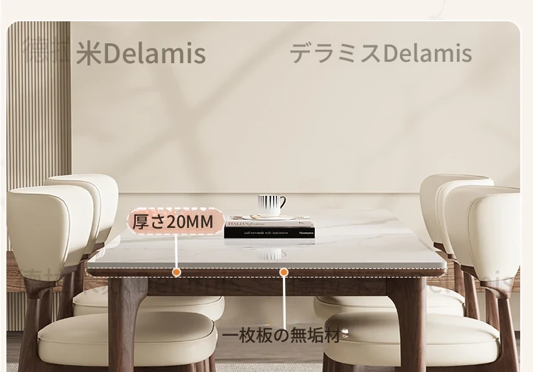 1.8*0.8メートル【高級デリフォン岩板】+無垢材ダイニングチェア*6