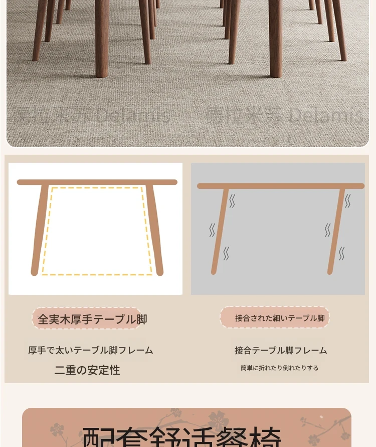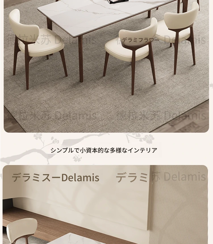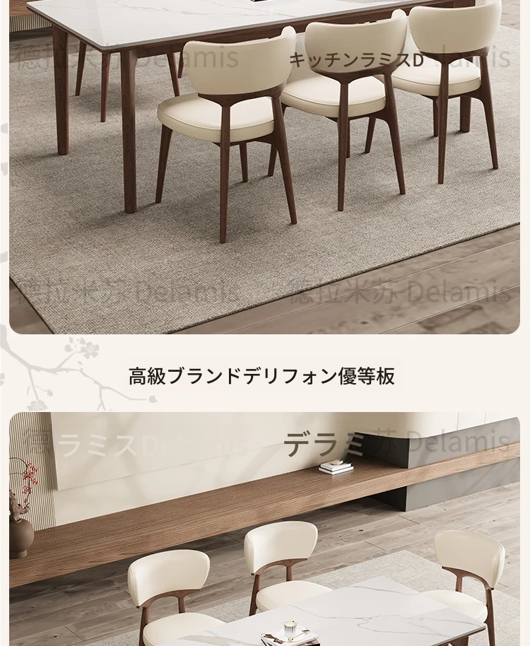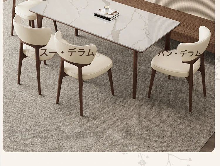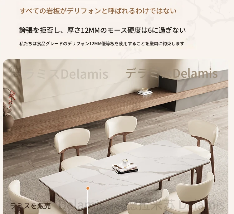 1.5*0.8メートル【高級デリフォン岩板】+無垢材ダイニングチェア*6