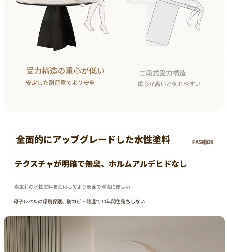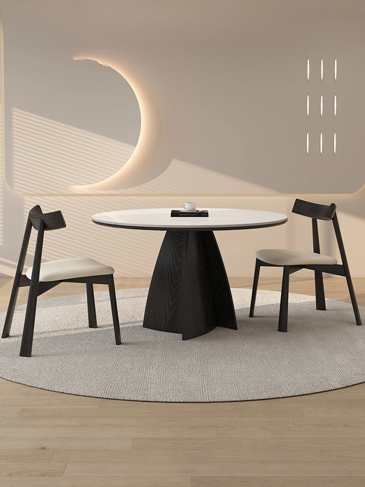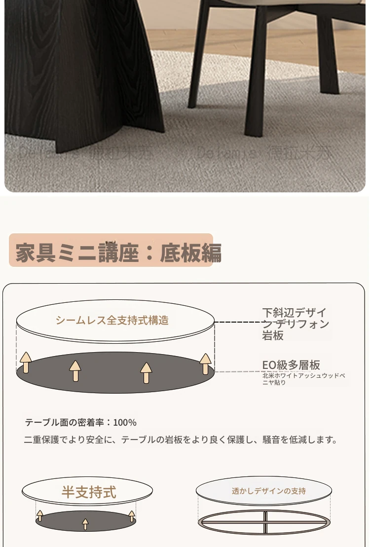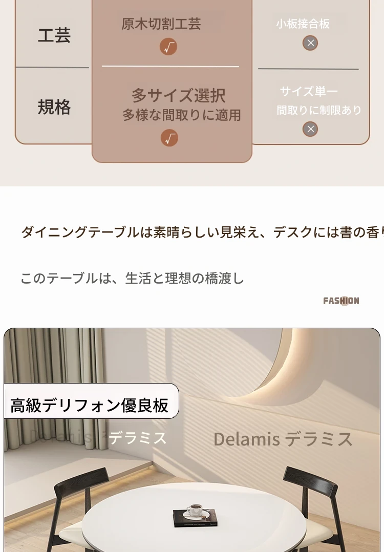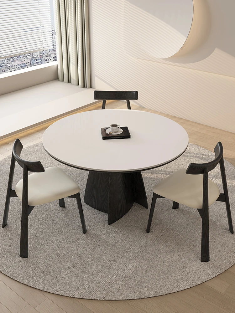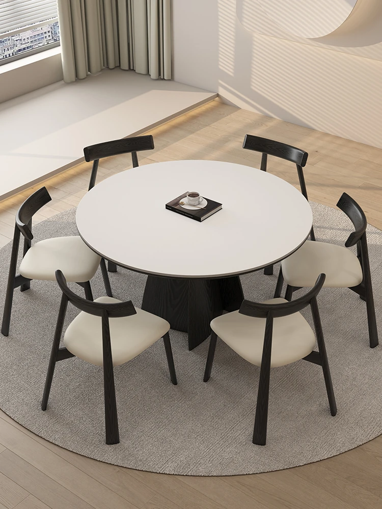 デリフォン無垢材のラウンドテーブル - 家庭用クリーム色ミッドセンチュリースタイル、高級感あふれる全周囲デザインの円卓で、心地よい食事のひとときをお届けします。