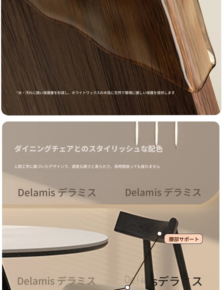 1.5メートルダイニングテーブル+6脚の無垢材ダイニングチェア