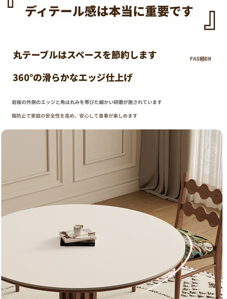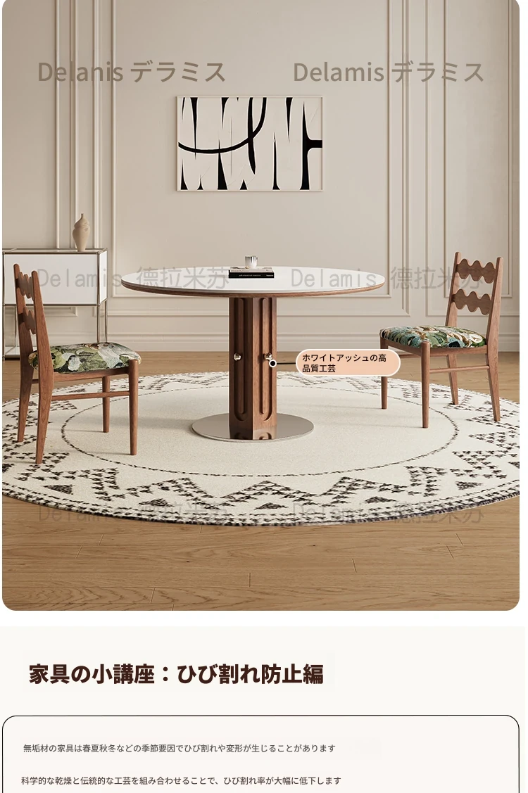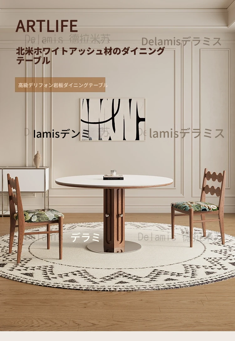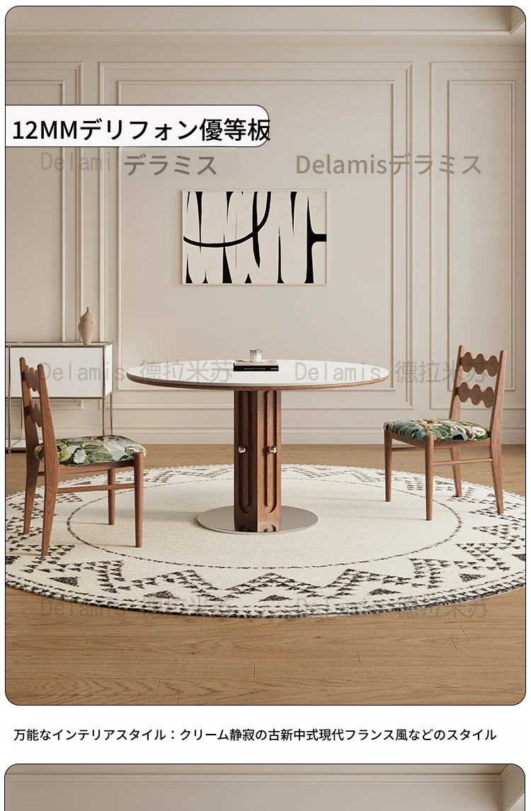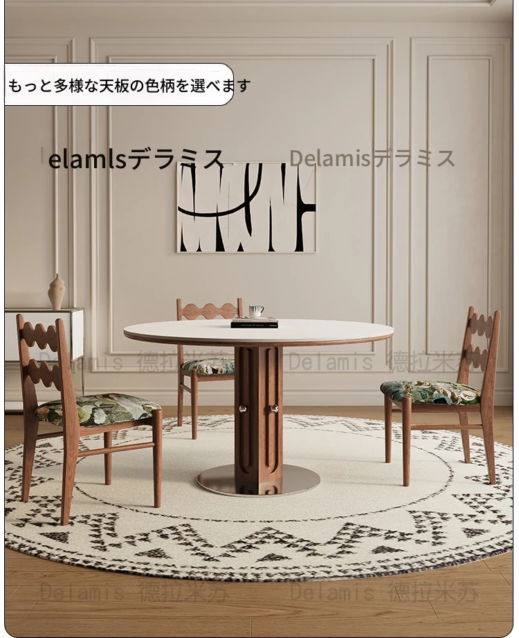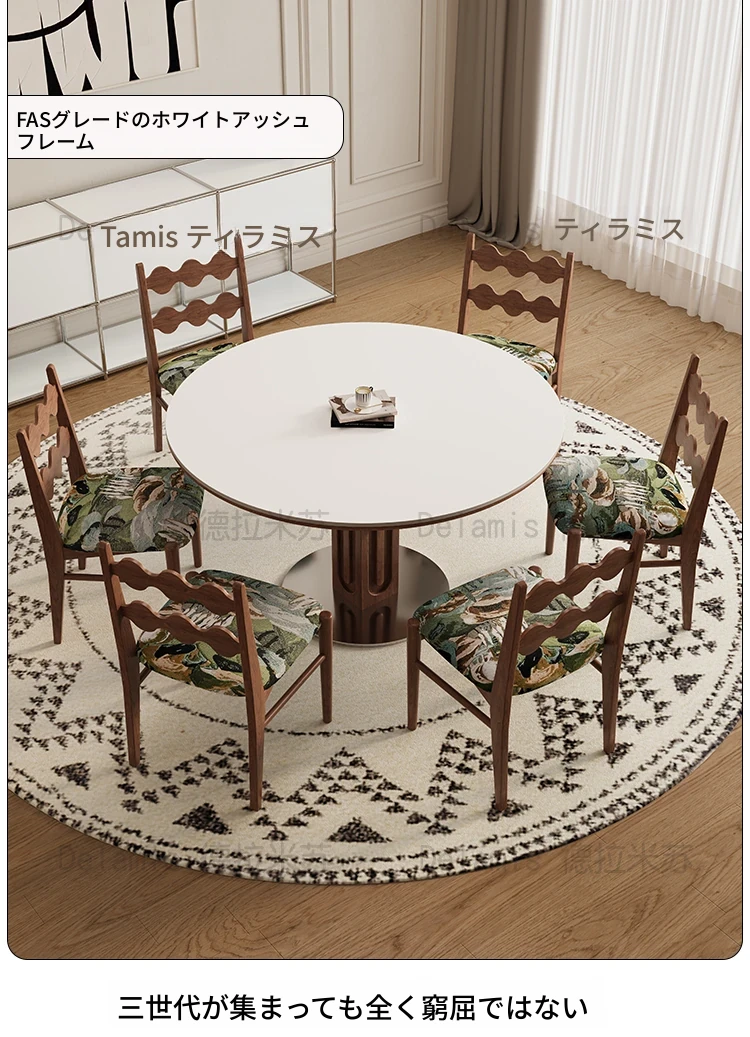 デリフォン無垢材ロックプレートダイニングテーブル 小型住宅向け バウハウス風 フレンチクリームデザイン 家庭用丸型デザイナー食卓 使い勝手抜群でおしゃれな食卓を実現!