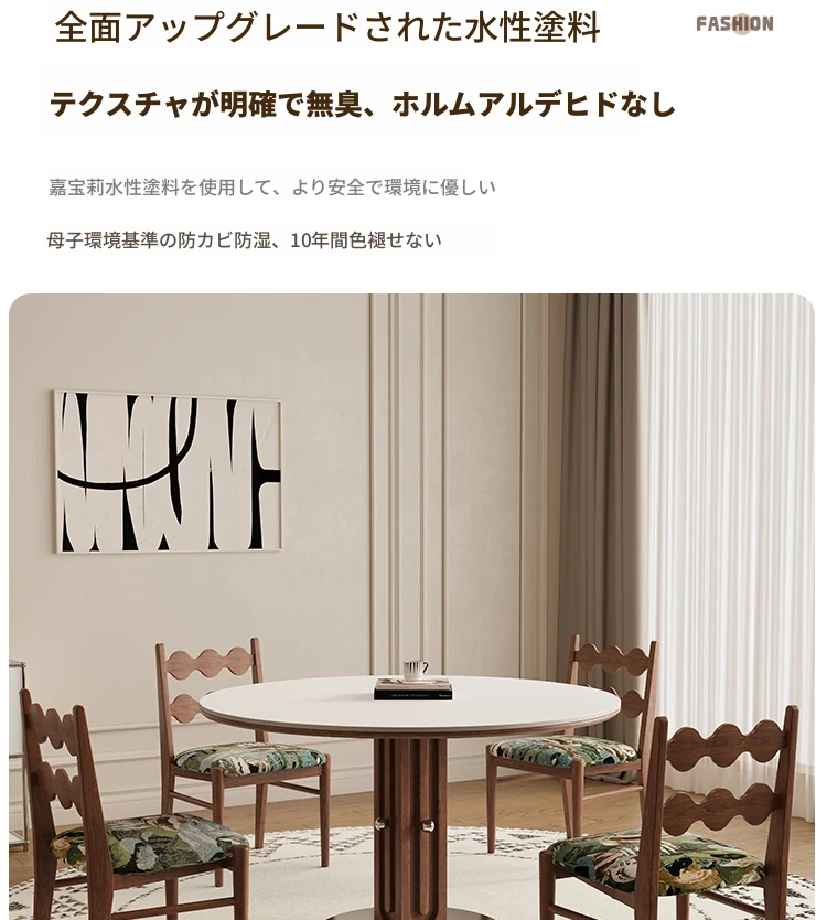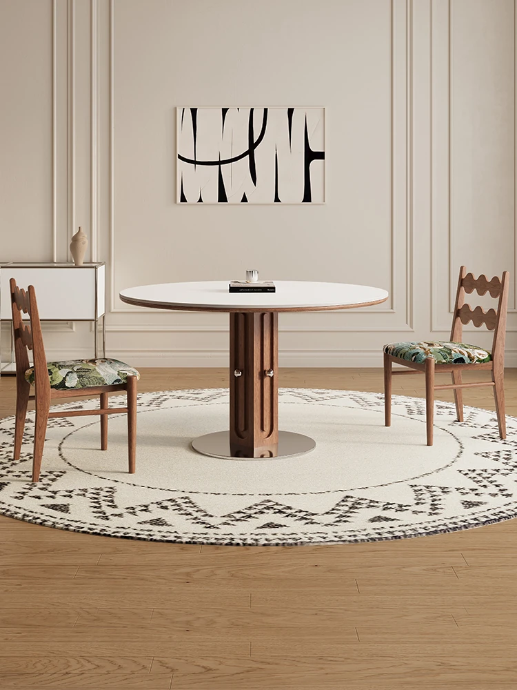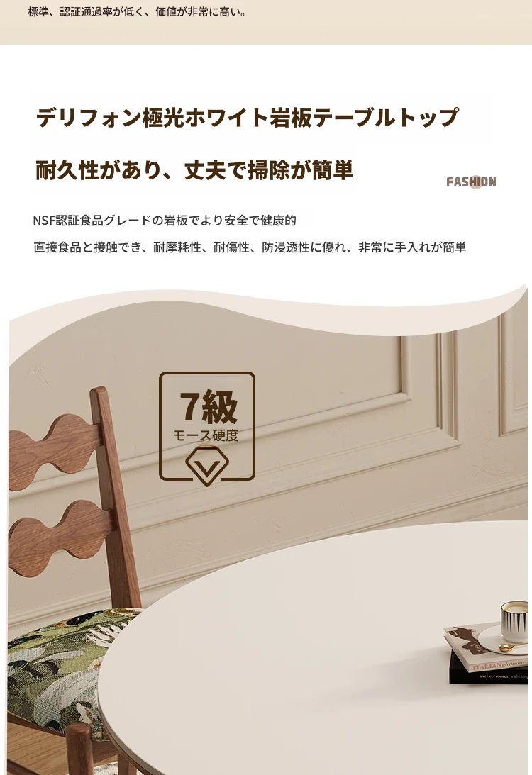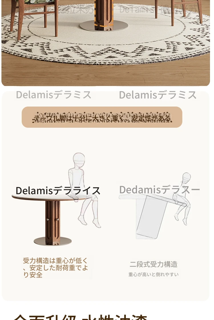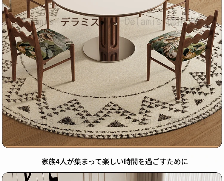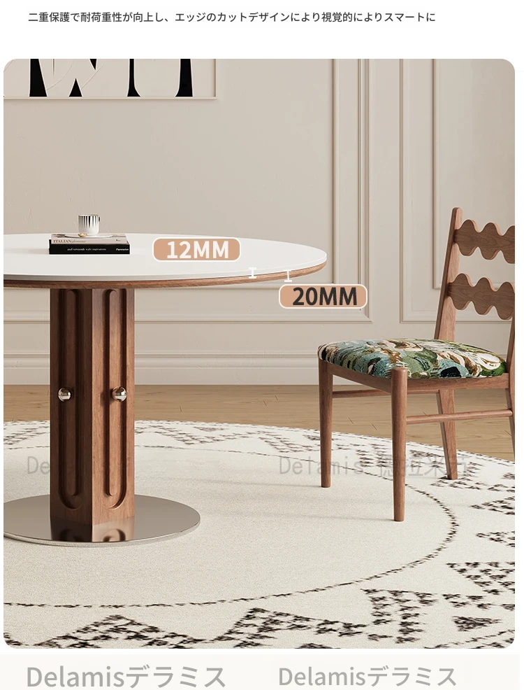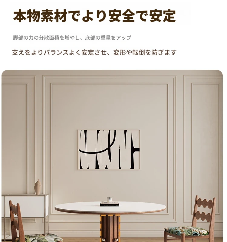 デリフォン無垢材ロックプレートダイニングテーブル 小型住宅向け バウハウス風 フレンチクリームデザイン 家庭用丸型デザイナー食卓 使い勝手抜群でおしゃれな食卓を実現!