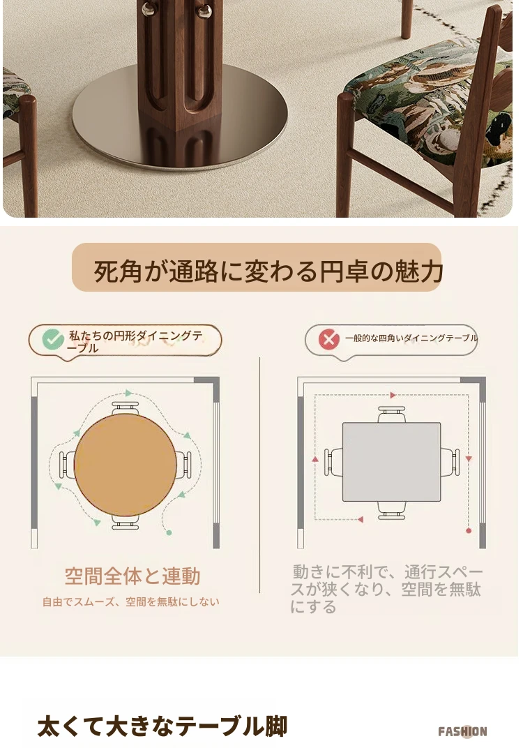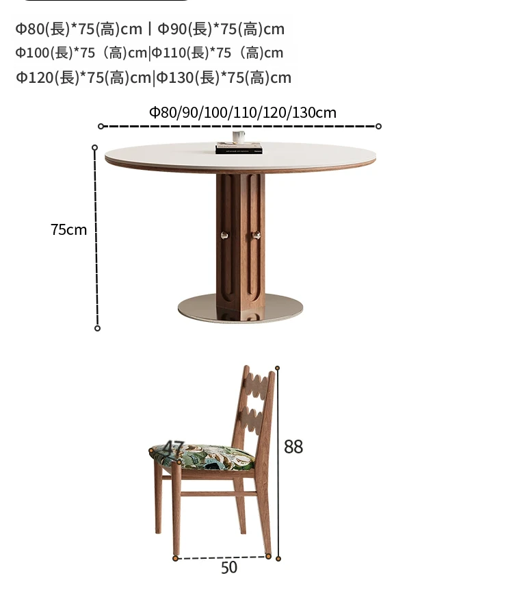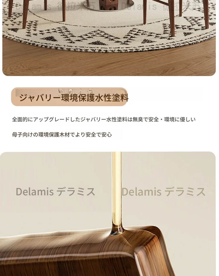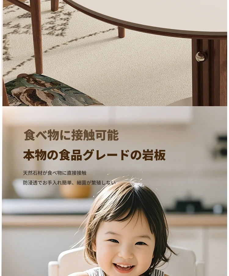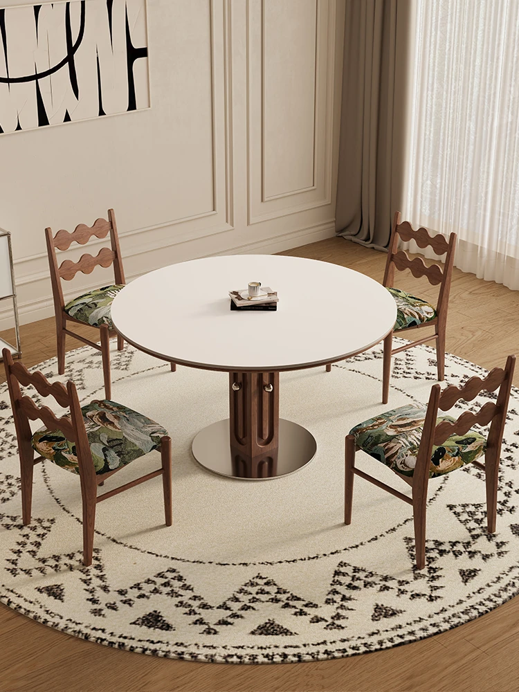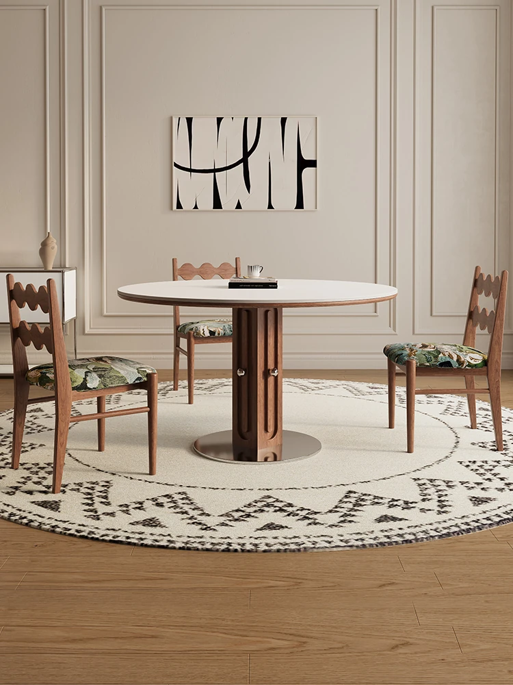 デリフォン無垢材ロックプレートダイニングテーブル 小型住宅向け バウハウス風 フレンチクリームデザイン 家庭用丸型デザイナー食卓 使い勝手抜群でおしゃれな食卓を実現!