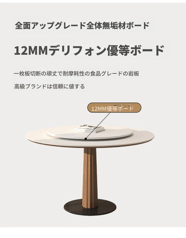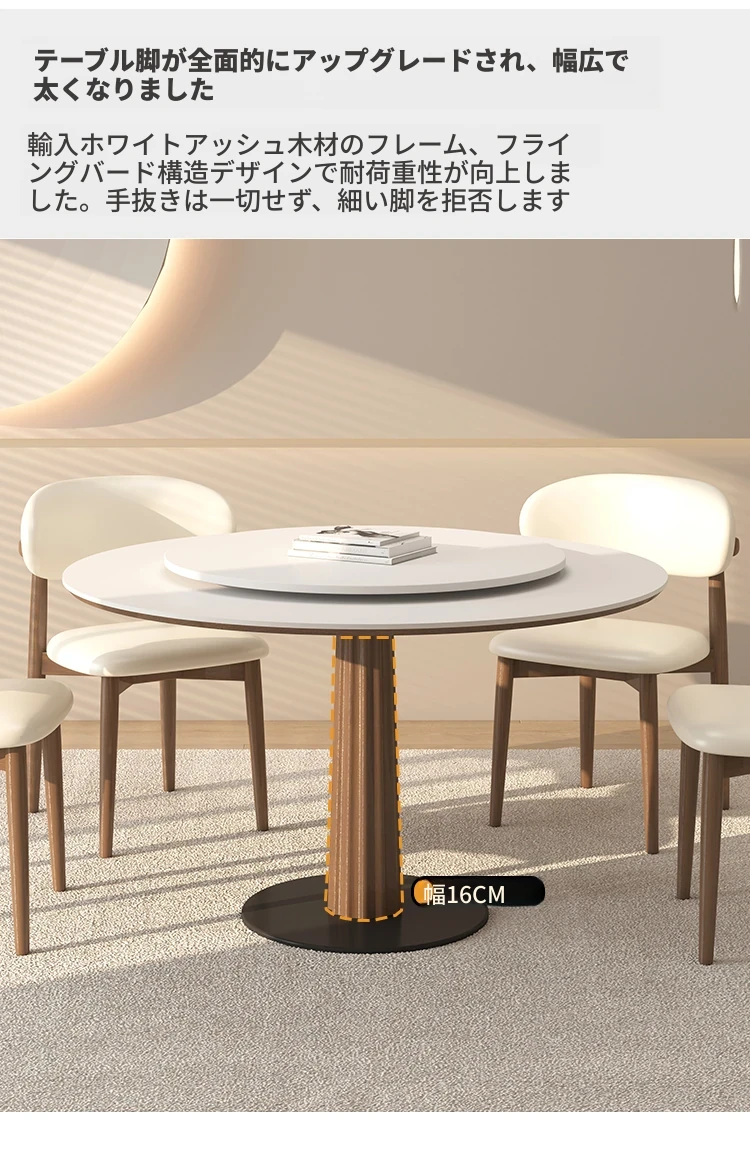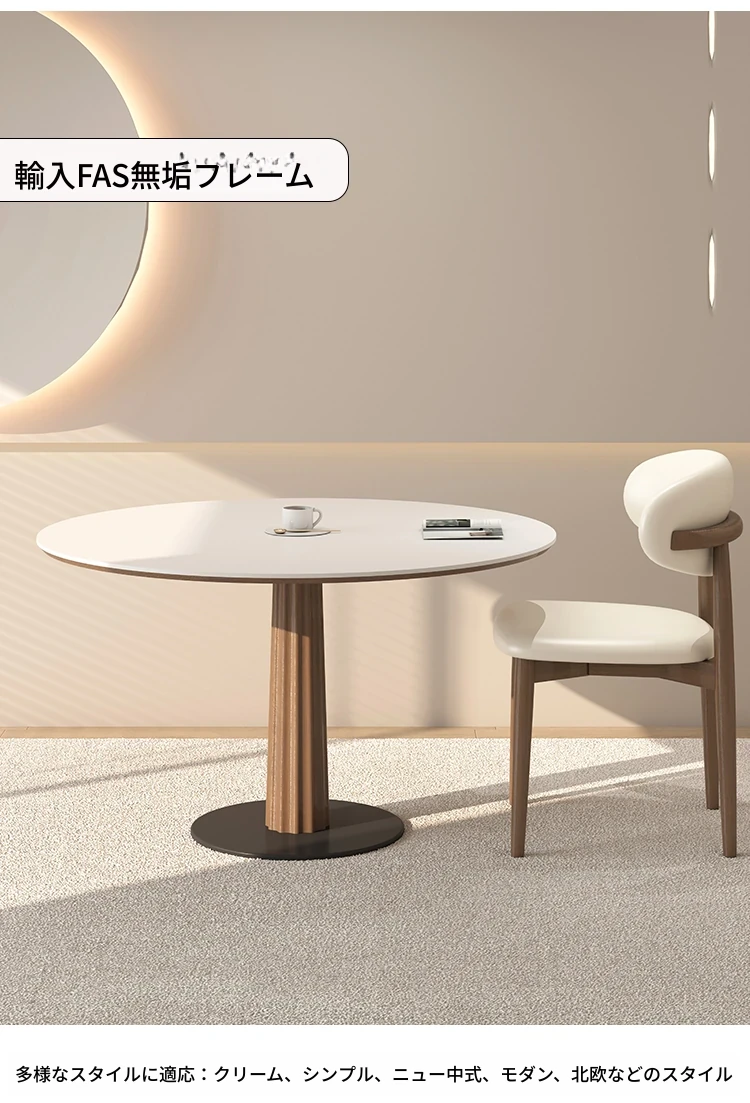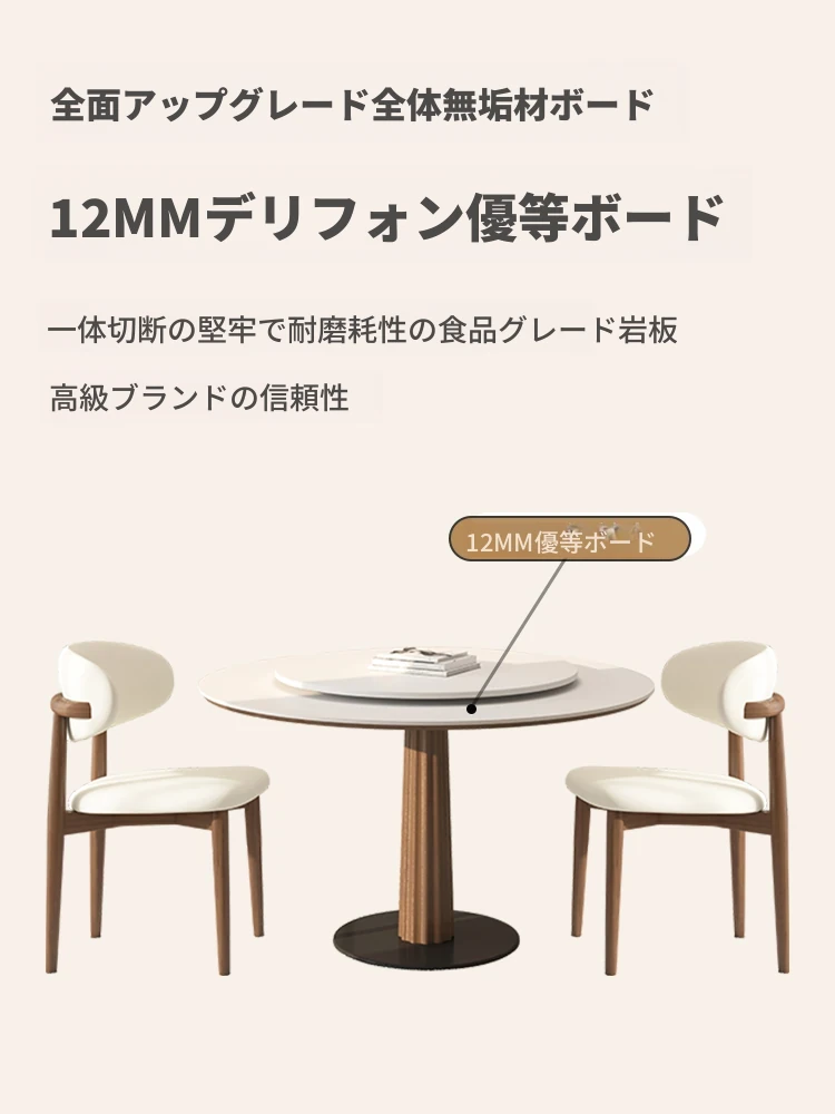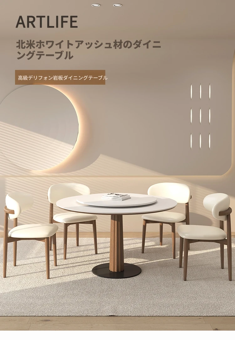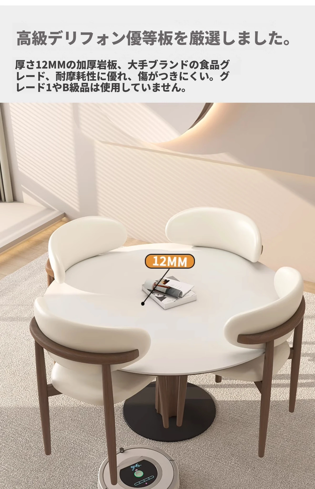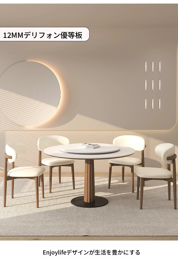 デリフォンの天然木製ロックプレート円卓 - 小型住宅向け、モダンでシンプルなデザイン、回転プレート付きの大理石風ダイニングテーブル&チェアセットで、家族や友人との食事をより特別なものに!