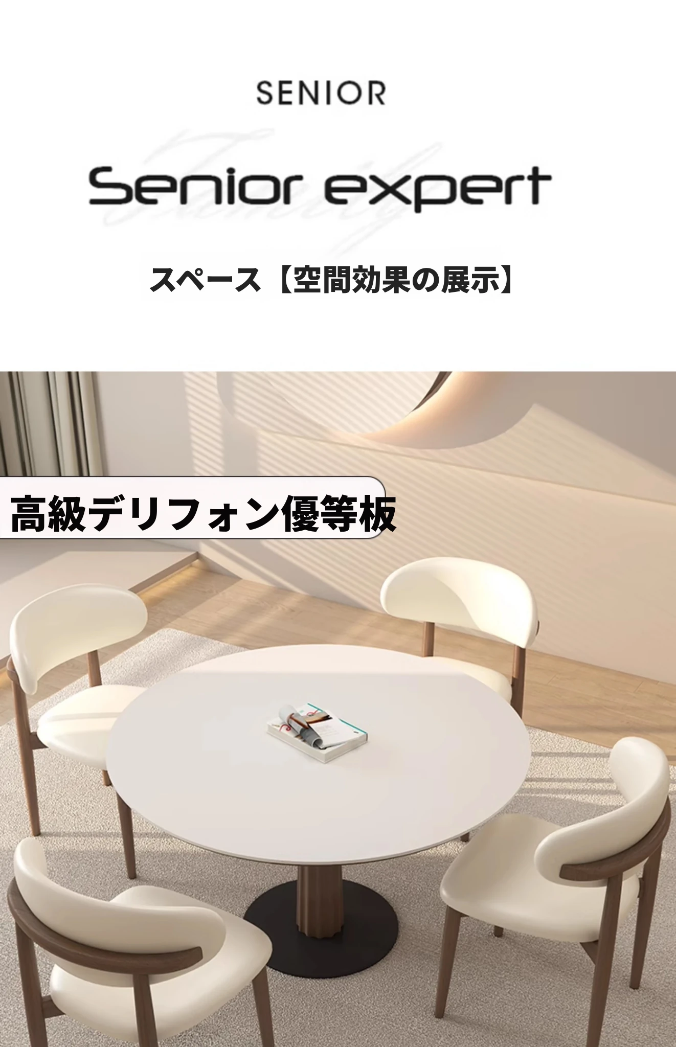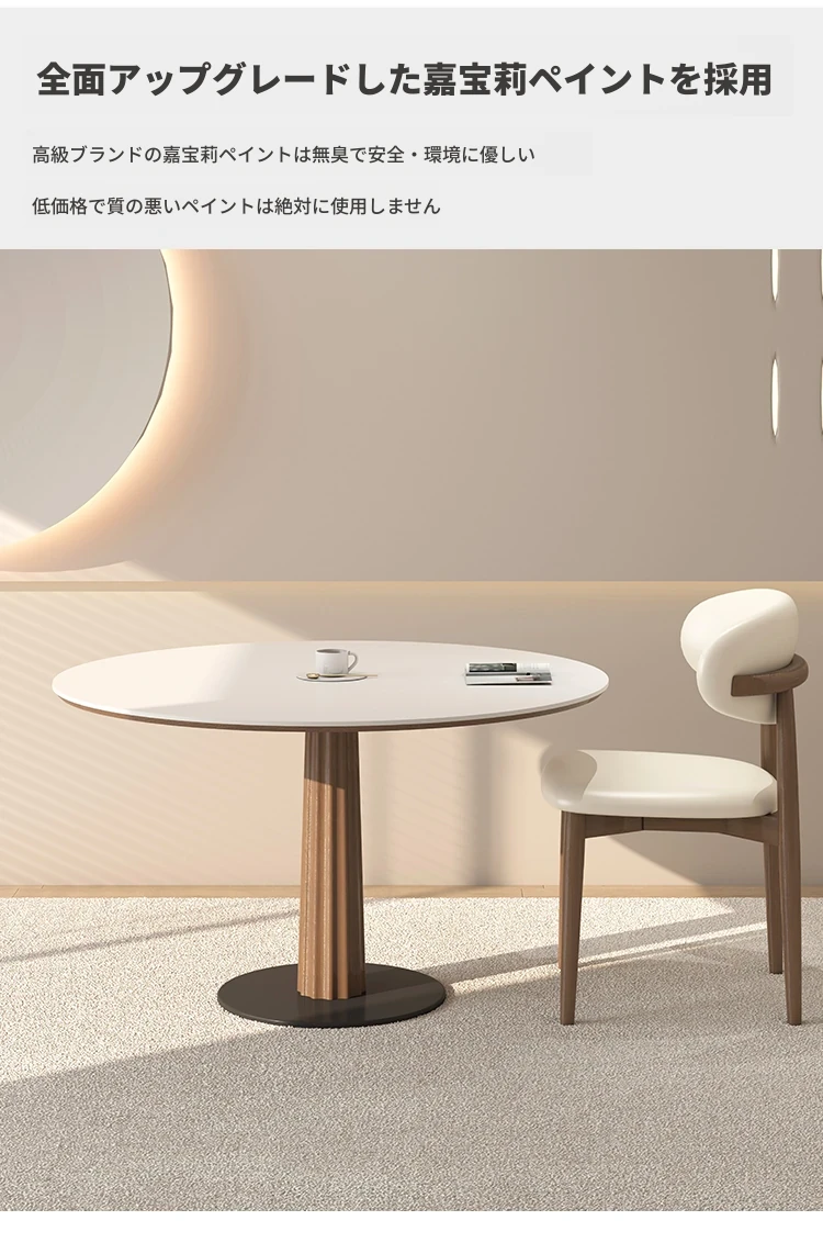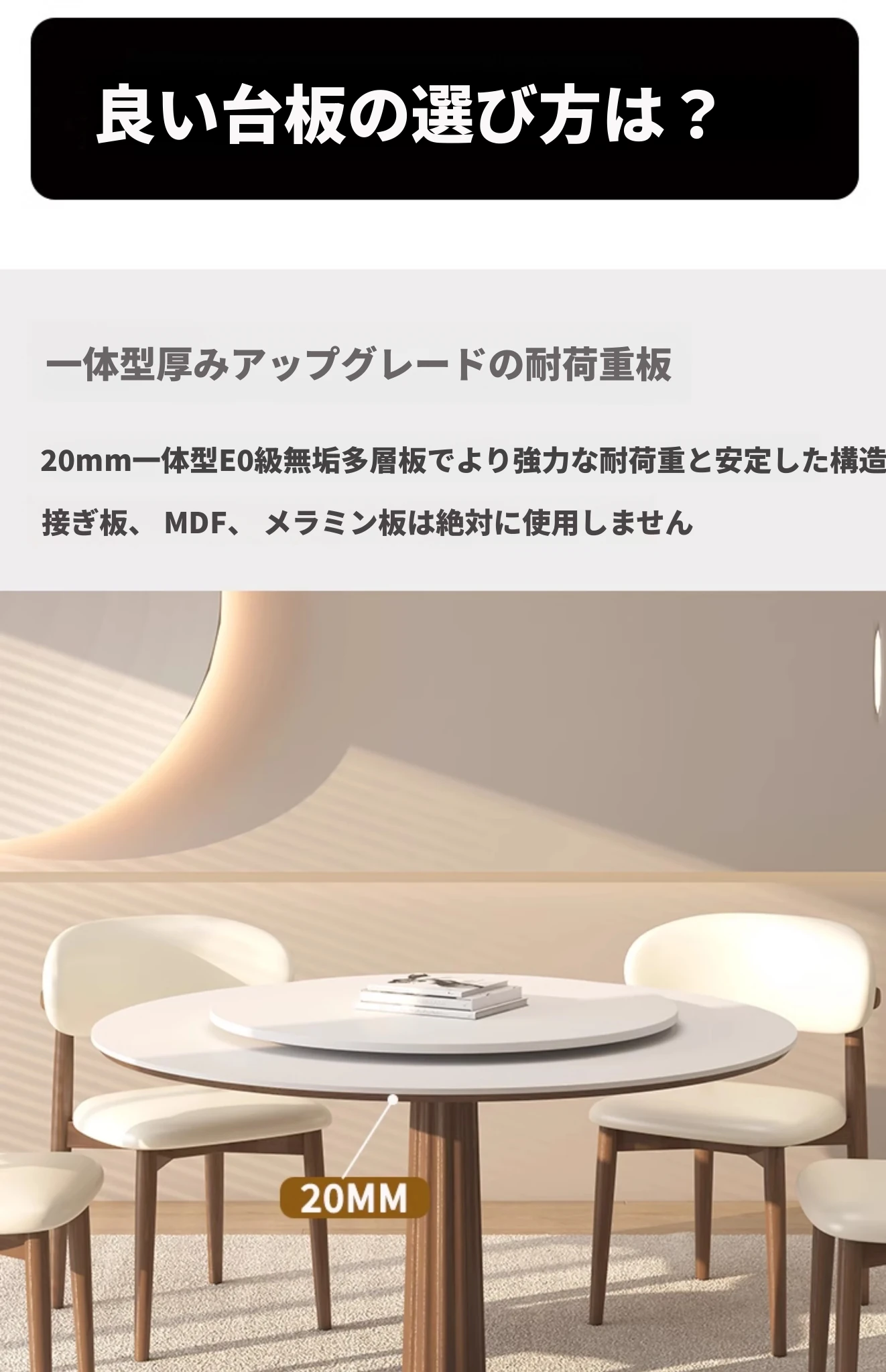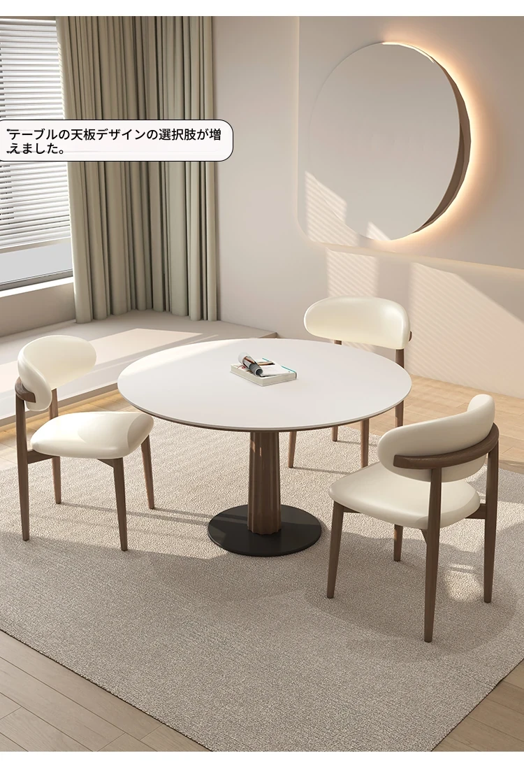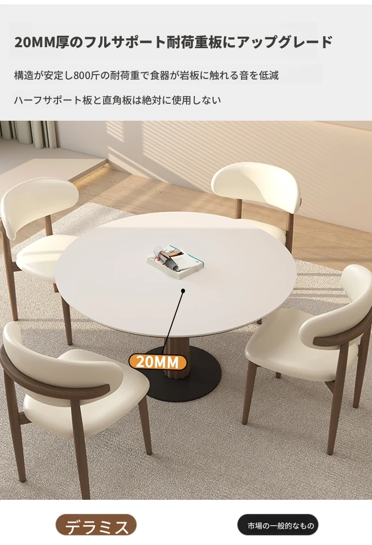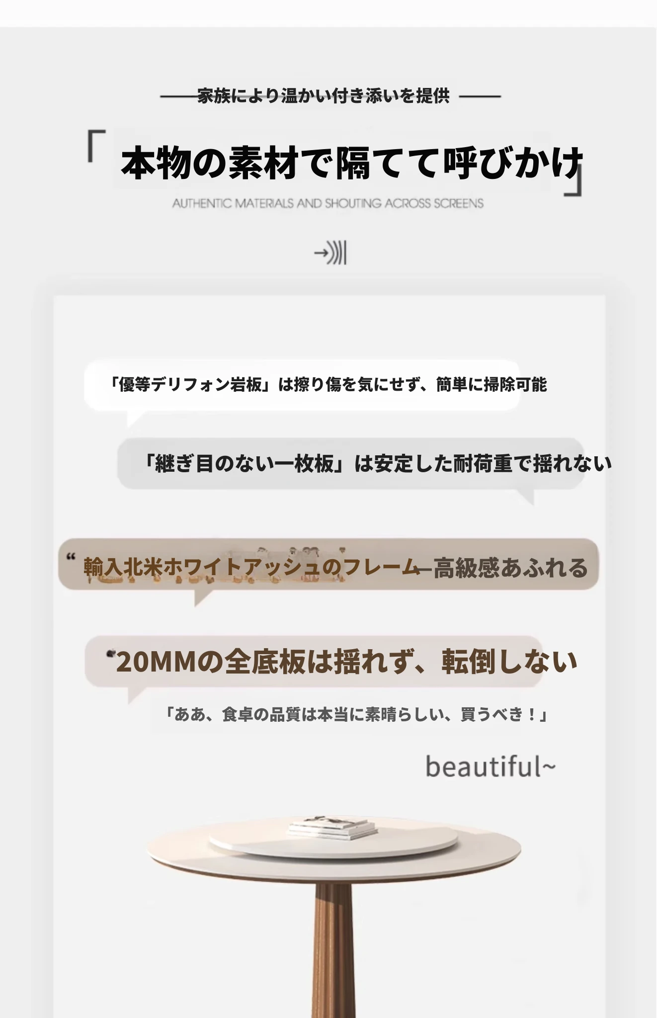 デリフォンの天然木製ロックプレート円卓 - 小型住宅向け、モダンでシンプルなデザイン、回転プレート付きの大理石風ダイニングテーブル&チェアセットで、家族や友人との食事をより特別なものに!