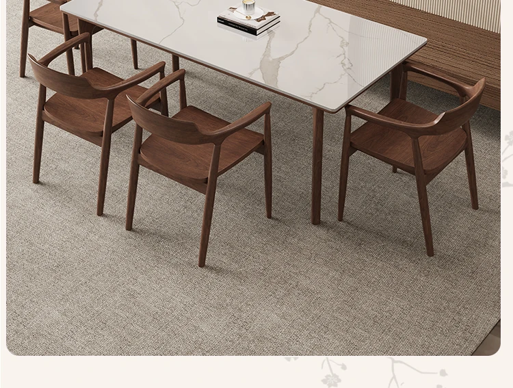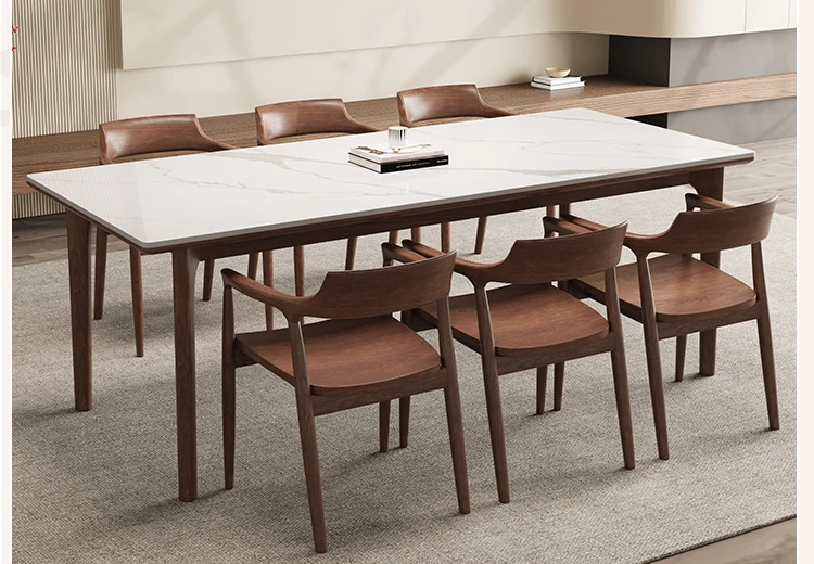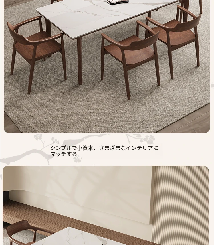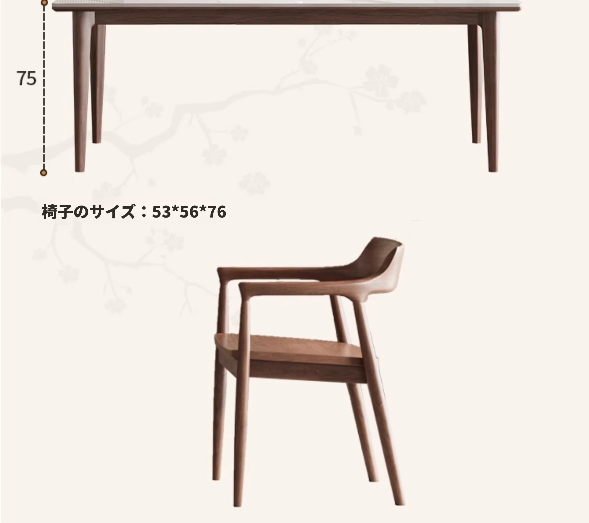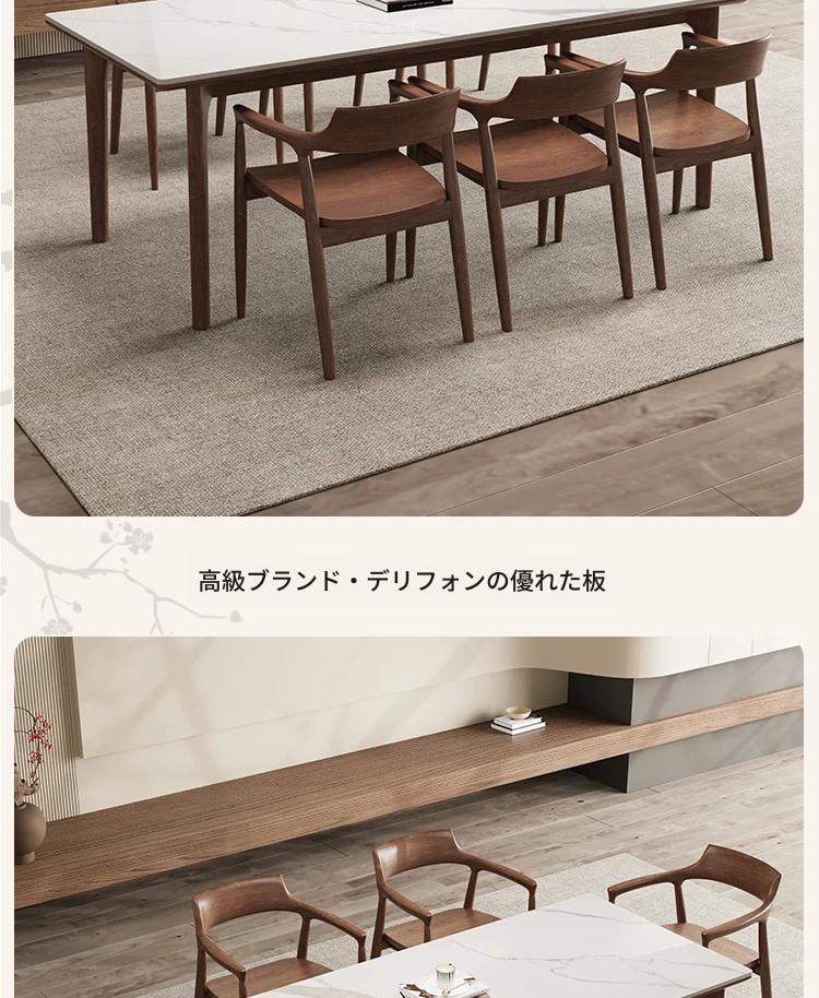1.5*0.8メートル【高級デリフォン岩板】+無垢材ダイニングチェア*6