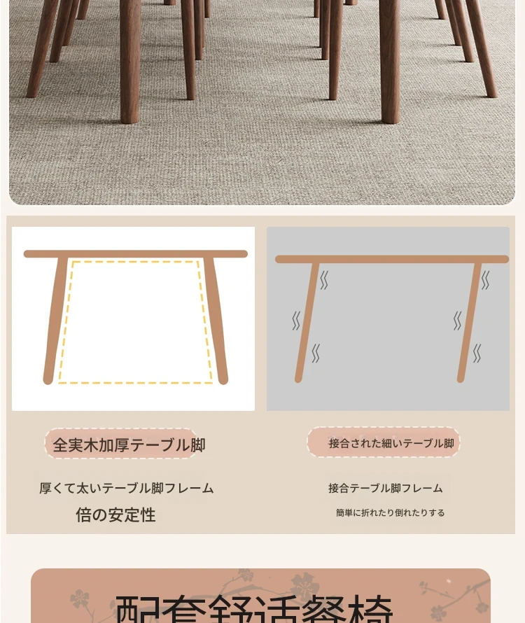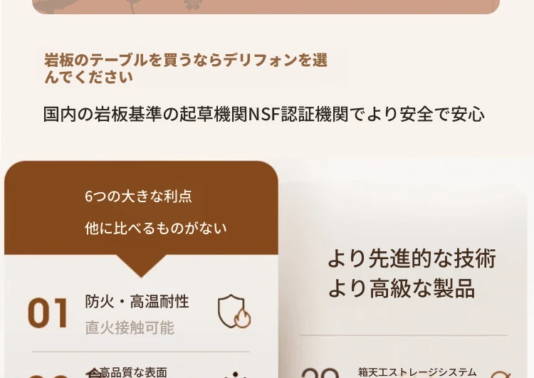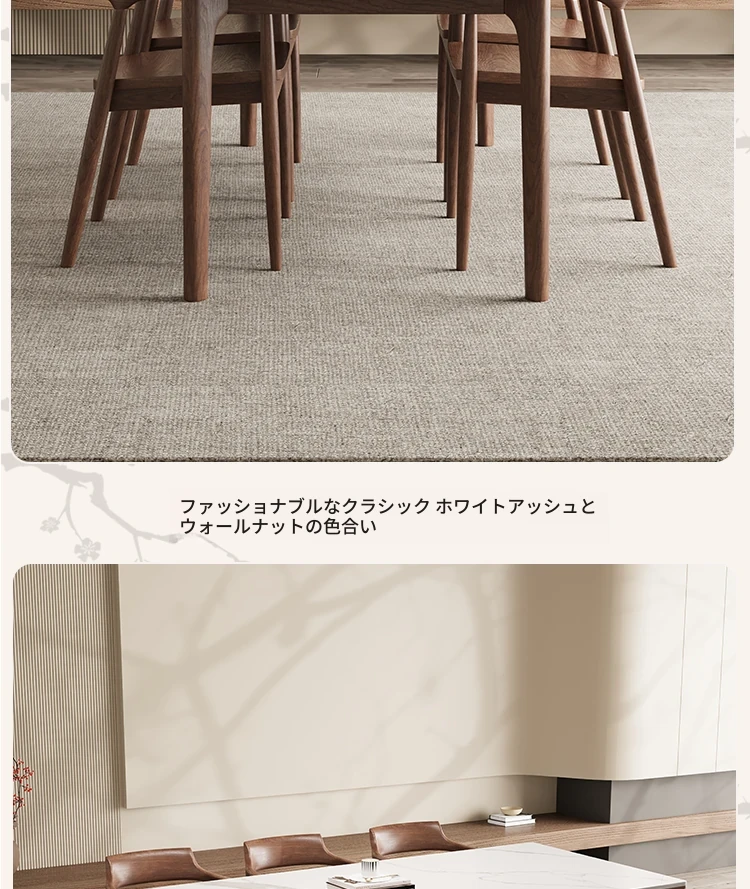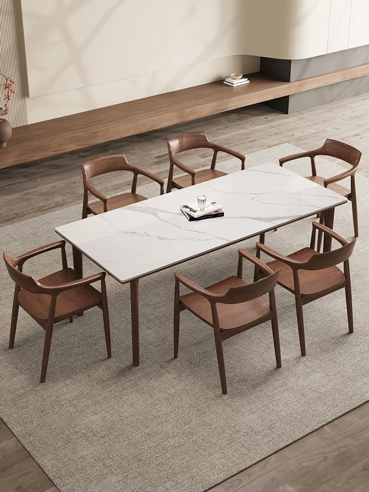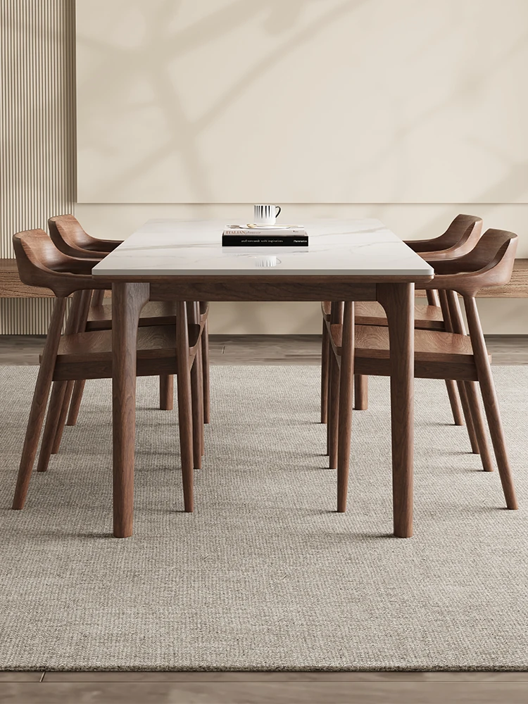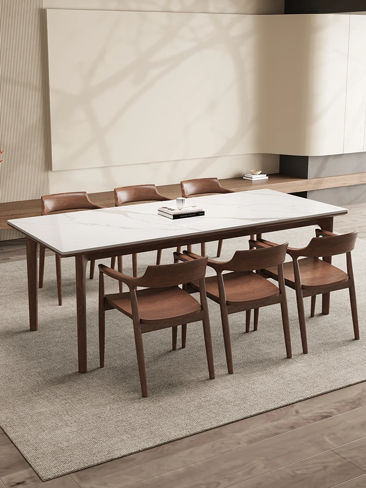 1.5*0.8メートル【高級デリフォン岩板】+無垢材ダイニングチェア*6