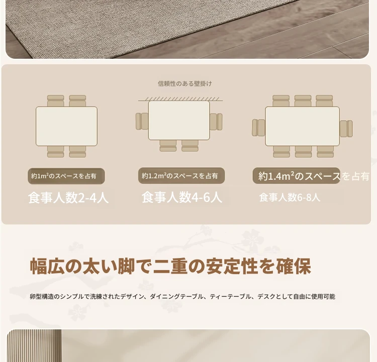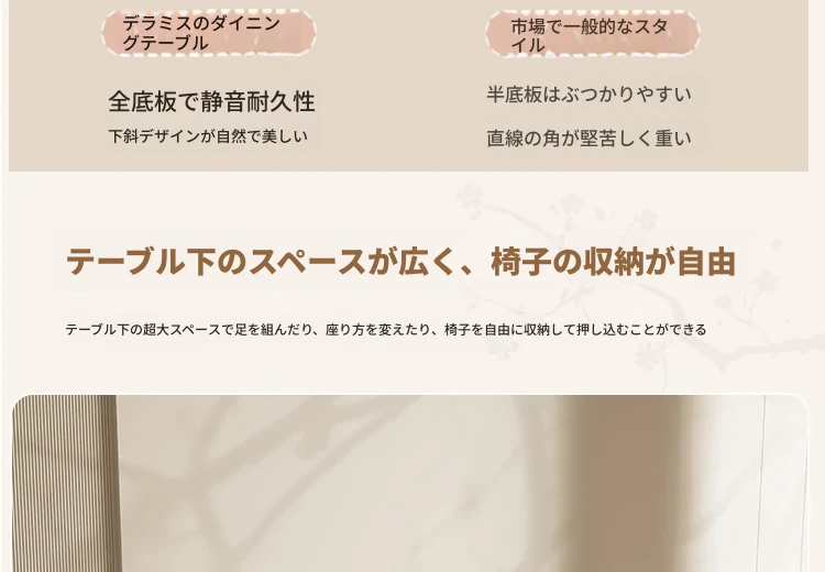 デリフォン無垢材ロックボードダイニングテーブル - 家庭用クリーム色のアンティークスタイル、高級感あふれる小型長方形テーブルで、狭いスペースでもおしゃれな食卓を演出します。