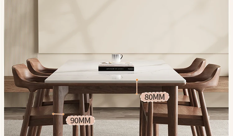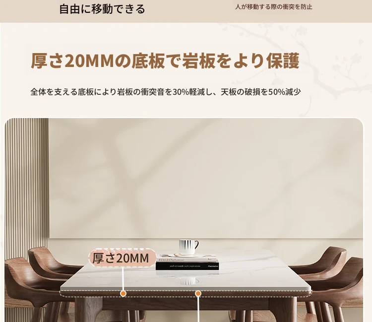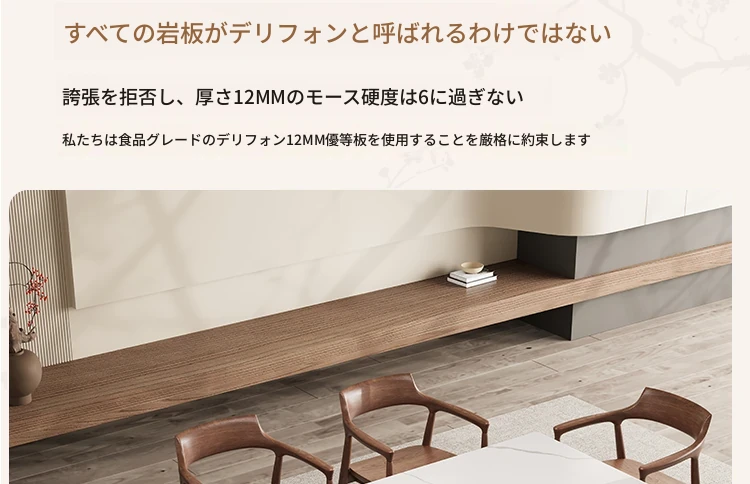 1.8*0.8メートル【高級デリフォン岩板】+無垢材ダイニングチェア*6