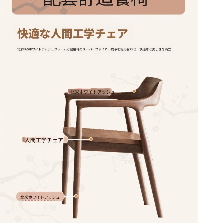1.5*0.8メートル【高級デリフォン岩板】+無垢材ダイニングチェア*4