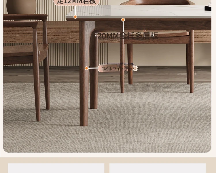 1.8*0.8メートル【高級デリフォン岩板】+無垢材ダイニングチェア*8