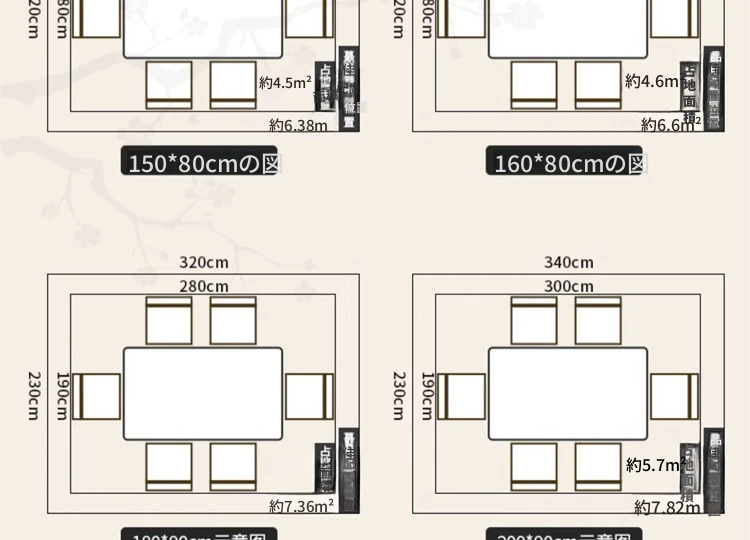 1.8*0.8メートル【高級デリフォン岩板】+無垢材ダイニングチェア*4