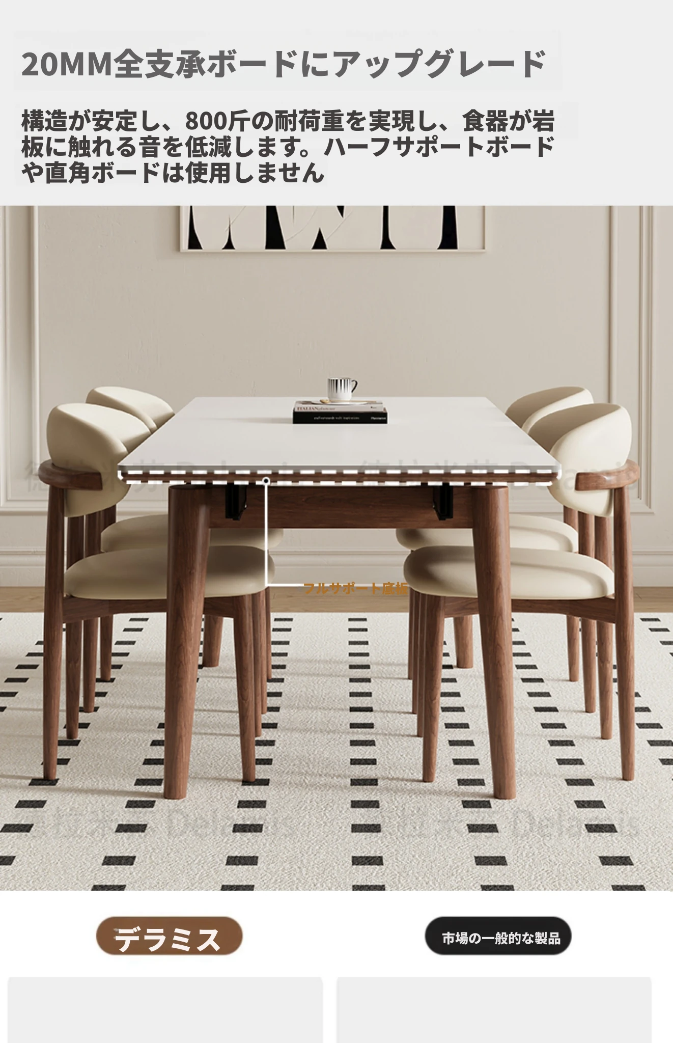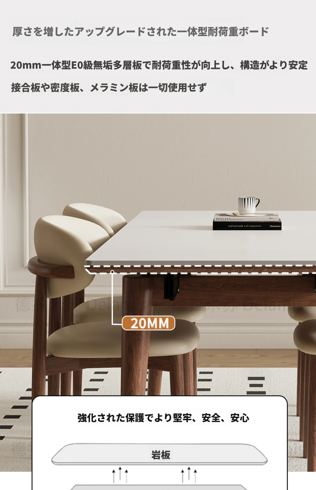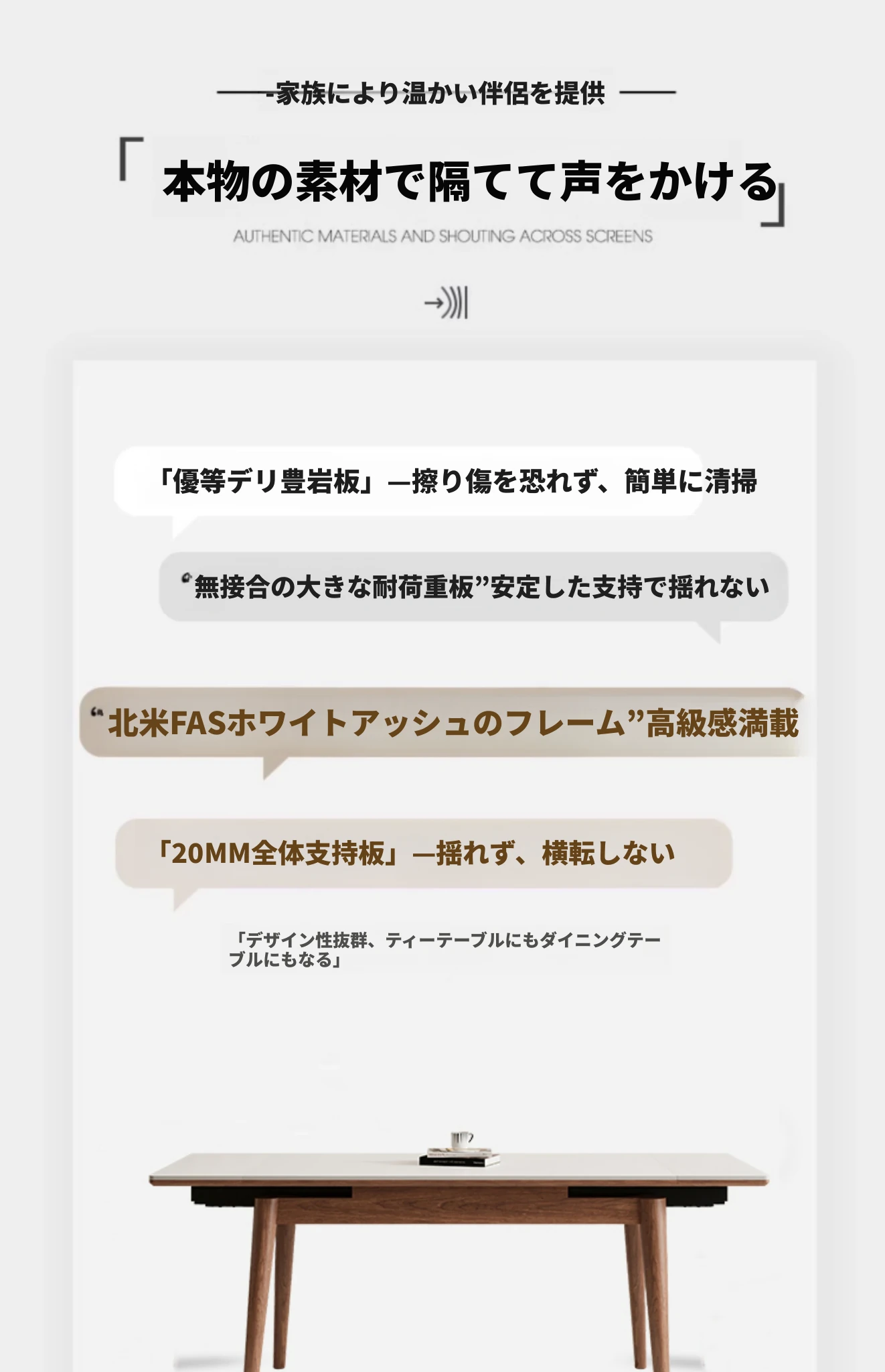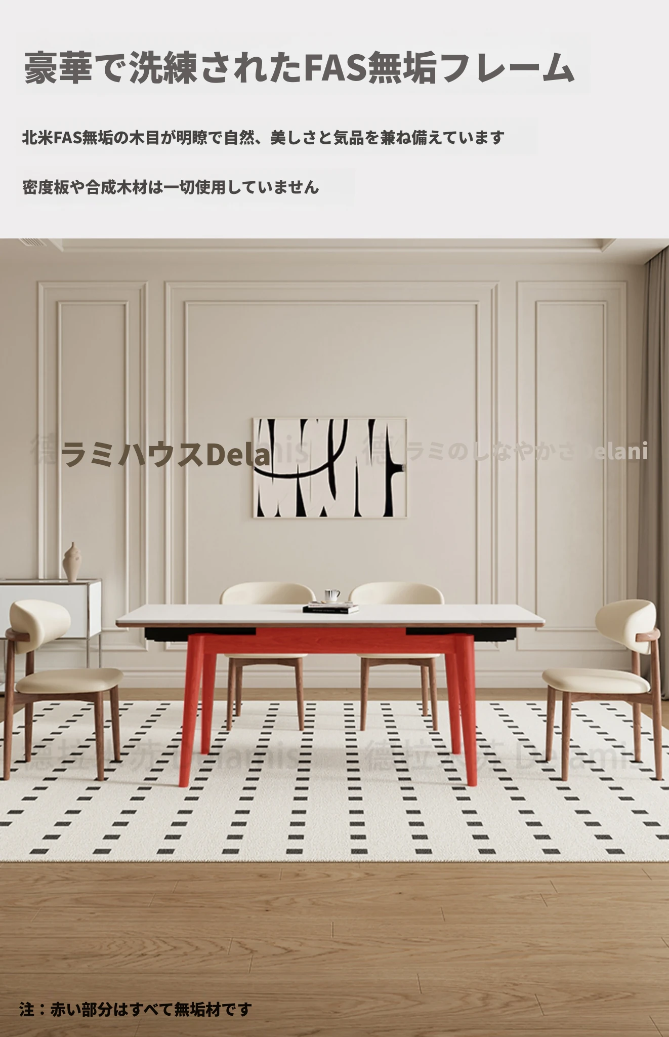 伸縮可能なデリフォン無垢材ロックプレートダイニングテーブル - 家庭向けの長方形クリーム色のミニマルなヴィンテージスタイル、小さなスペースでも快適にお食事を楽しめます!