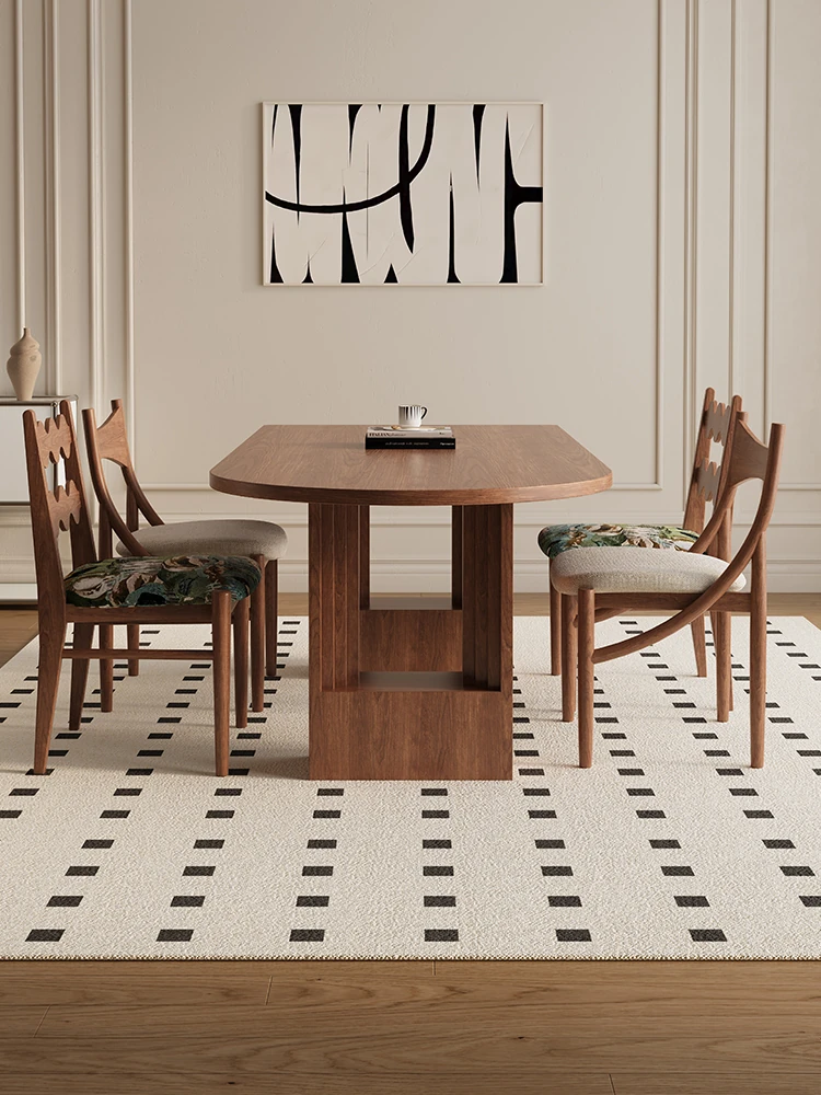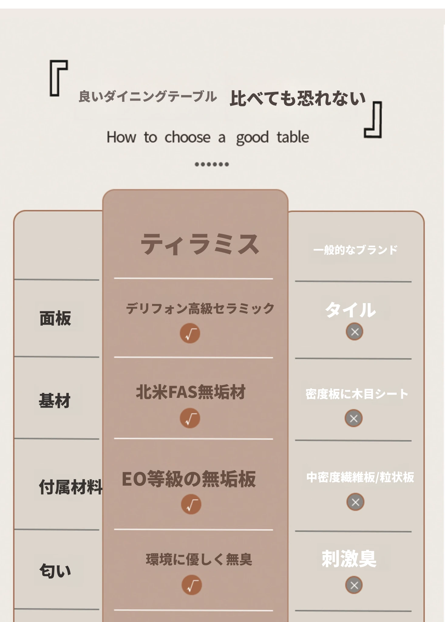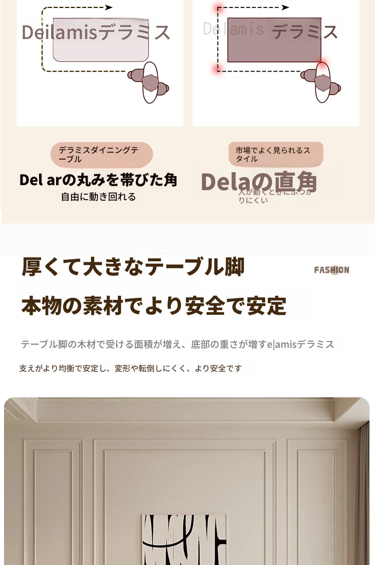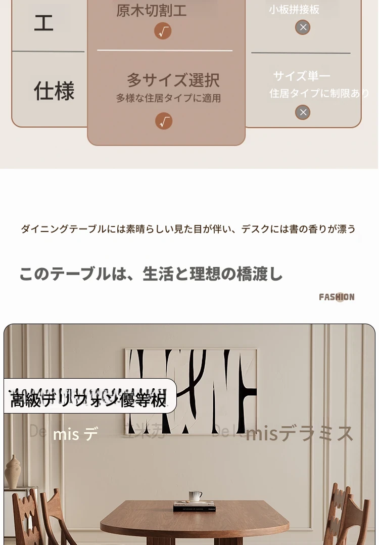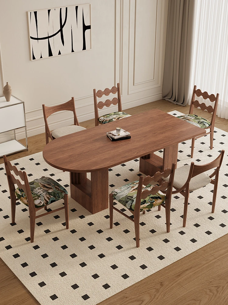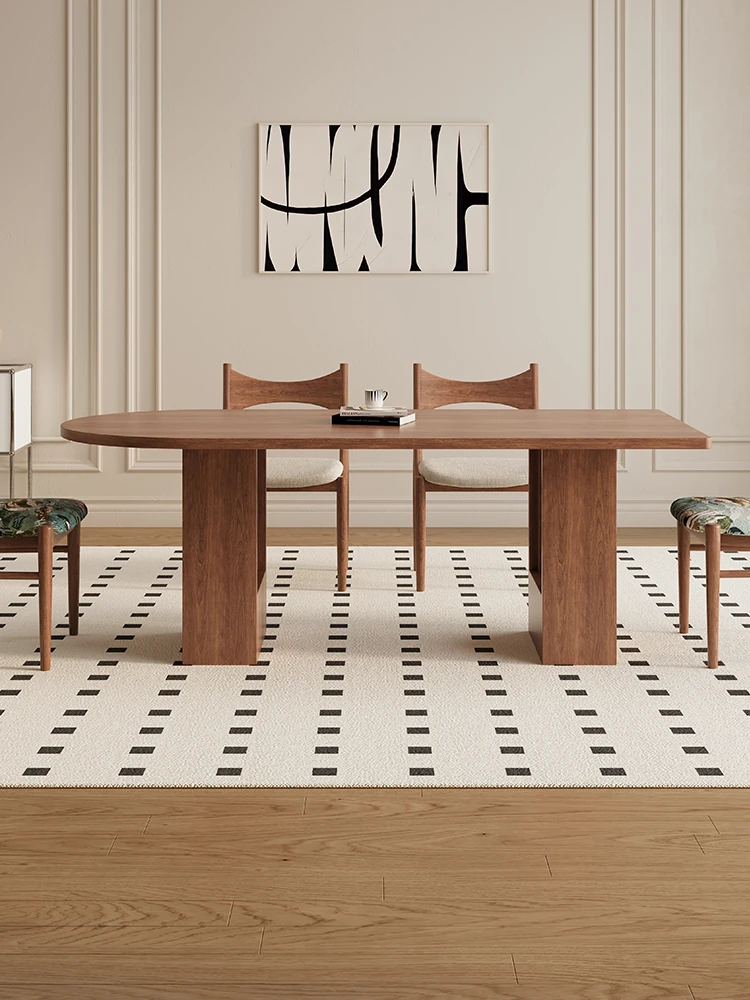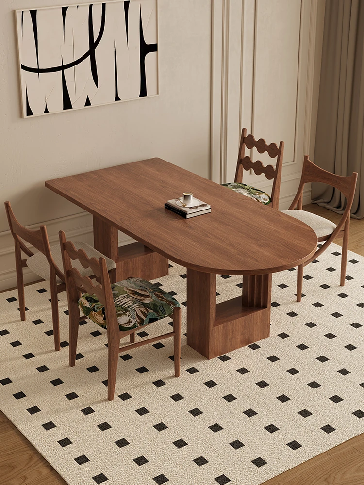 フレンチクリームスタイルの無垢材ダイニングテーブル - ナッツブラウンの長方形デザイン、コンパクトな小型住宅に最適!おしゃれで温かみのある食卓を演出します。
