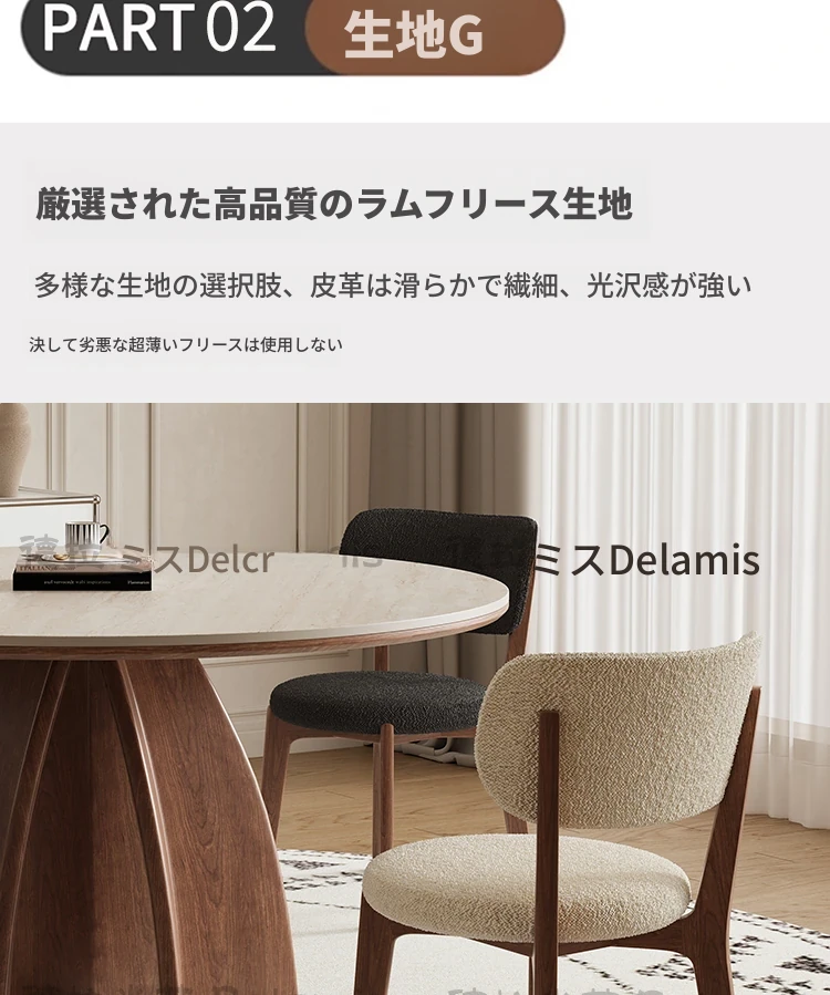 無垢材のダイニングチェア【肌触りの良いラムフリース】【2脚】