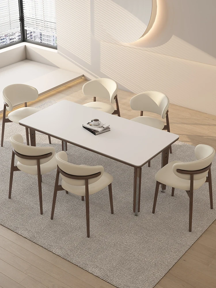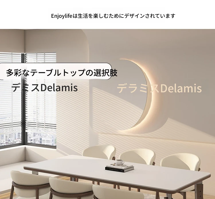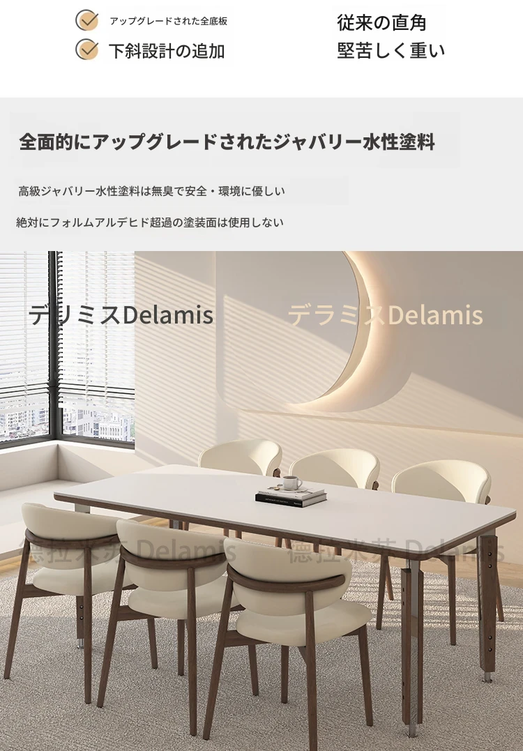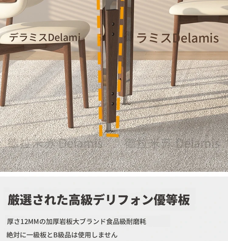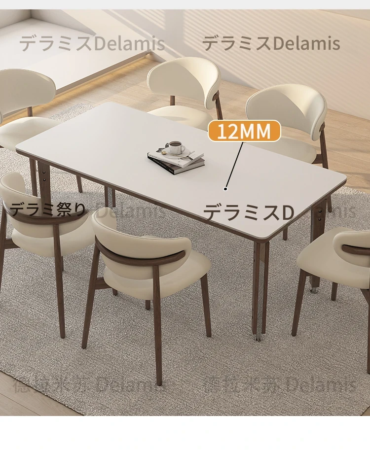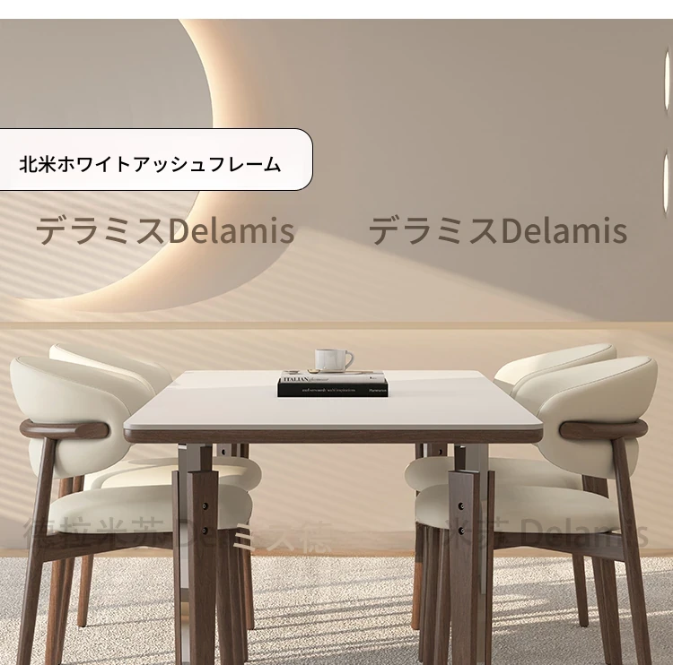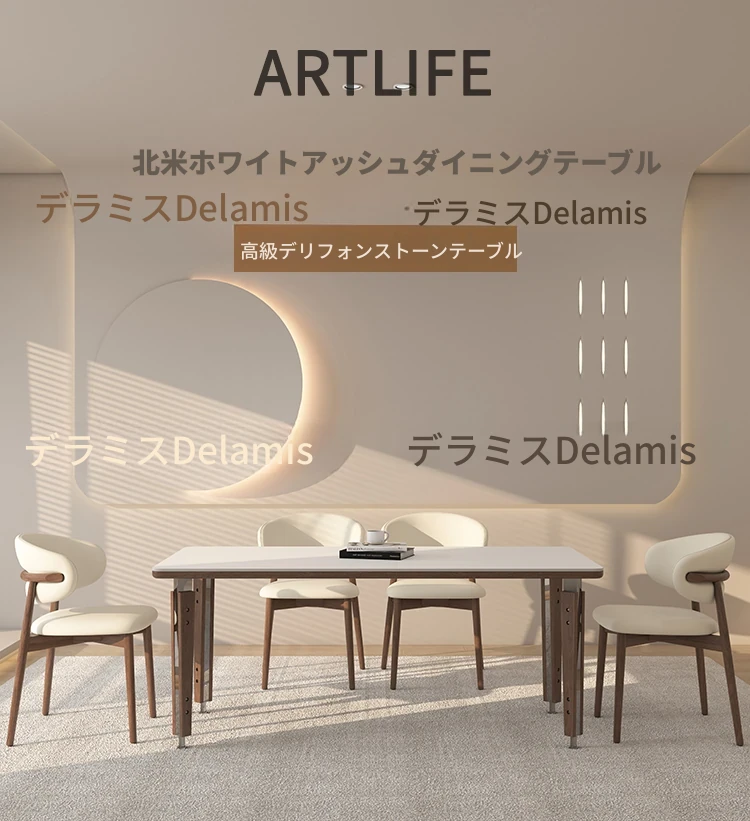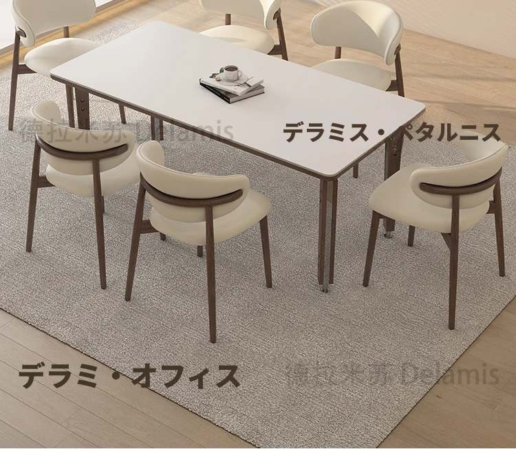 一卓八椅【デリフォン岩板+無垢材椅子】【無料倉庫保管】