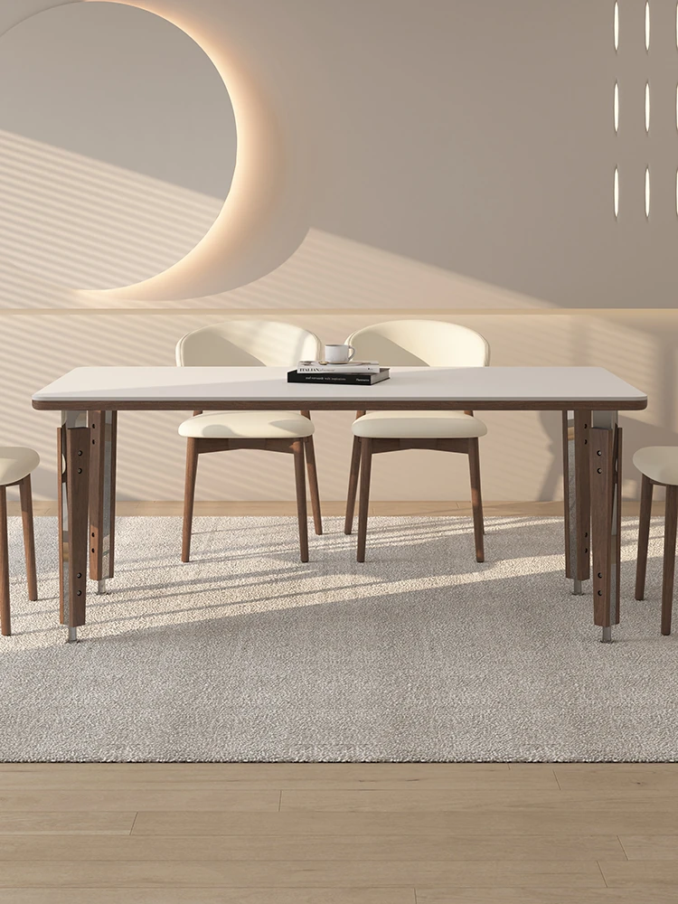 中古風デリフォン 無垢材ロックボードダイニングテーブル 小型住宅向け ホワイトアッシュ製 高級感あふれる長方形 食卓テーブル