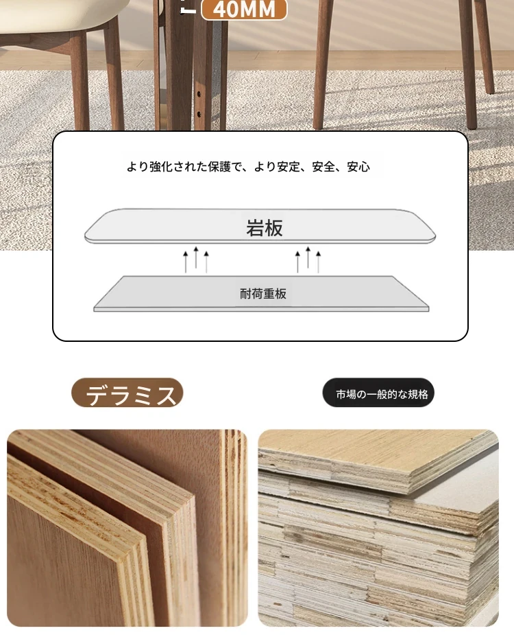 一卓四椅【デリフォン岩板+無垢材椅子】【保証五年】