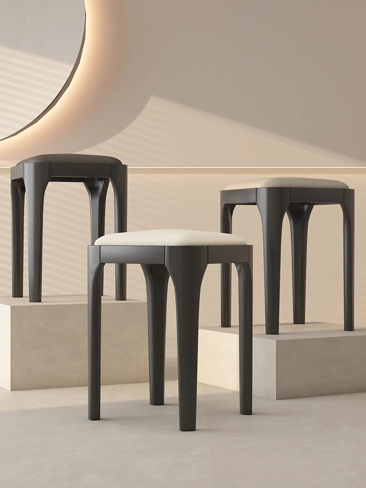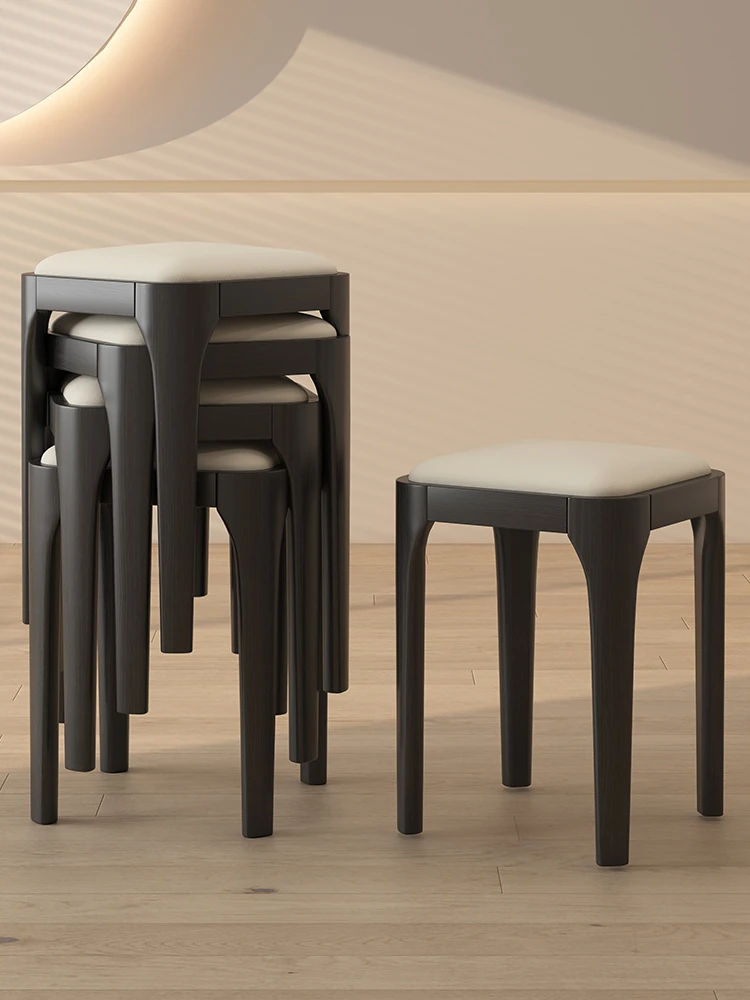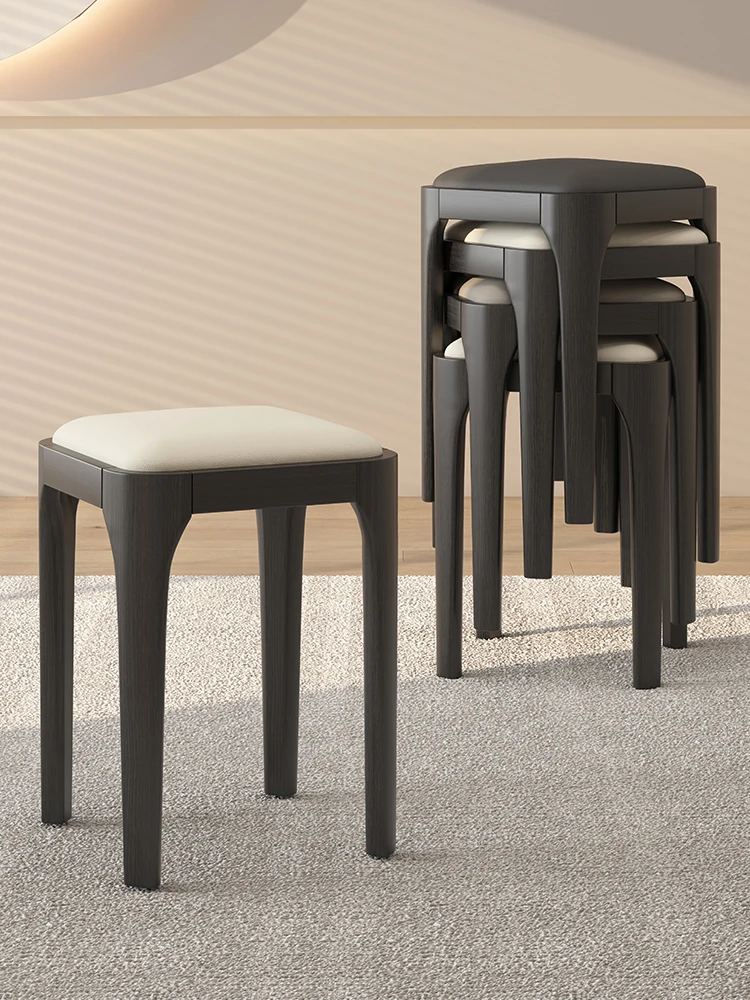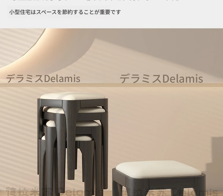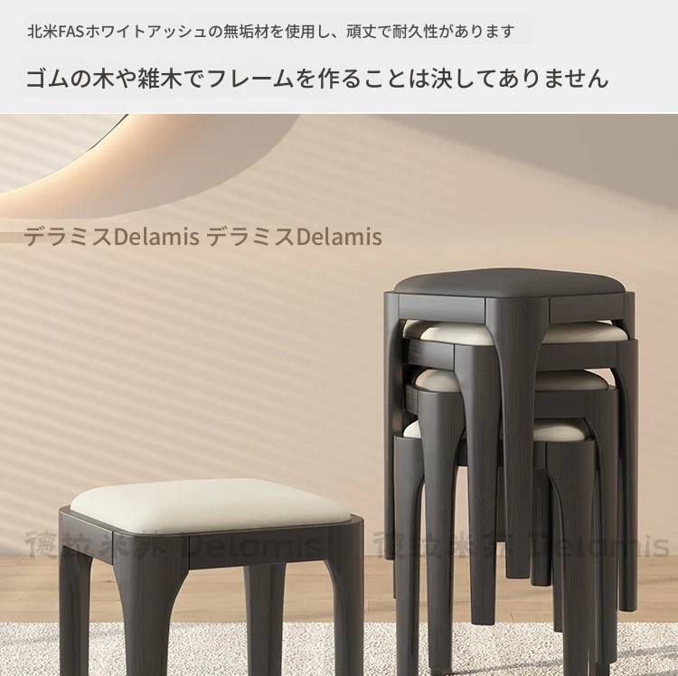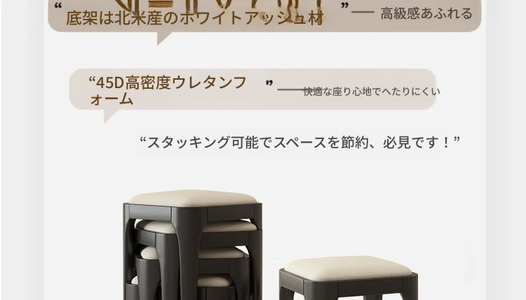 スタイリッシュな無垢材折りたたみスツール - 家庭用・省スペース!モダンでシンプルなデザイン、ダイニングテーブルやメイクアップ用にも最適!小型住宅にもぴったりな高脚スクエアスツール。