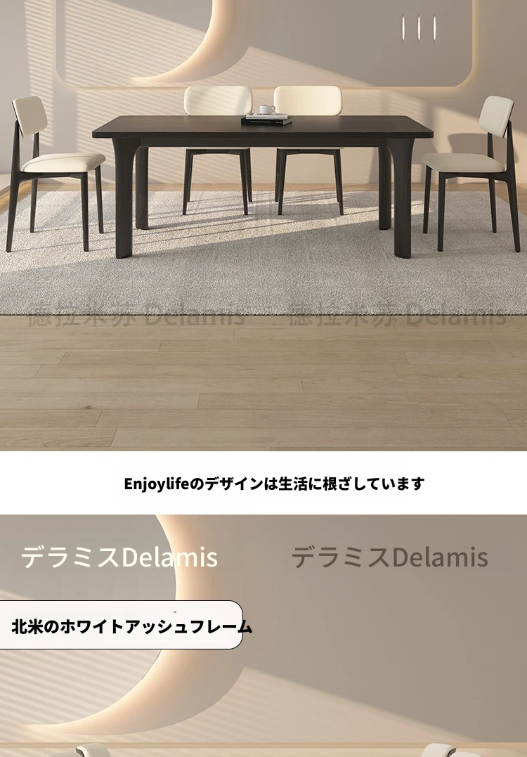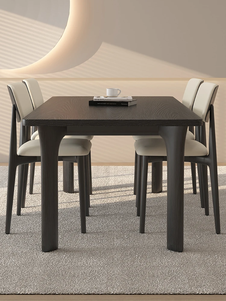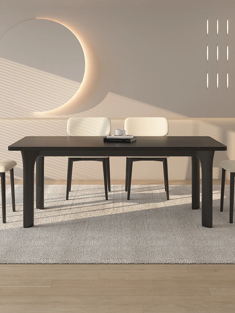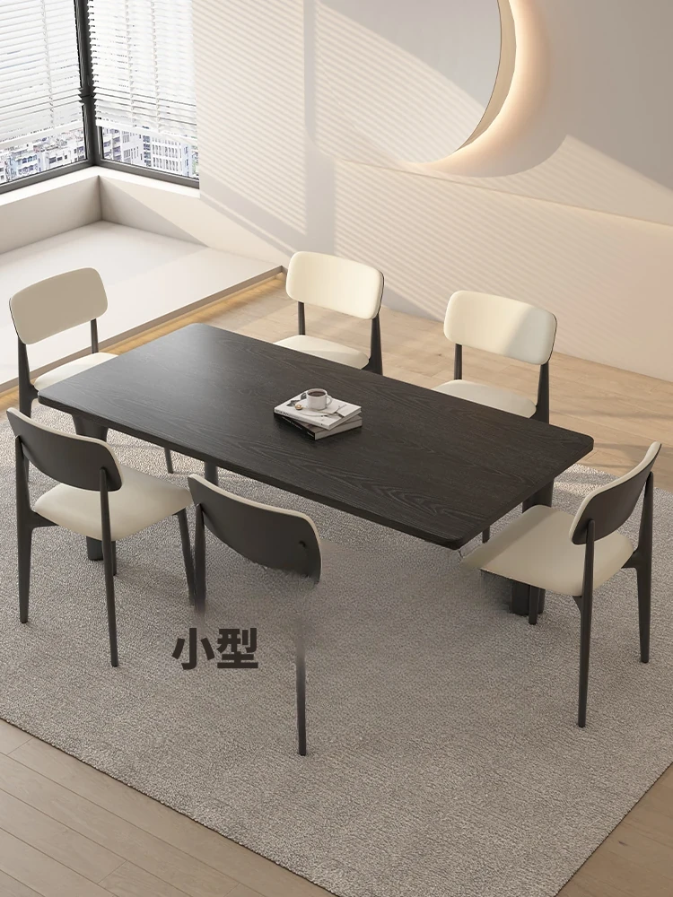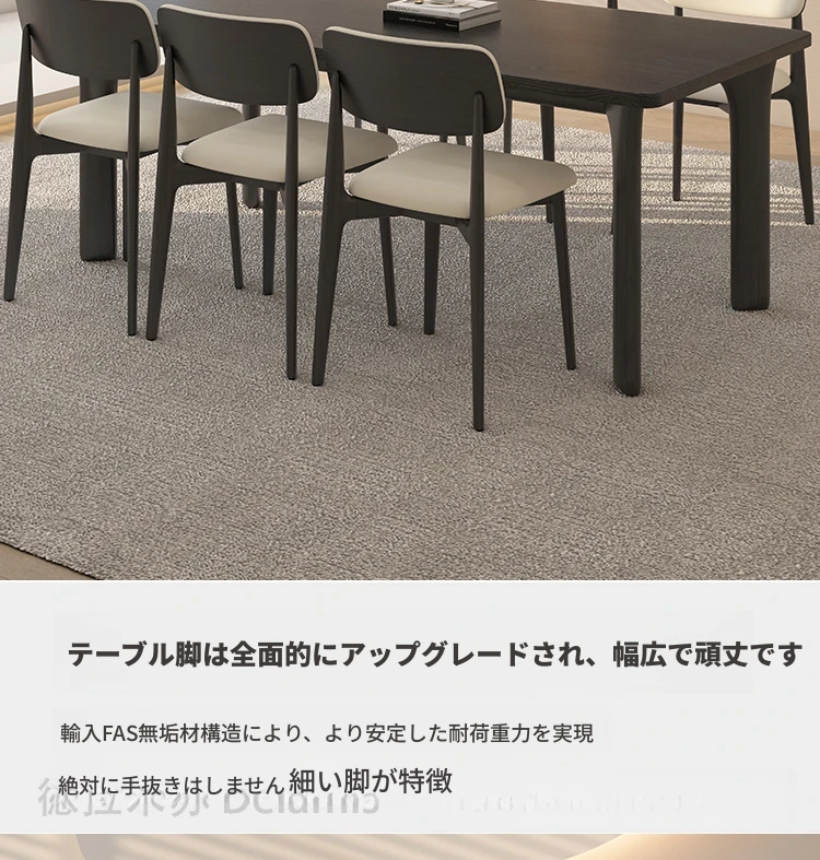 高級感漂う白蜡木製全実木ダイニングテーブル!省スペースでおしゃれな小戸型向け、黒の侘寂スタイルの長方形デザイン。天然木の温もりを感じる、上質な食卓をお楽しみください。