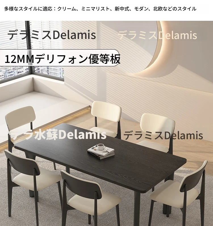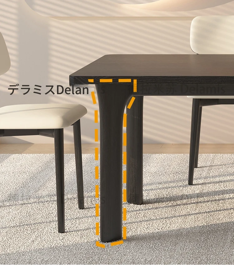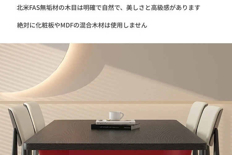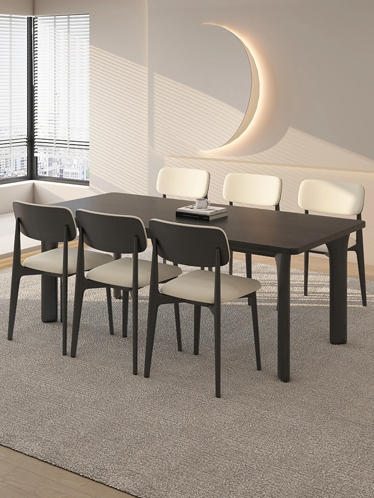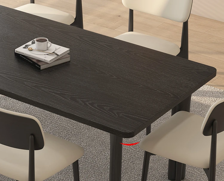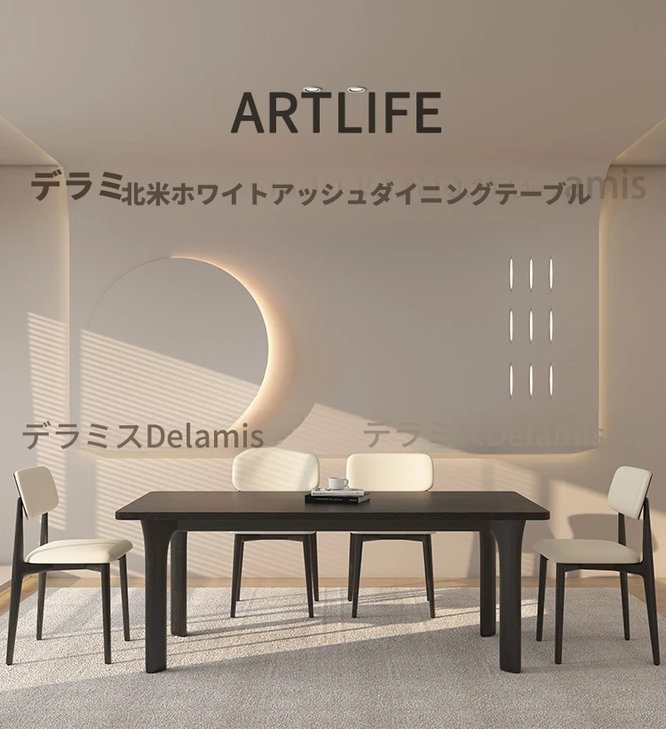 高級感漂う白蜡木製全実木ダイニングテーブル!省スペースでおしゃれな小戸型向け、黒の侘寂スタイルの長方形デザイン。天然木の温もりを感じる、上質な食卓をお楽しみください。