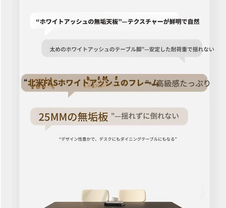 1.4*0.8メートル【北米ホワイトアッシュ材ダイニングテーブル】+無垢材ダイニングチェア*2