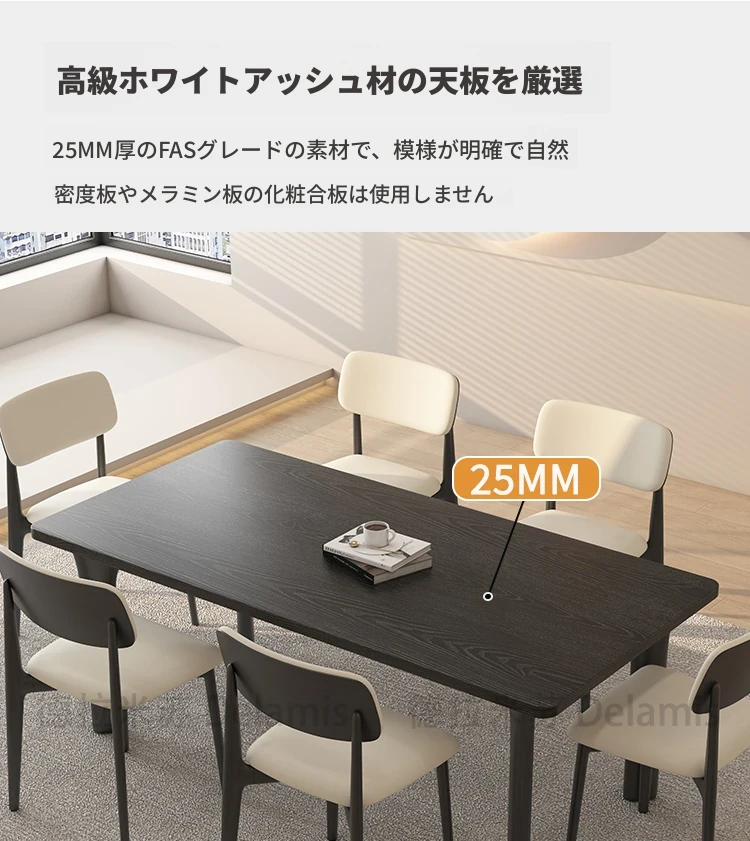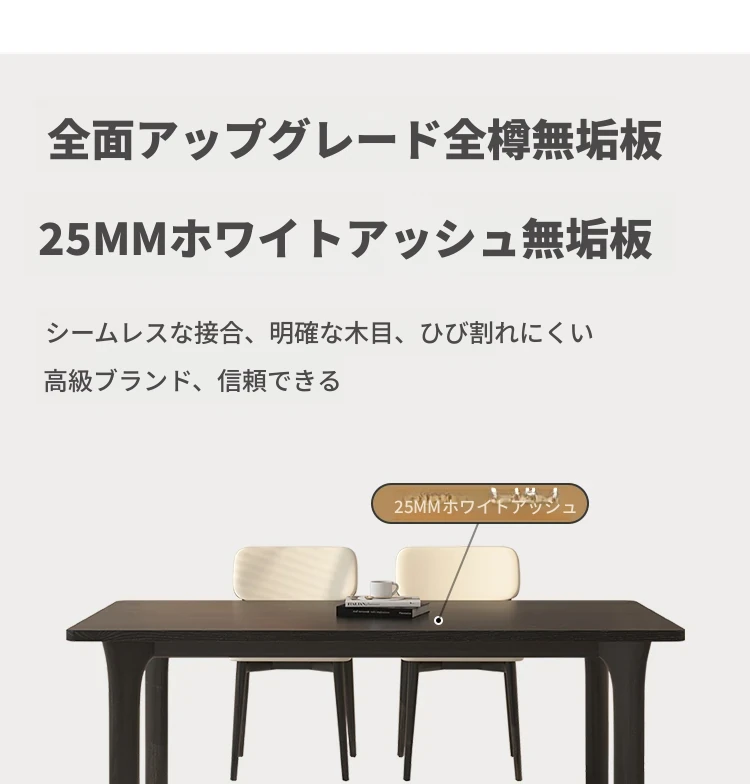 1.8*0.8メートル【北米ホワイトアッシュ材ダイニングテーブル】+無垢材ダイニングチェア*6