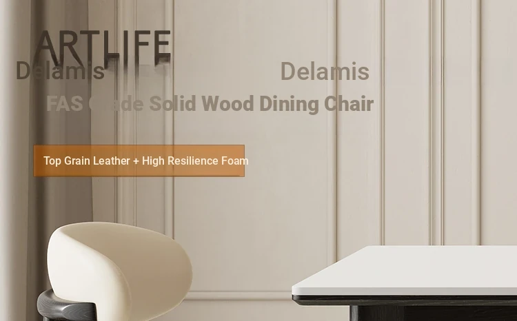 Premium French Vintage Style Solid Wood Dining Chair - High-End Real Leather Backrest - Crafted from North American Ash, Perfect for Home Use and Relaxation