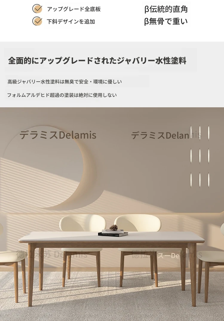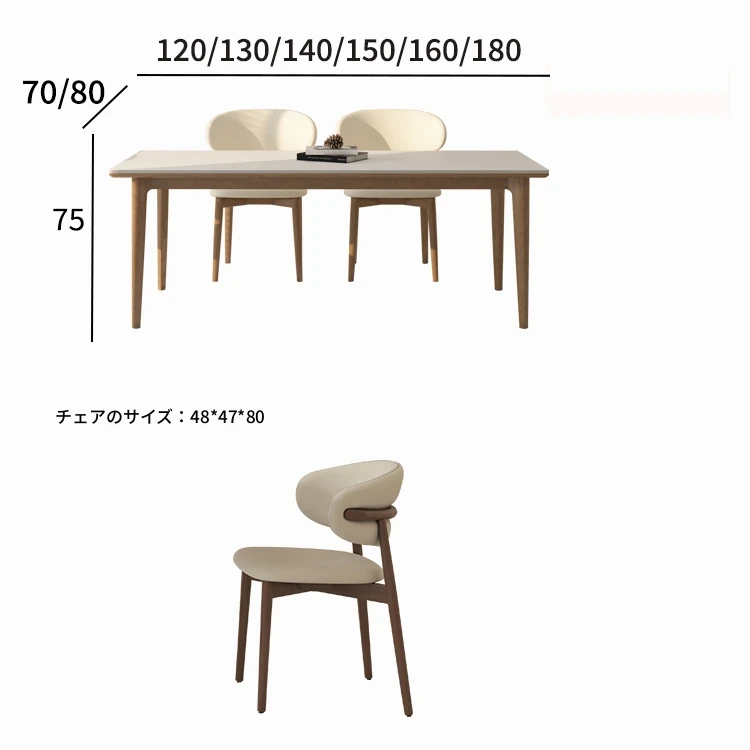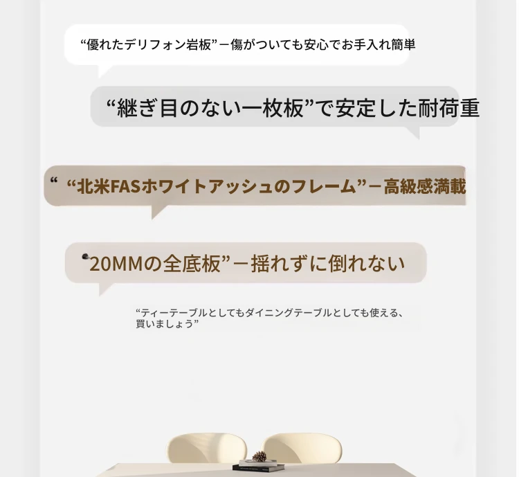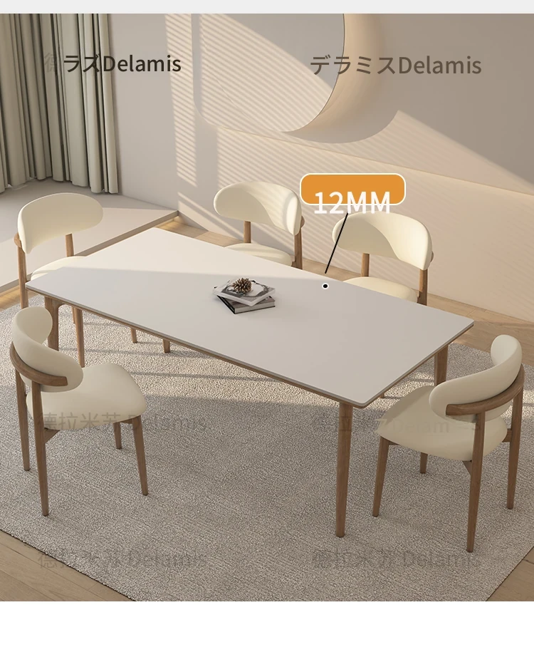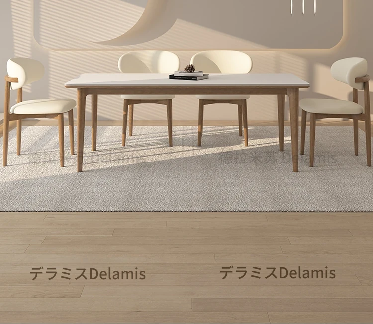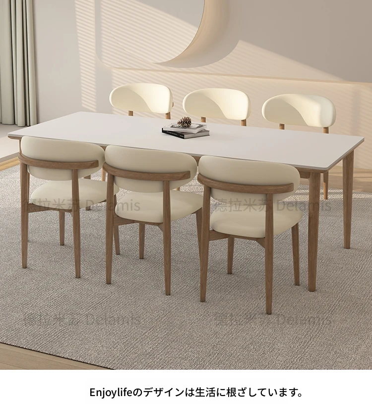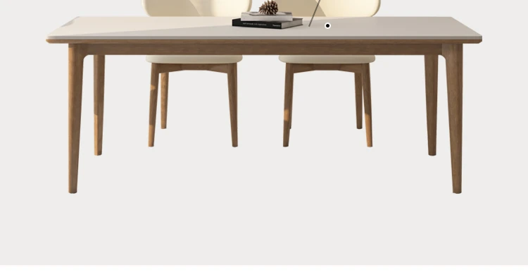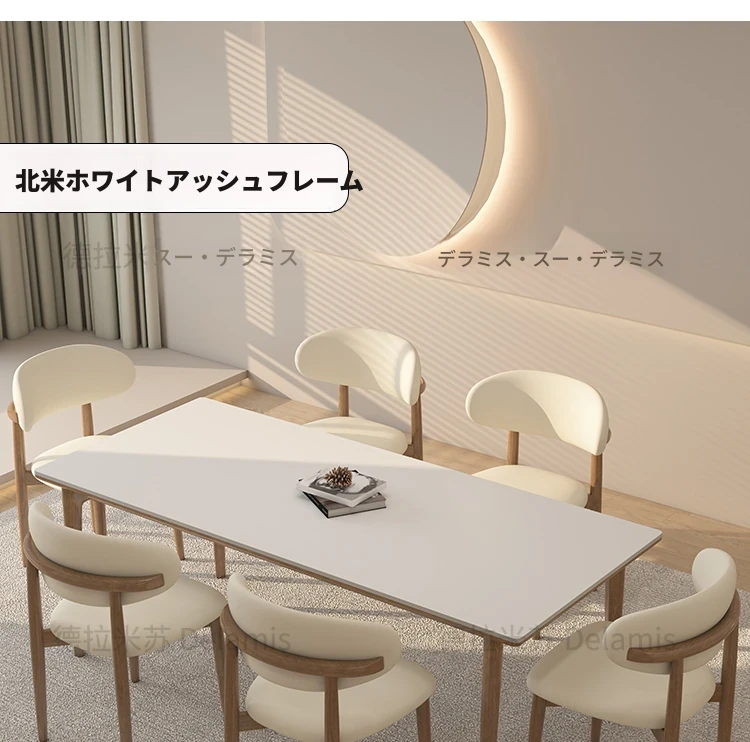 北米ホワイトアッシュ無垢材ロックボードダイニングテーブル|シンプルで高級感溢れるクリーム色デザイン|小スペースにぴったりな長方形の天然木テーブル