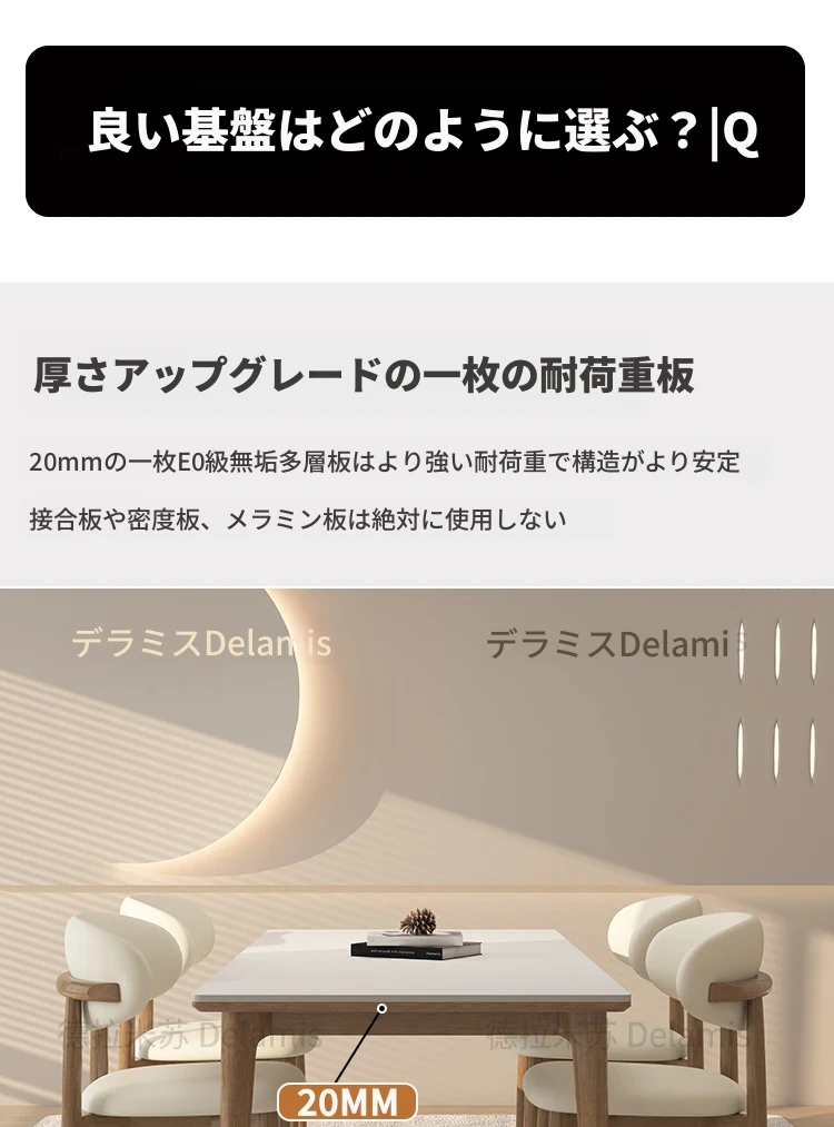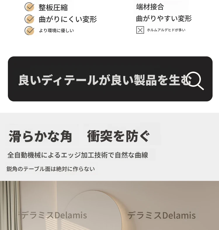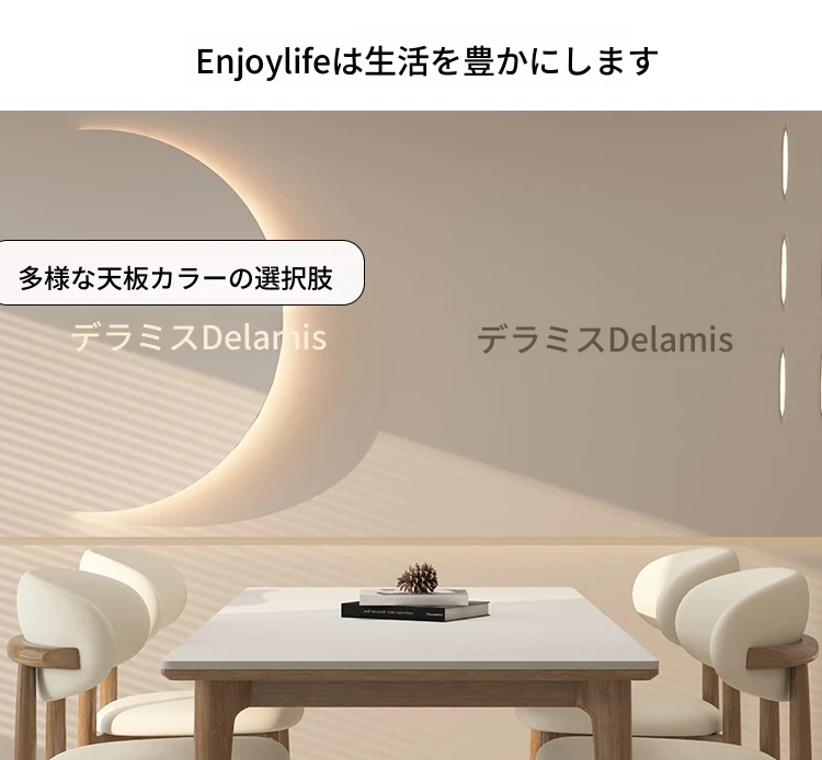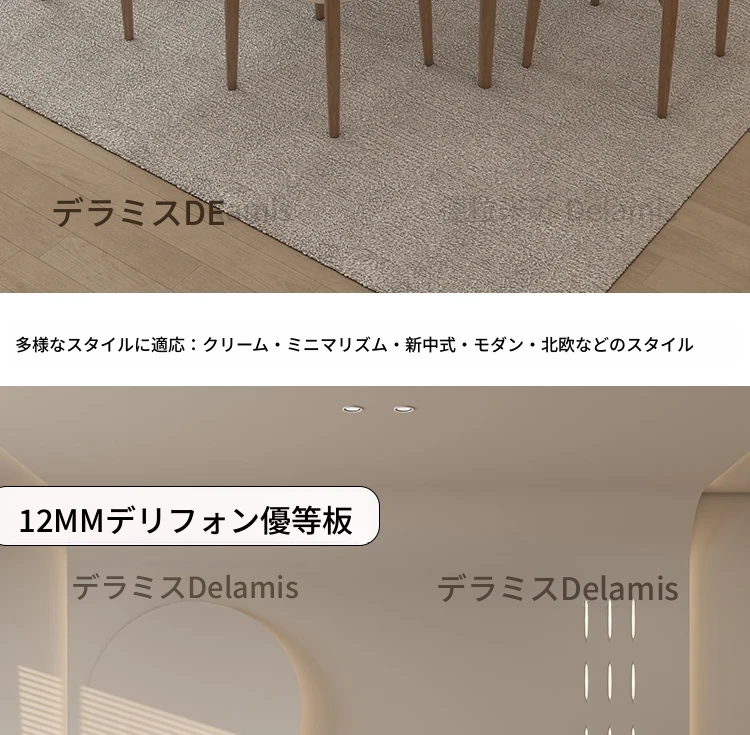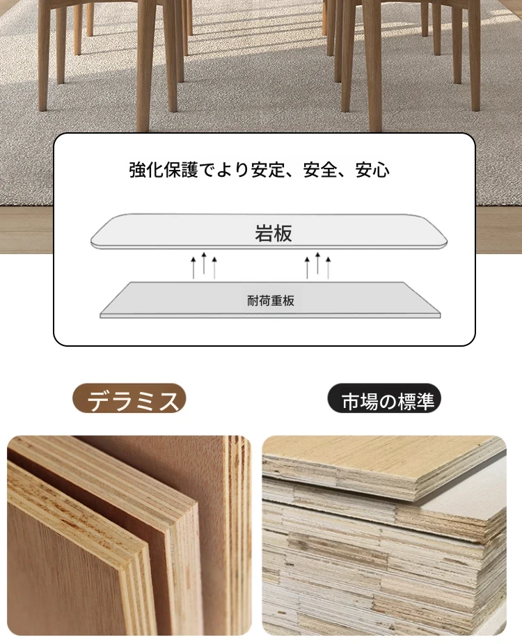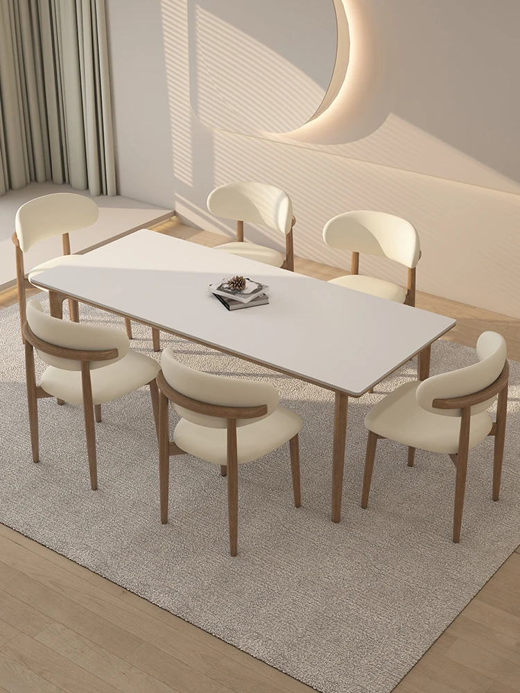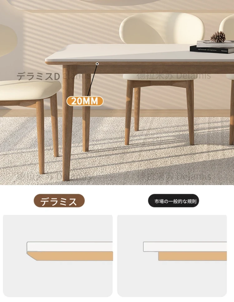北米ホワイトアッシュ無垢材ロックボードダイニングテーブル|シンプルで高級感溢れるクリーム色デザイン|小スペースにぴったりな長方形の天然木テーブル