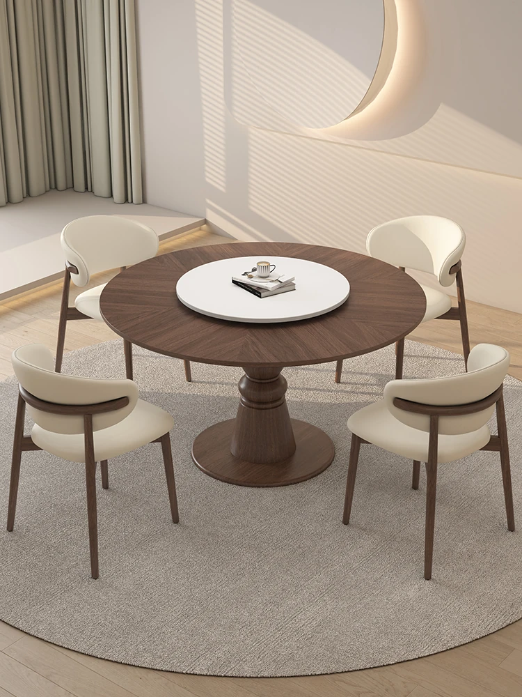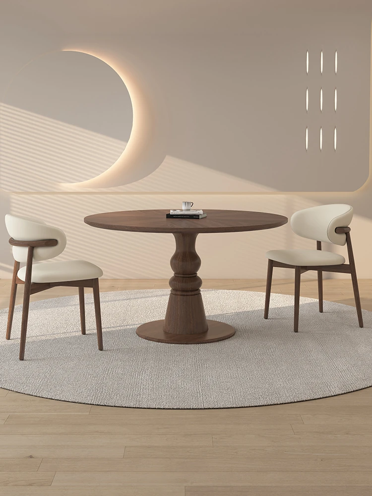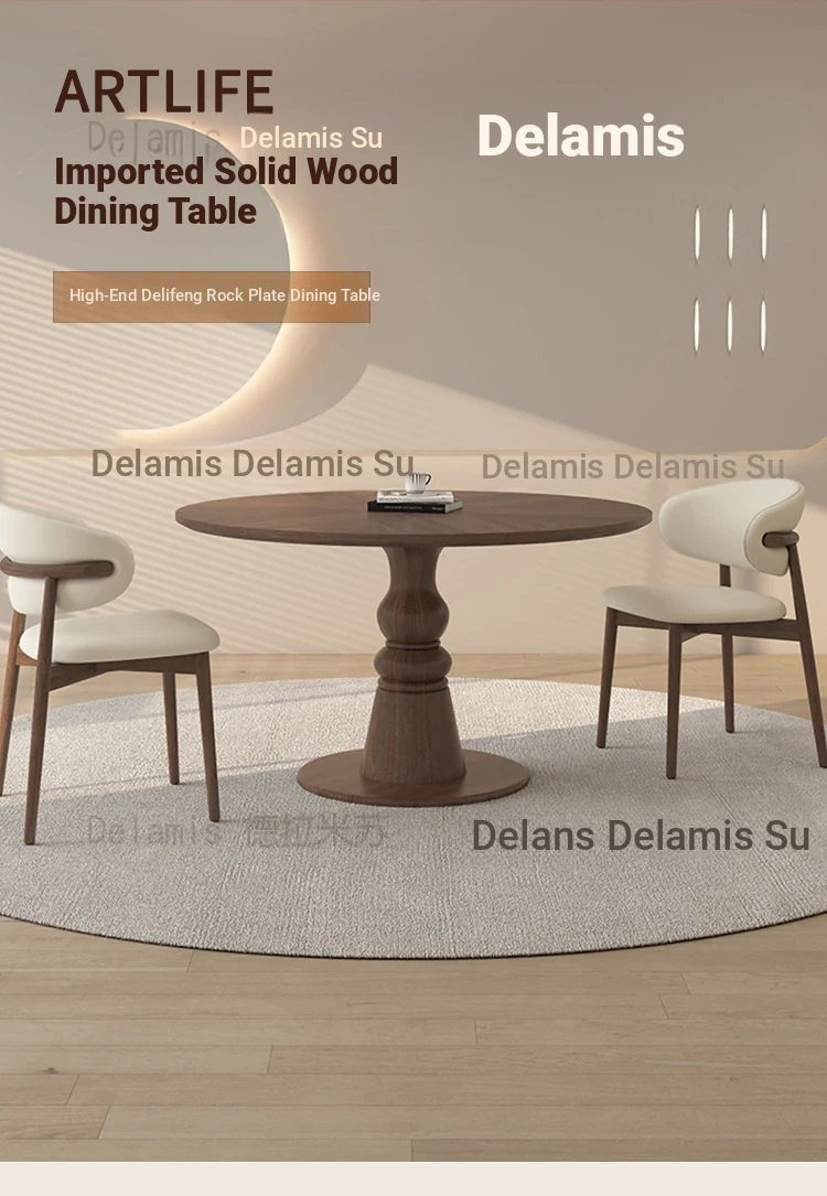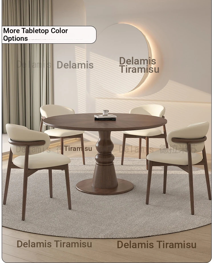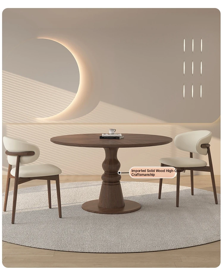 Premium Solid Wood Round Dining Table - Creamy Walnut Finish, Vintage Style, Perfect for Small Spaces, Elegant and Stylish Design for Home Use