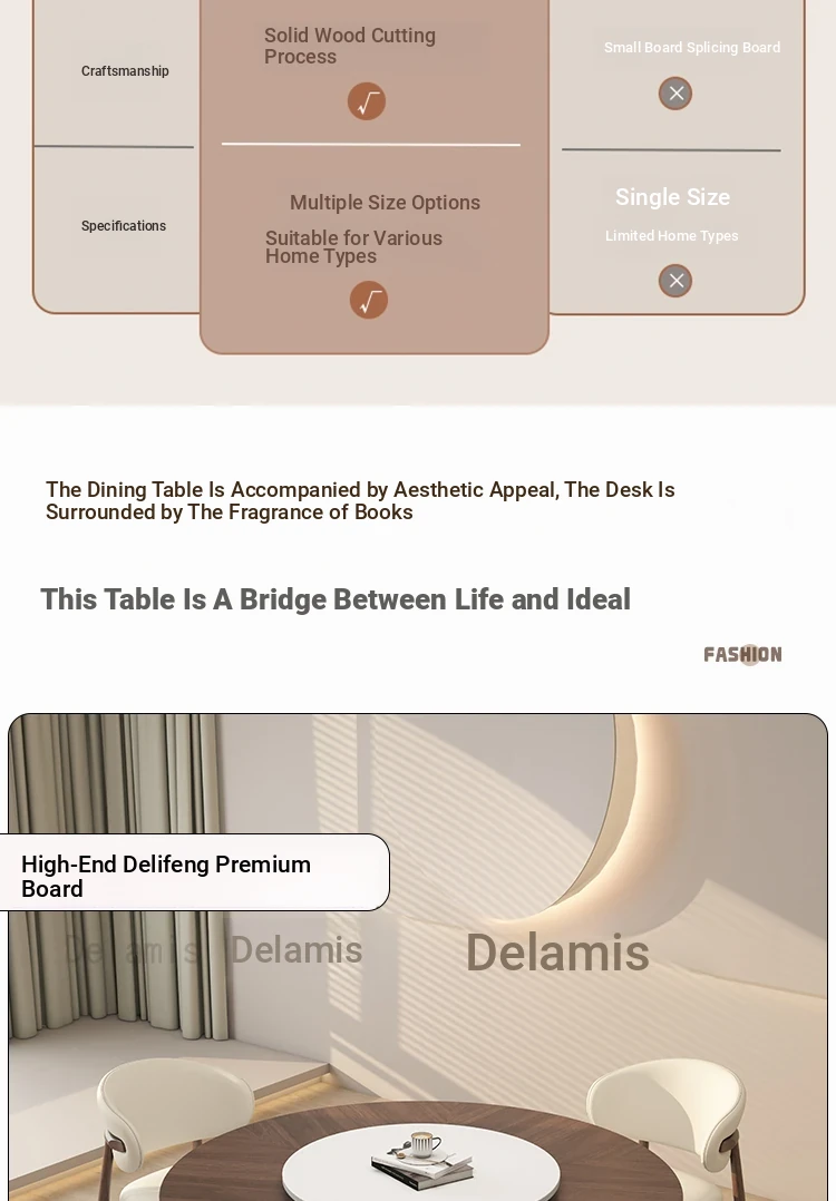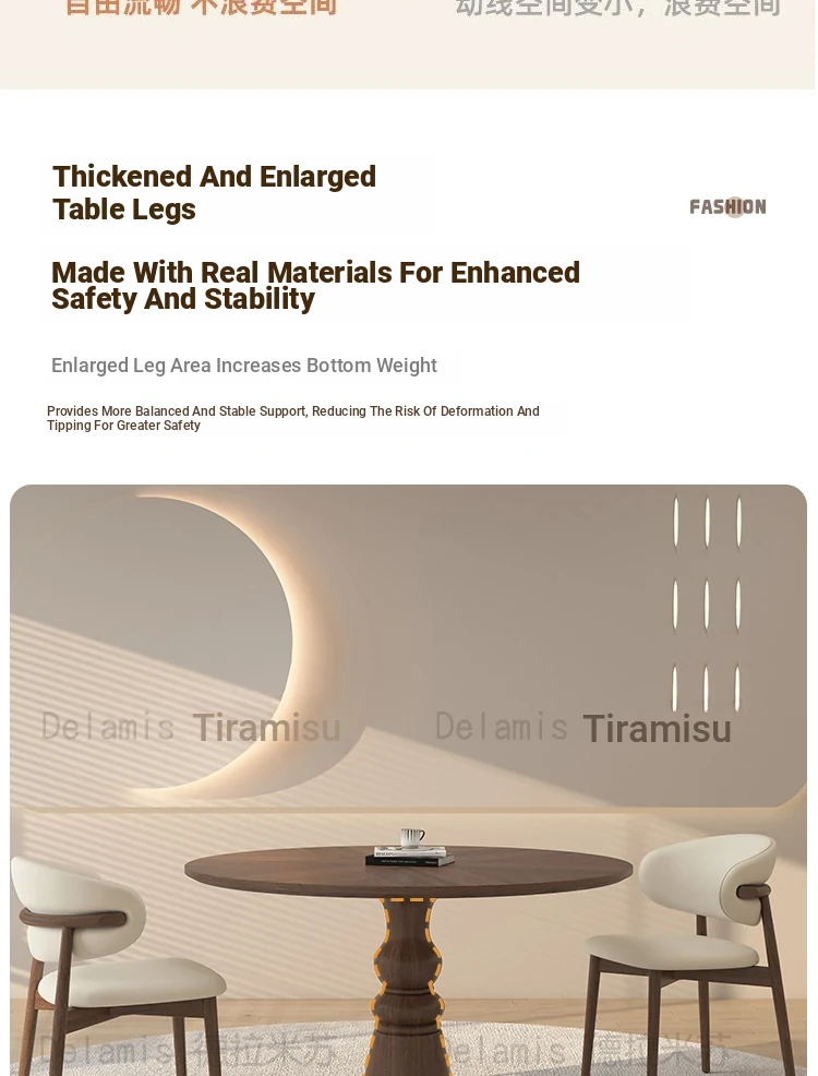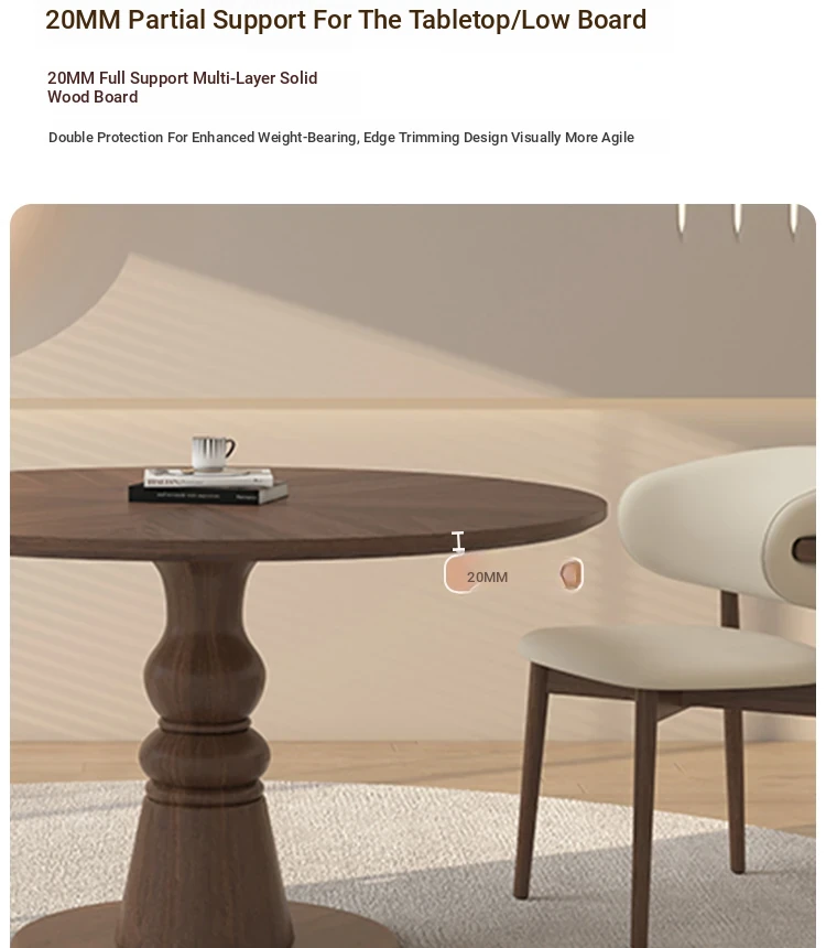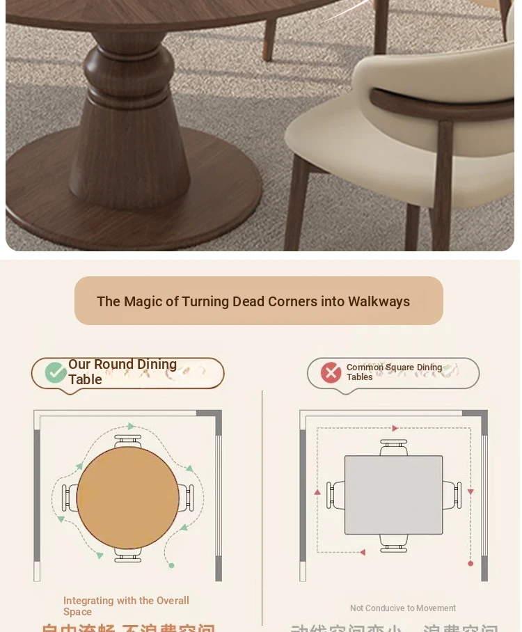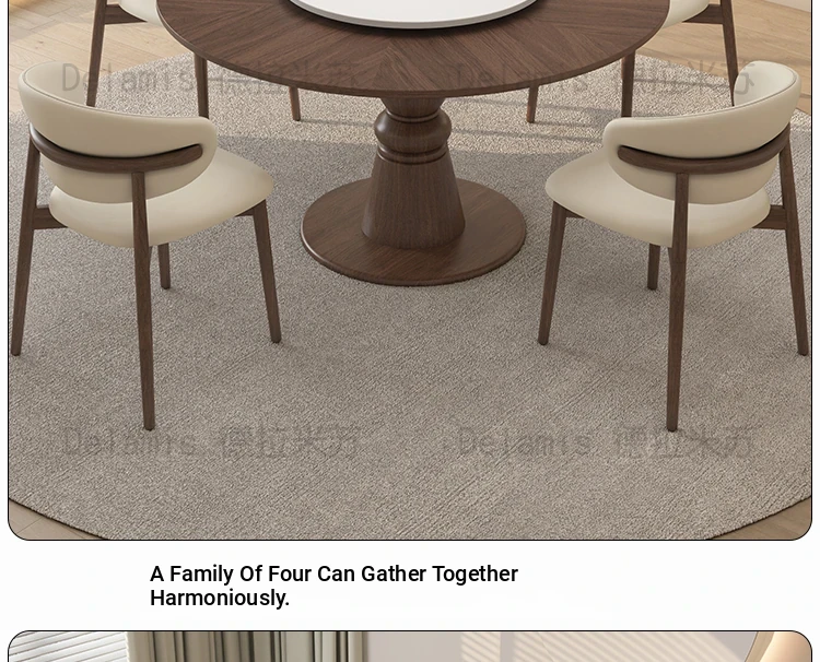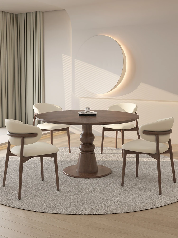 Premium Solid Wood Round Dining Table - Creamy Walnut Finish, Vintage Style, Perfect for Small Spaces, Elegant and Stylish Design for Home Use