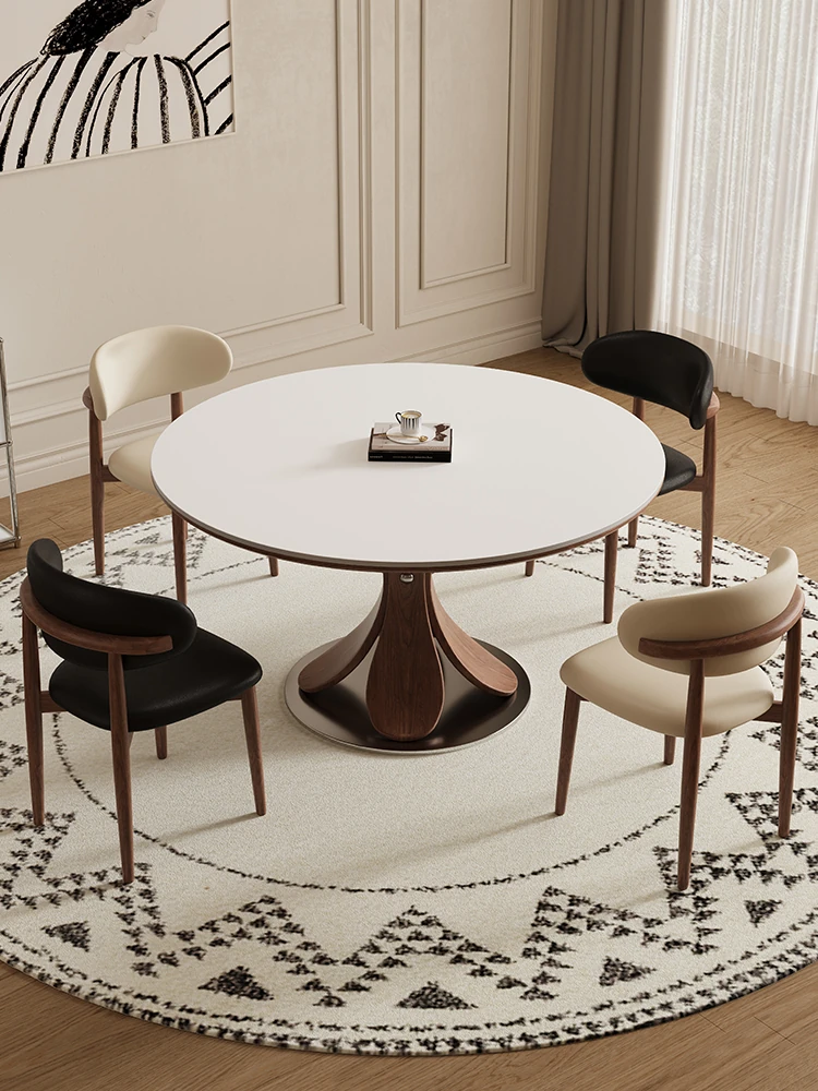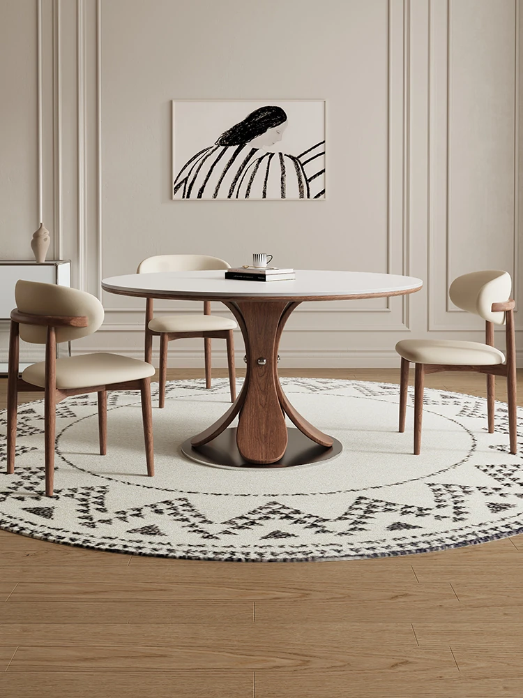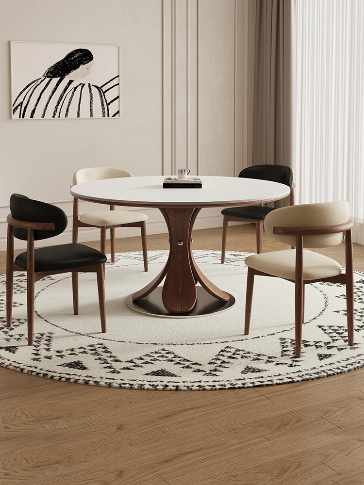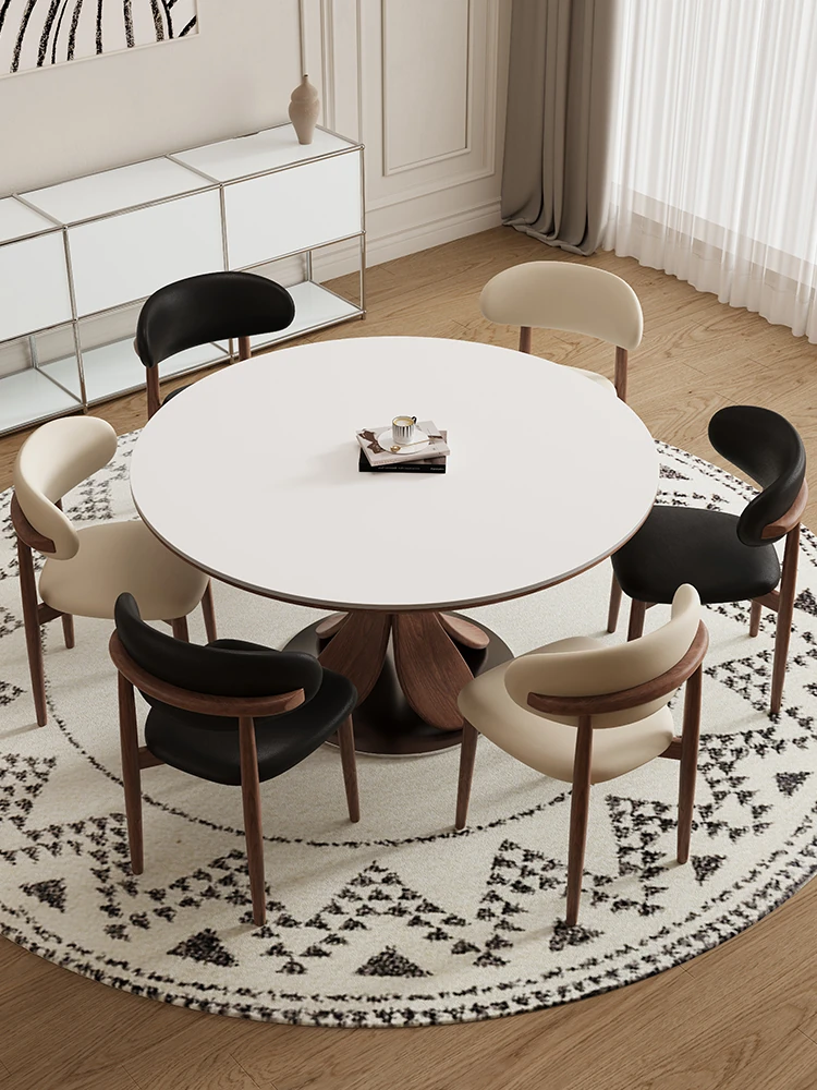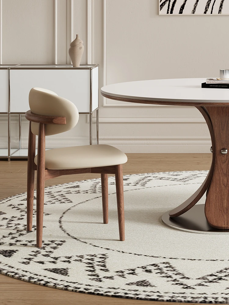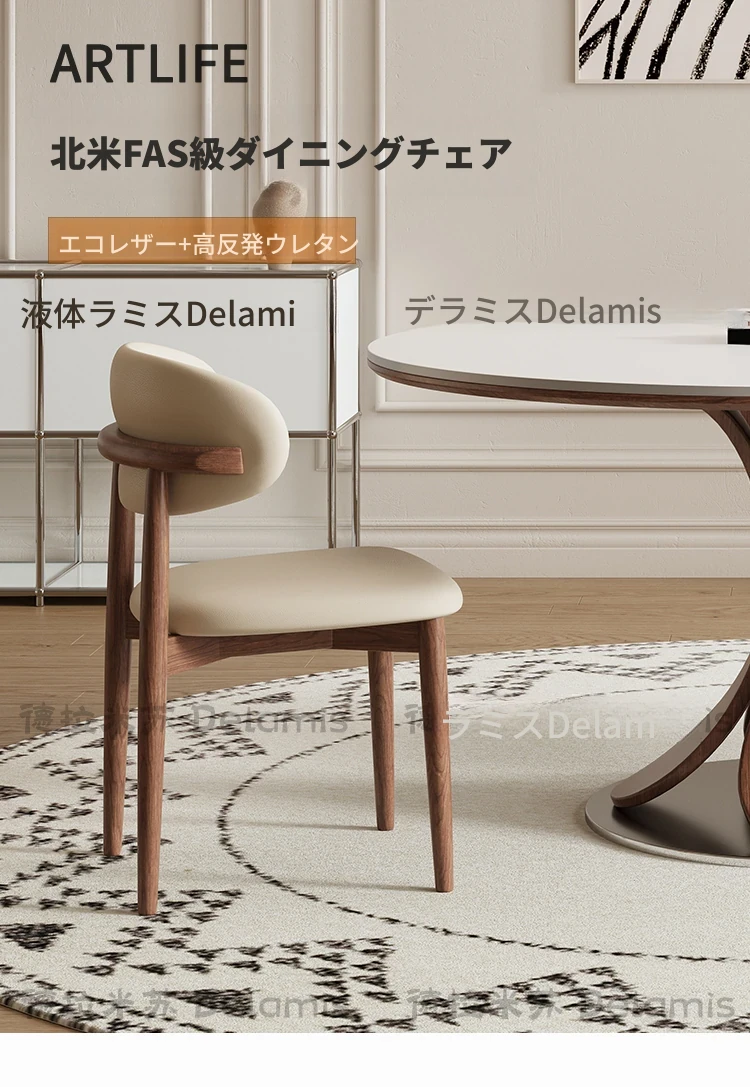 高級感漂う無垢材のダイニングチェア|クリーム色の新中式デザイン|小型住宅に最適なリラックスチェア|天然木の背もたれで心地よい座り心地を実現!
