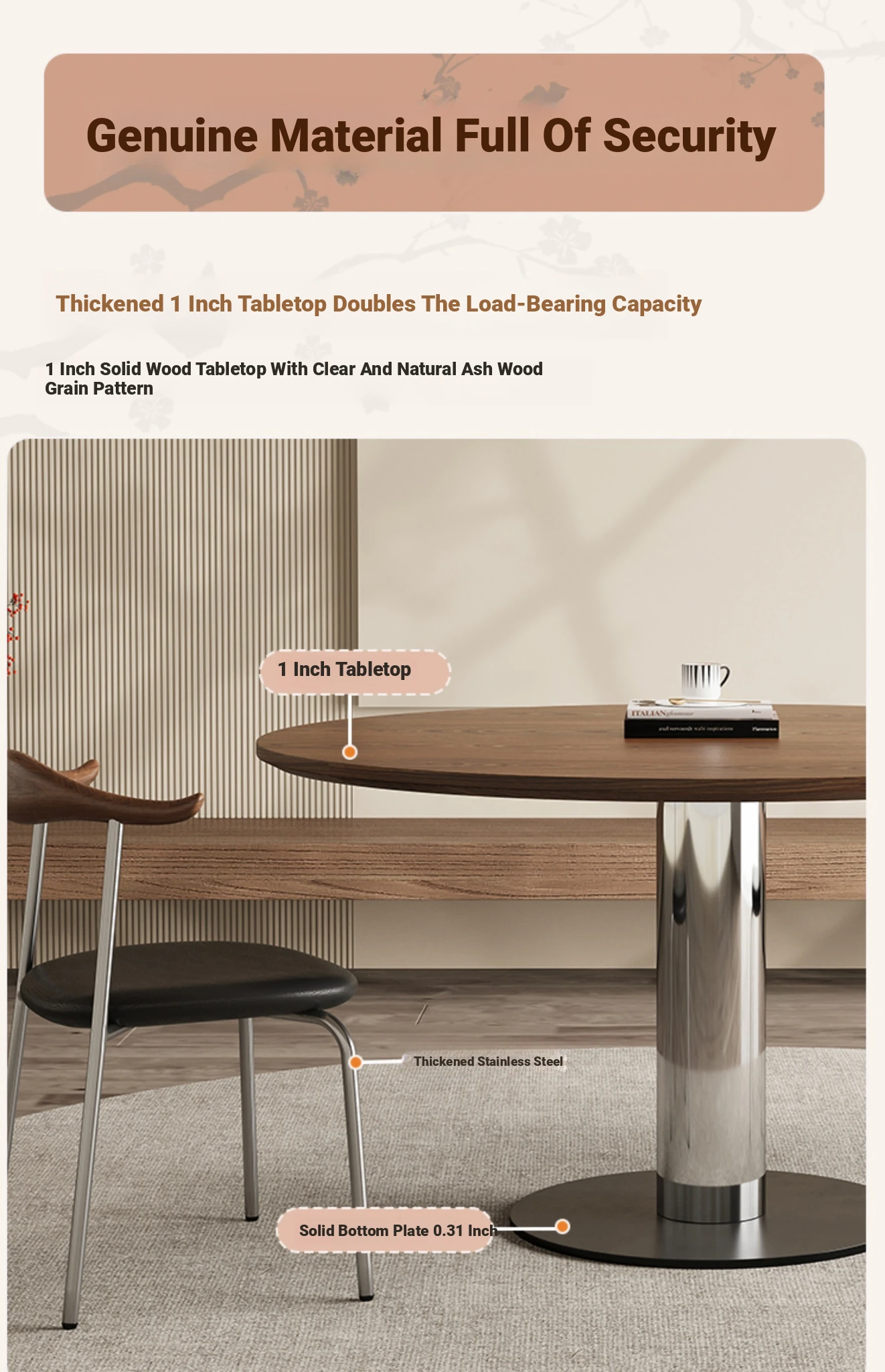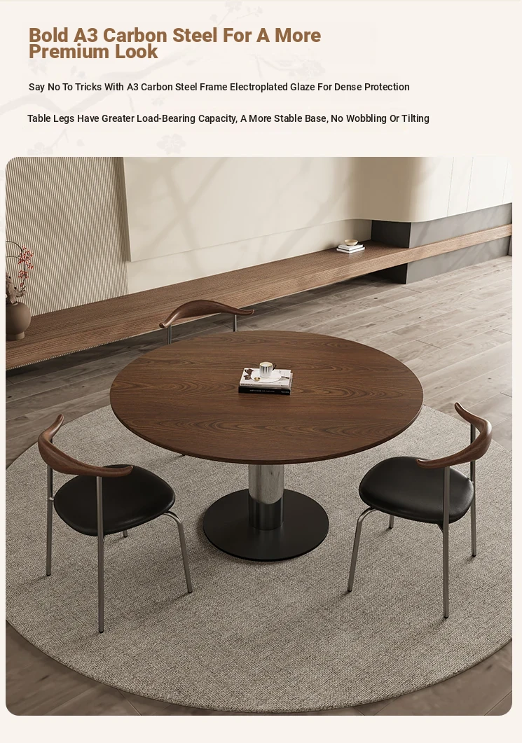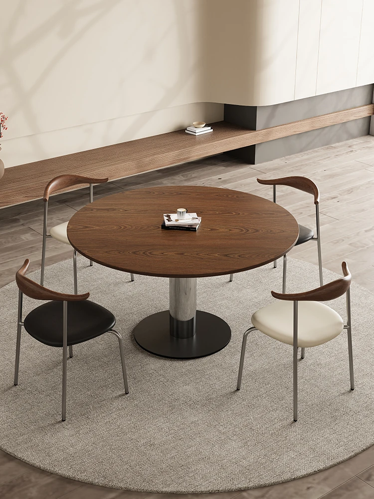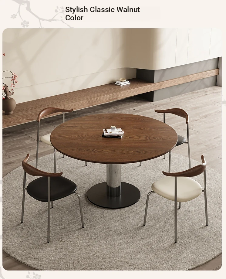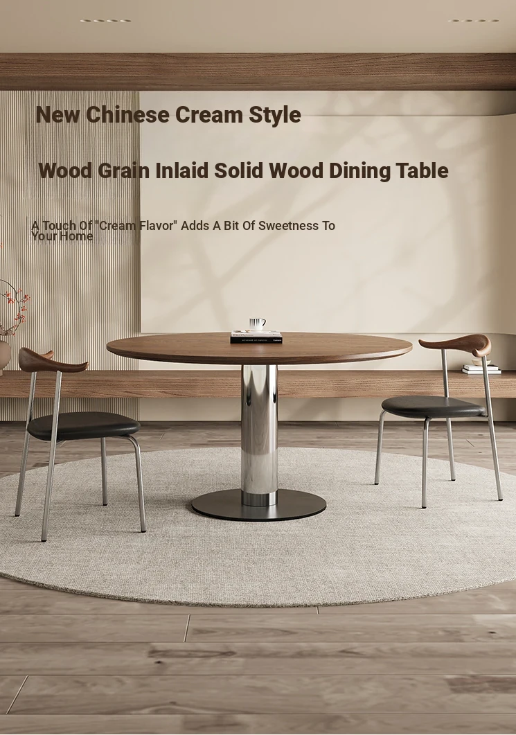 Vintage Solid Wood Round Dining Table for Small Spaces – Creamy Walnut Finish, Perfect for Cozy Homes and Stylish Dining Experience