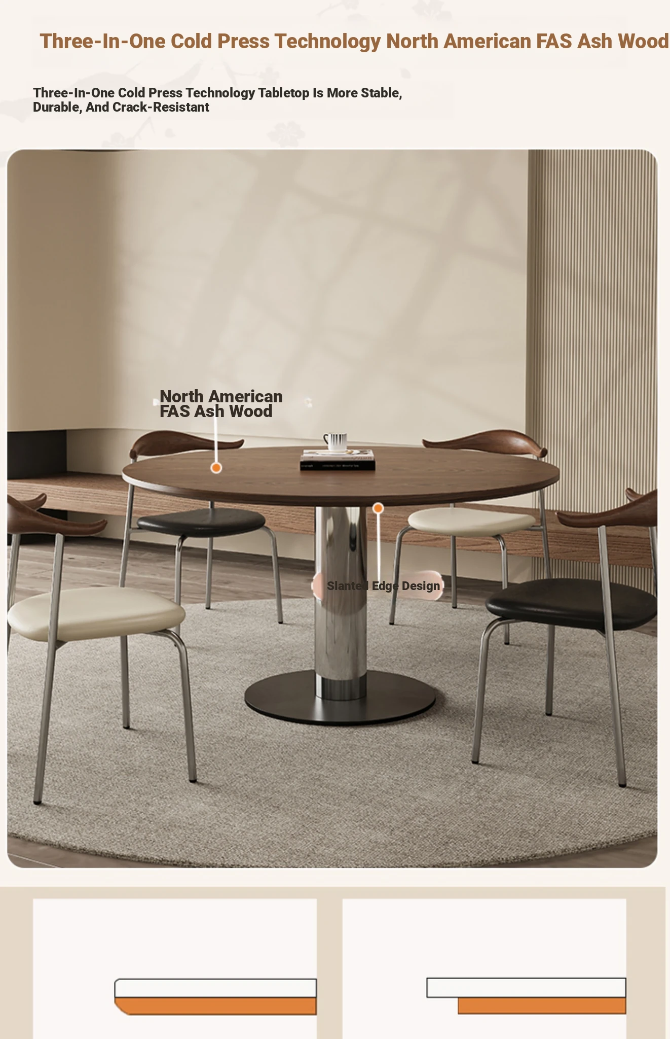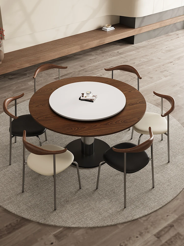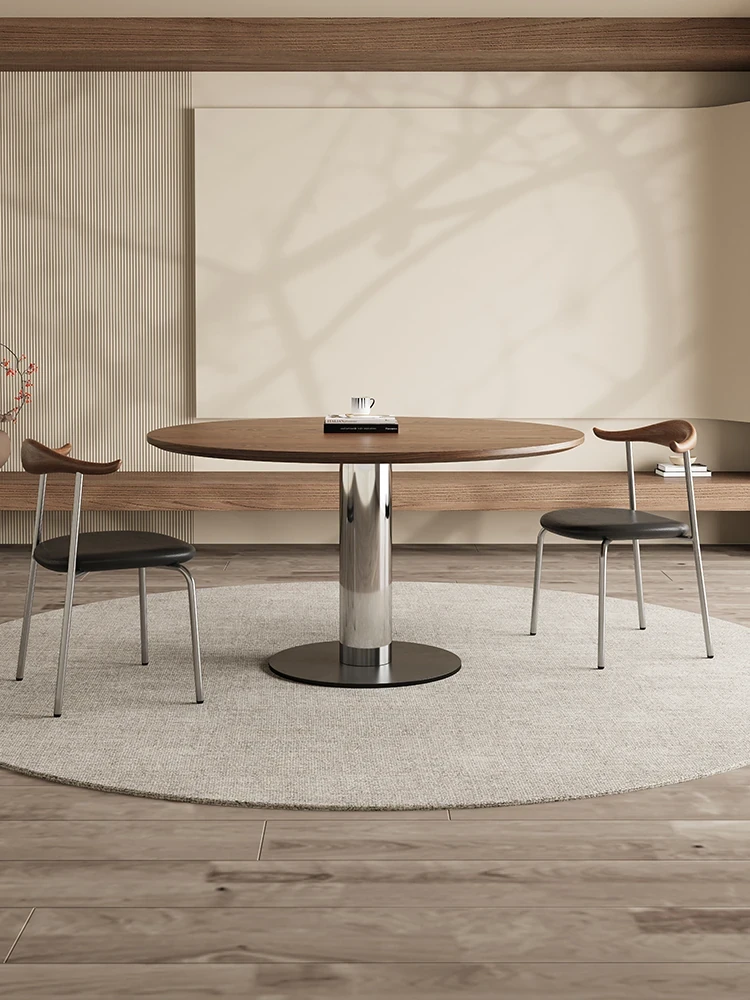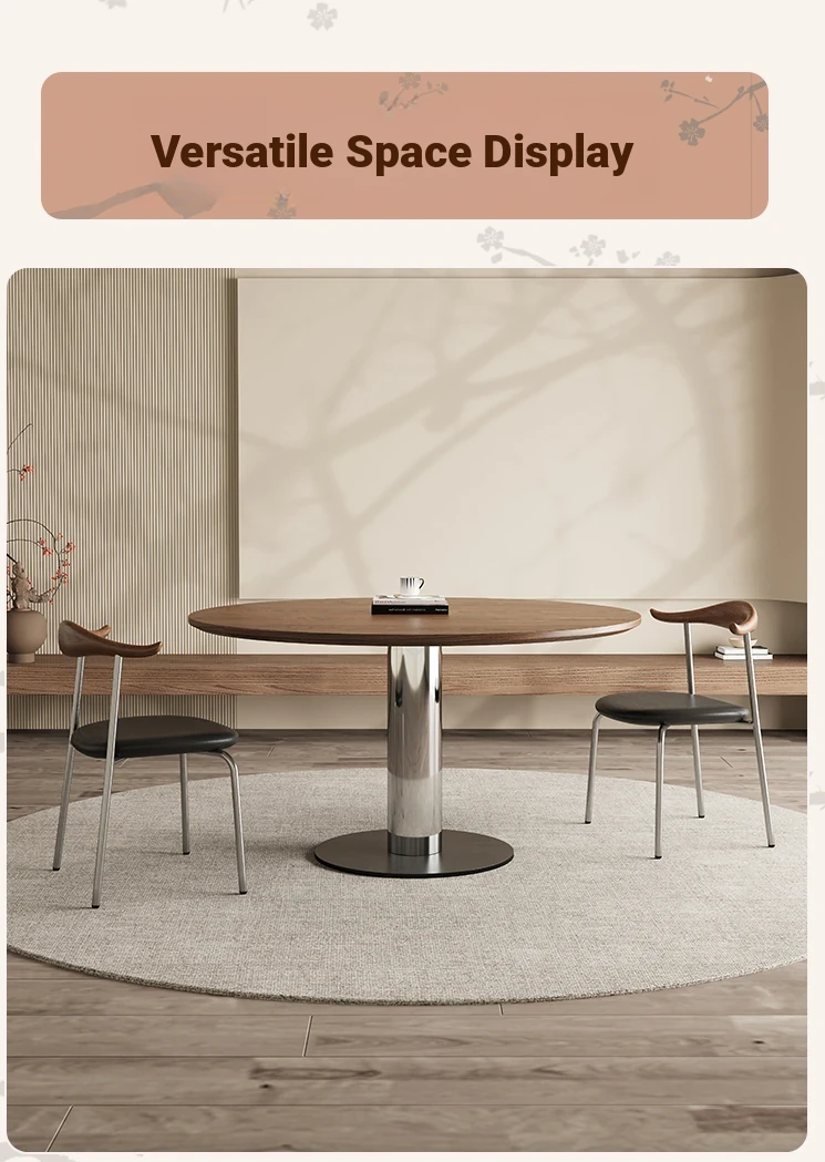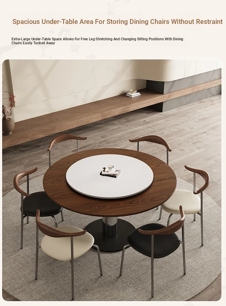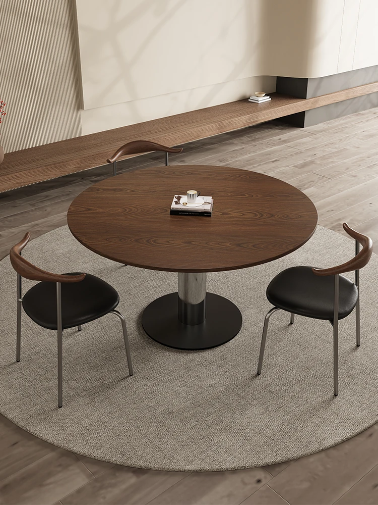 Vintage Solid Wood Round Dining Table for Small Spaces – Creamy Walnut Finish, Perfect for Cozy Homes and Stylish Dining Experience